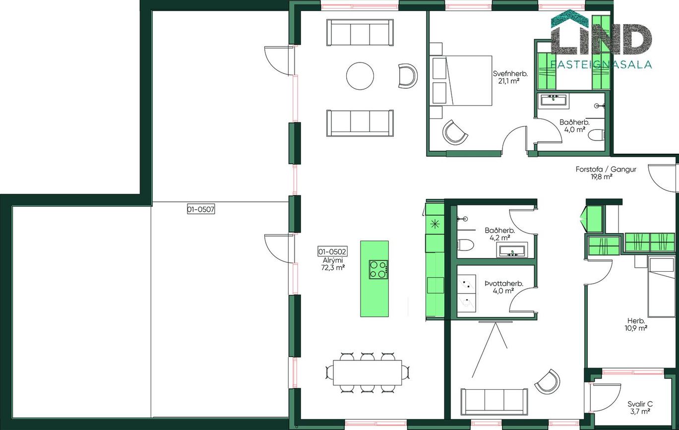 | 4 | 179,80 m² | 159.900.000 kr. 14. apríl 2025 | 149.750.000 kr. 13. janúar 2026 |