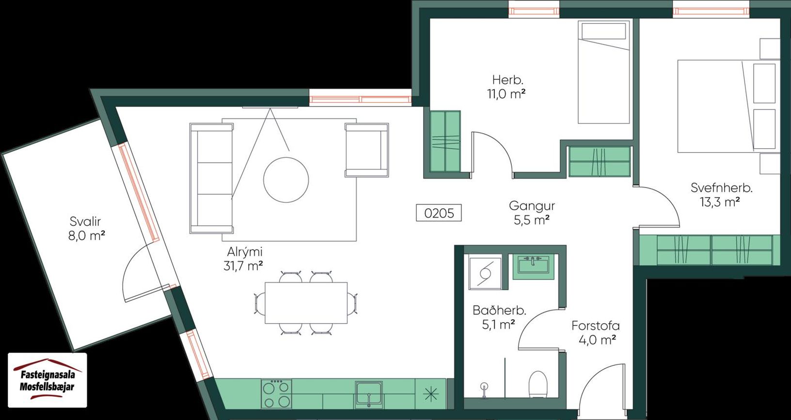 0205 ![]() | 3 | 95,50 m² | 79.900.000 kr. 21. apríl 2026 | 78.900.000 kr. 1. desember 2023 |