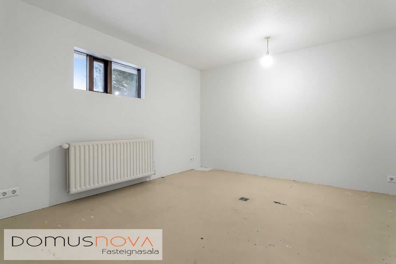 Neðri pallur með fjölhæfu rými og herbergi. Forstofuherbergi í innganginum.