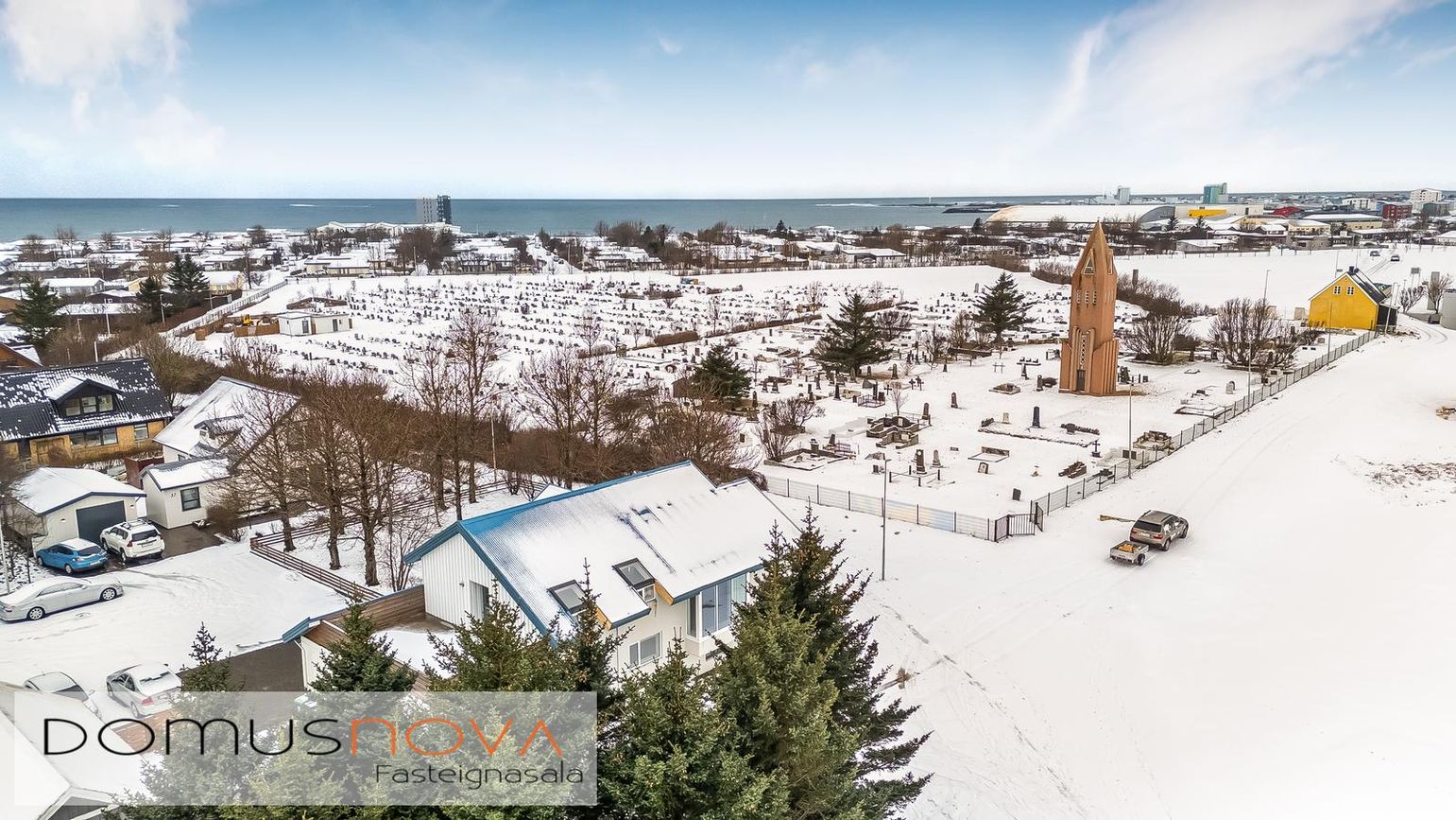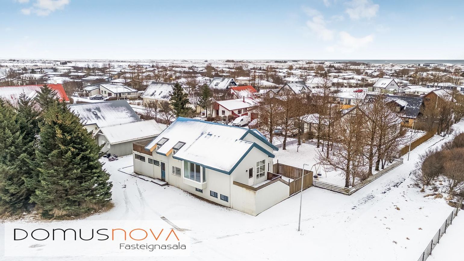 Hús skráð sem timburhús með stæðstu hluta staðsteypt. Nálægt leik- og grunnskóla.