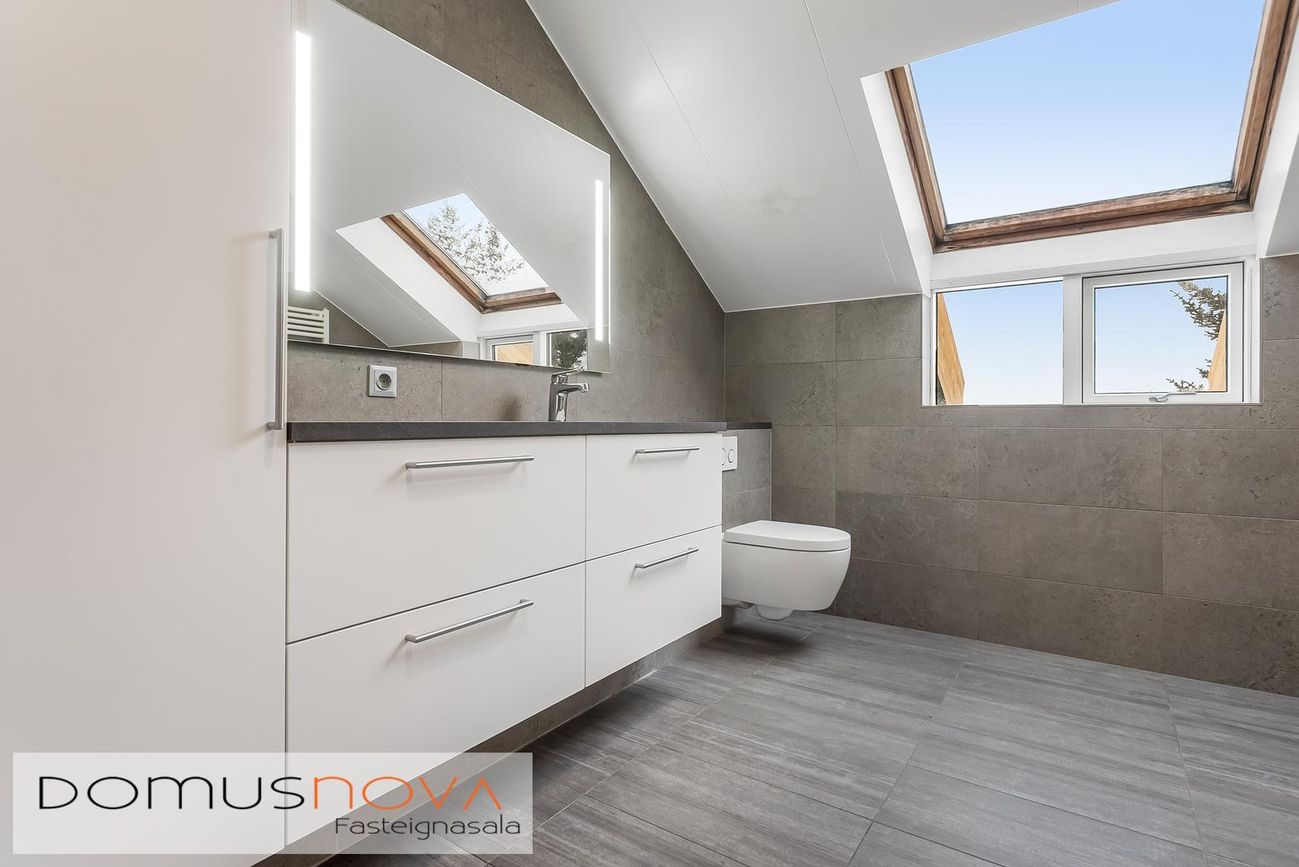 Aðalbaðherbergi endurbætt 2020 með flísalögum, gólfhita, innréttingu og sturtuklefa.