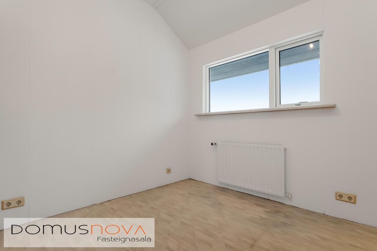 71,2 fm bílskúr með innangengi, tveimur stórum flekahurðum og snjóbræðslu í hellulögðu bílaplani.