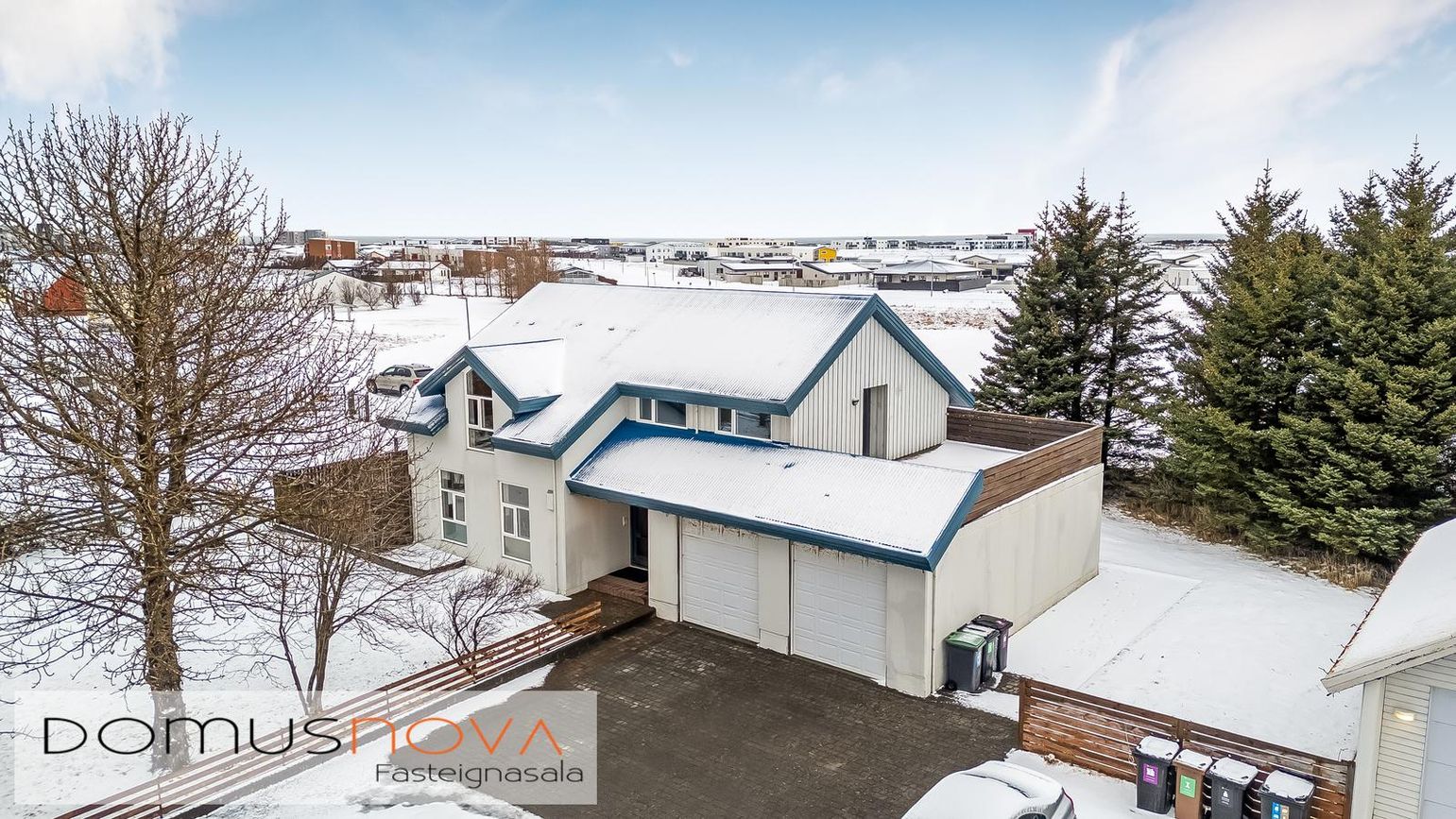 Hús byggt 1990 á 860 fm lóð með sérsmíðaðri eldhúsinnréttingu. Fjögur pöll með rúmgóðum herbergjum, sólpalli og bílskúr með þvottahúsi.