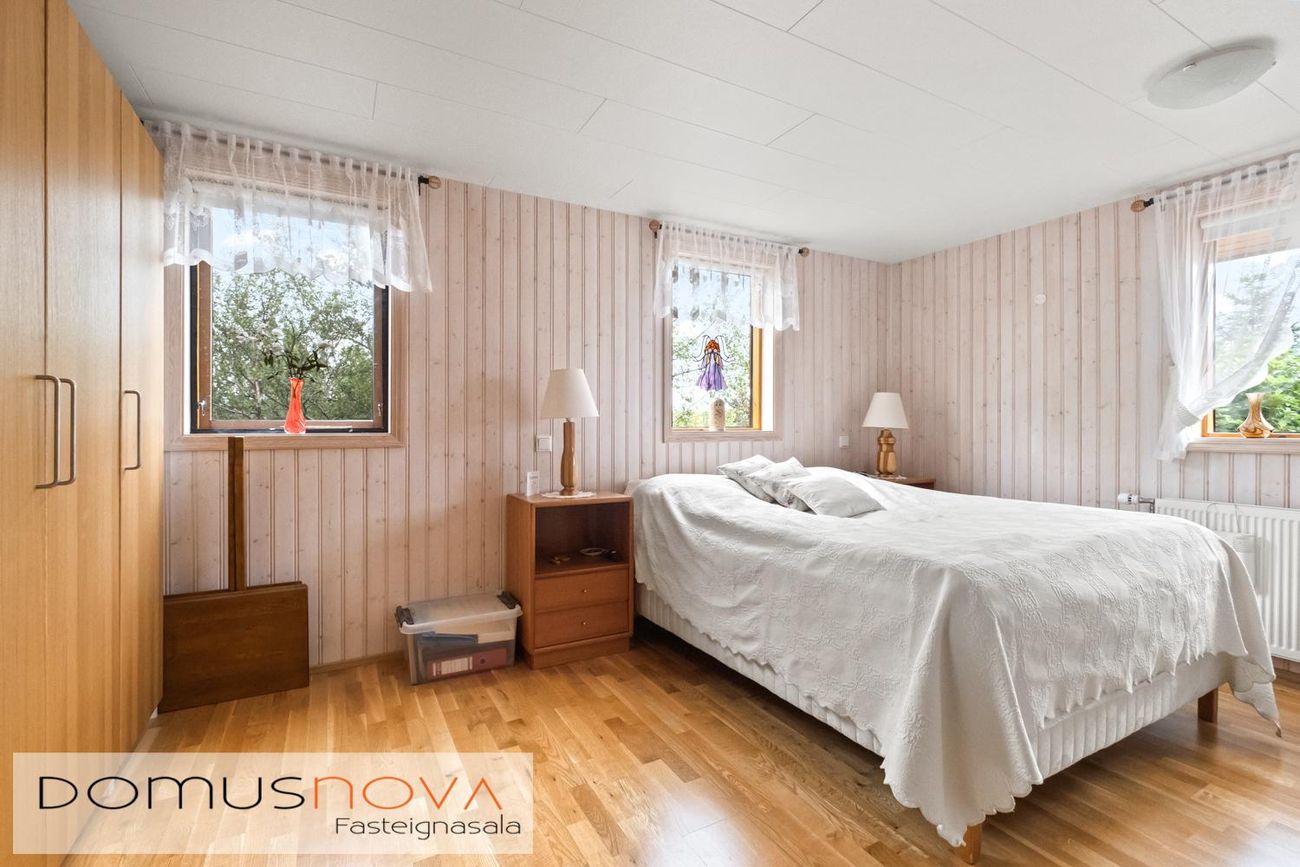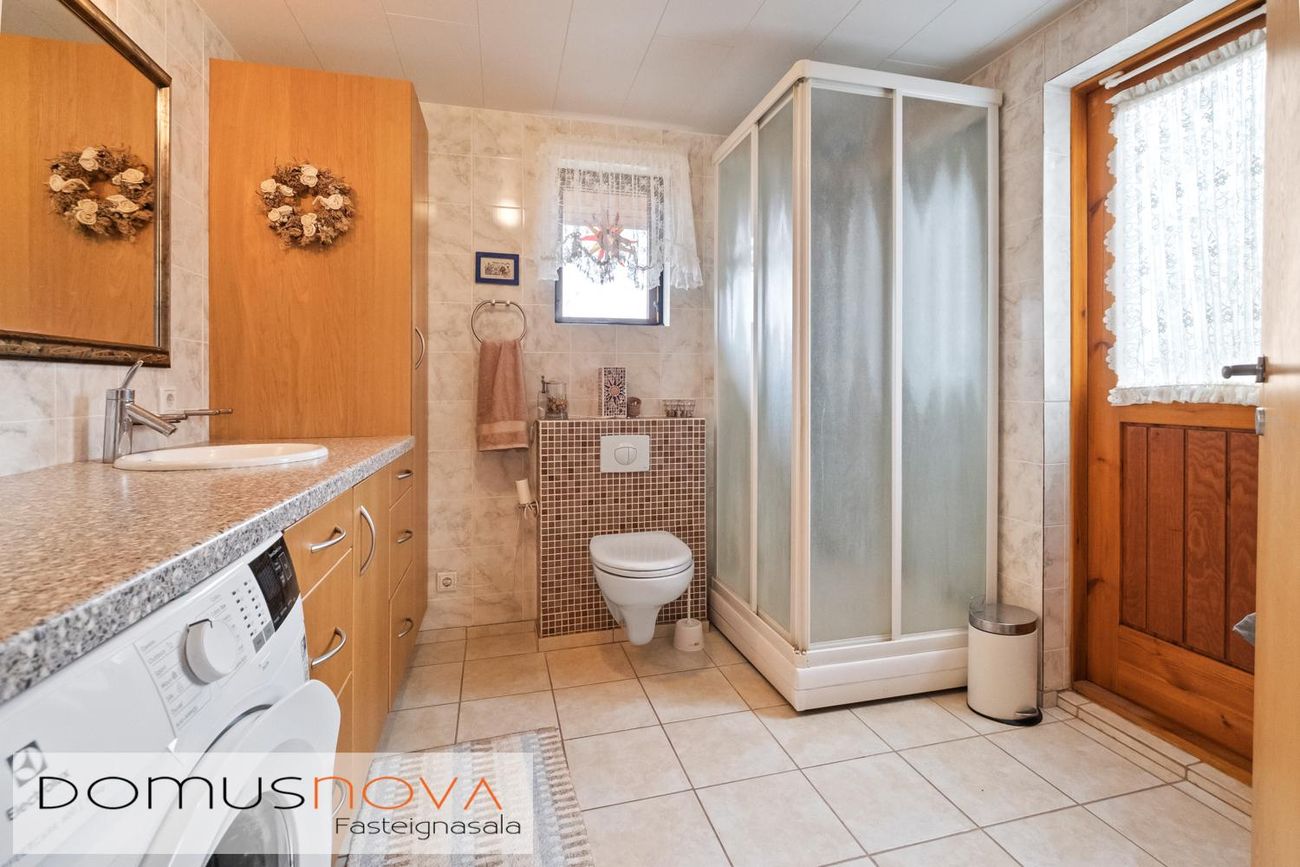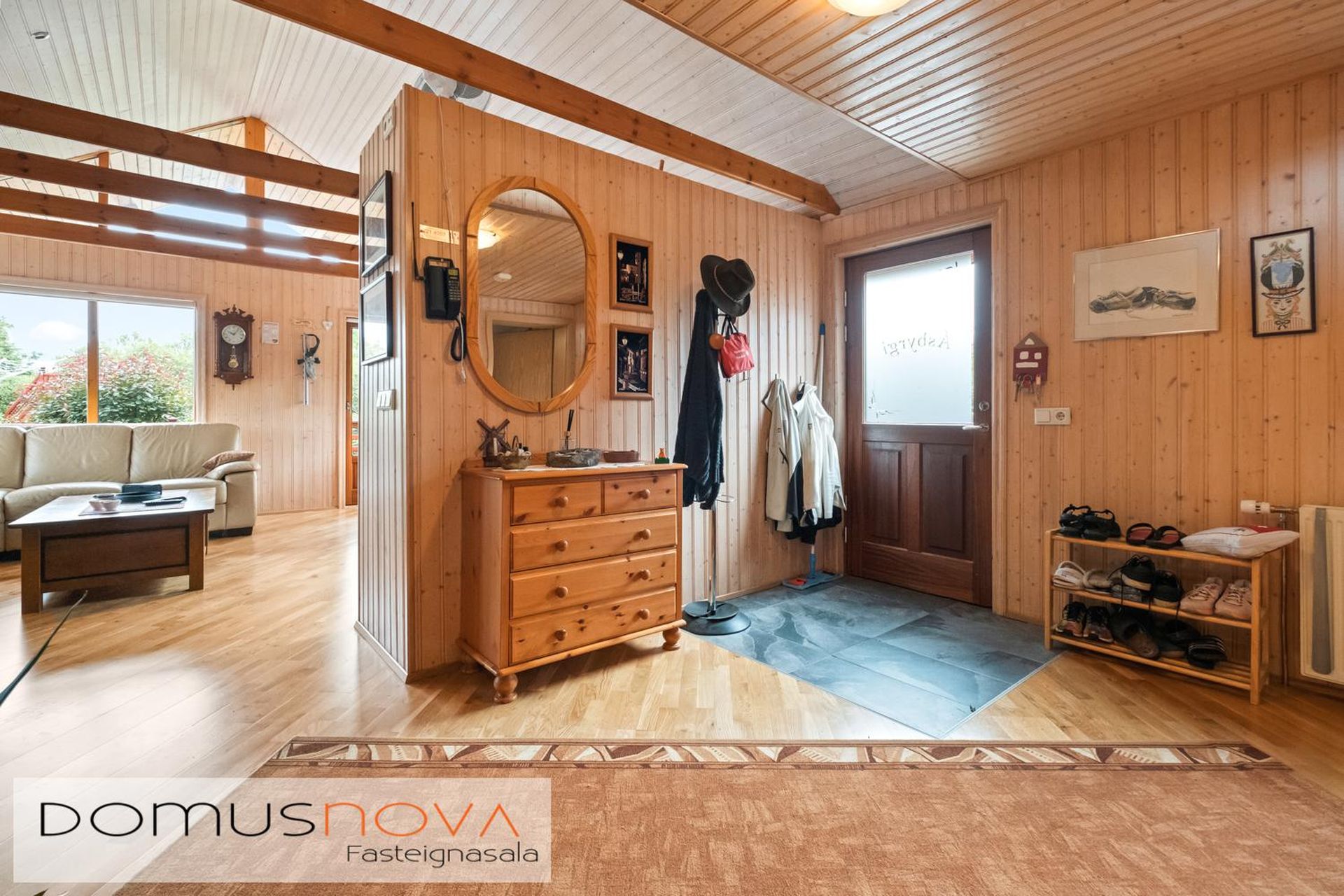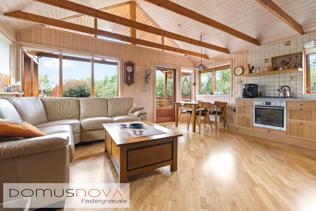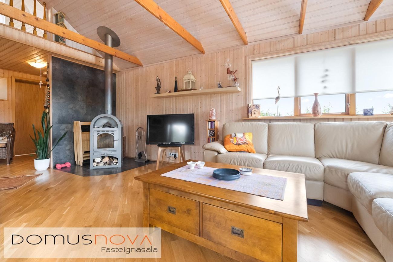 Hús á tveimur hæðum (130,7 fmr grunnflötur) með verönd, gestahús/geymsla og köldum geymslu. Hús smíðað á staðnum með vandaðri útfærslu.