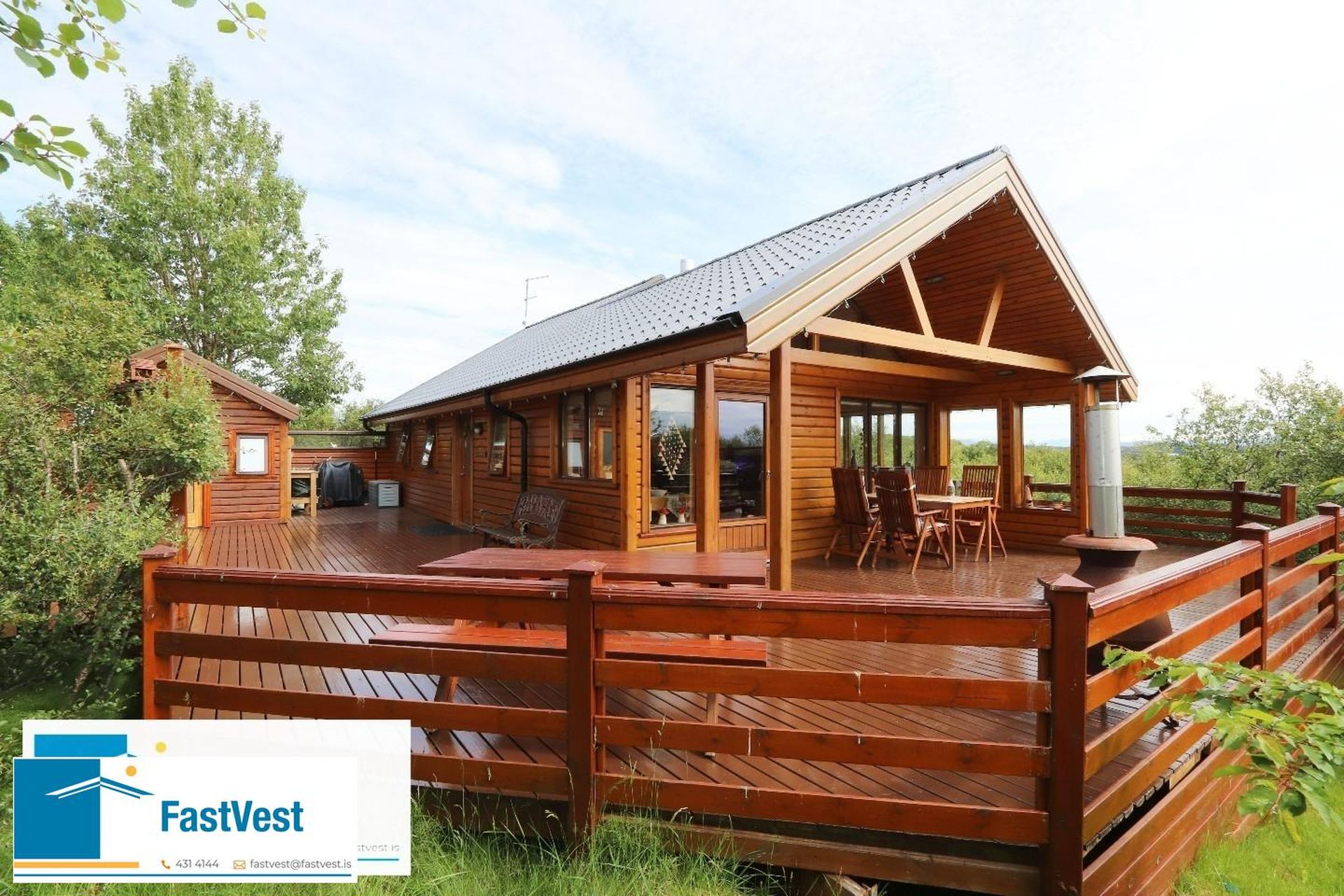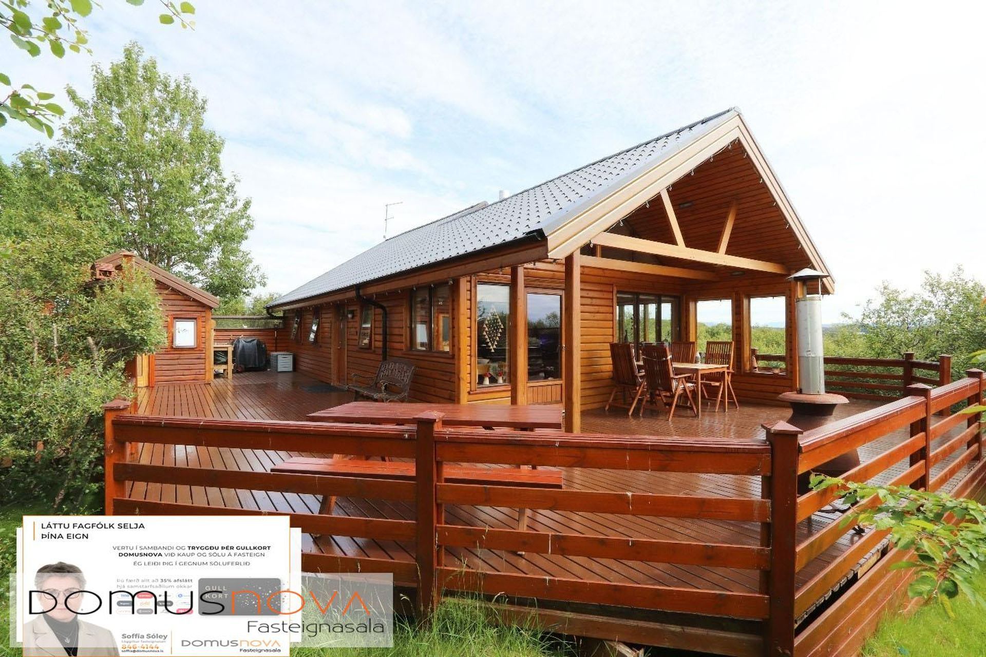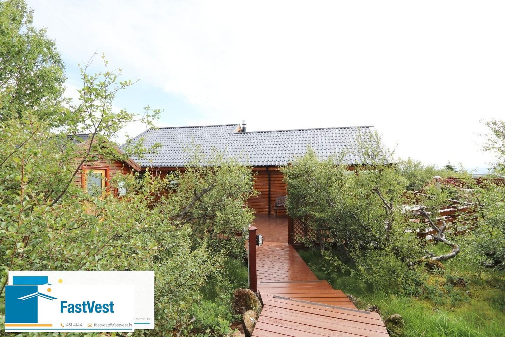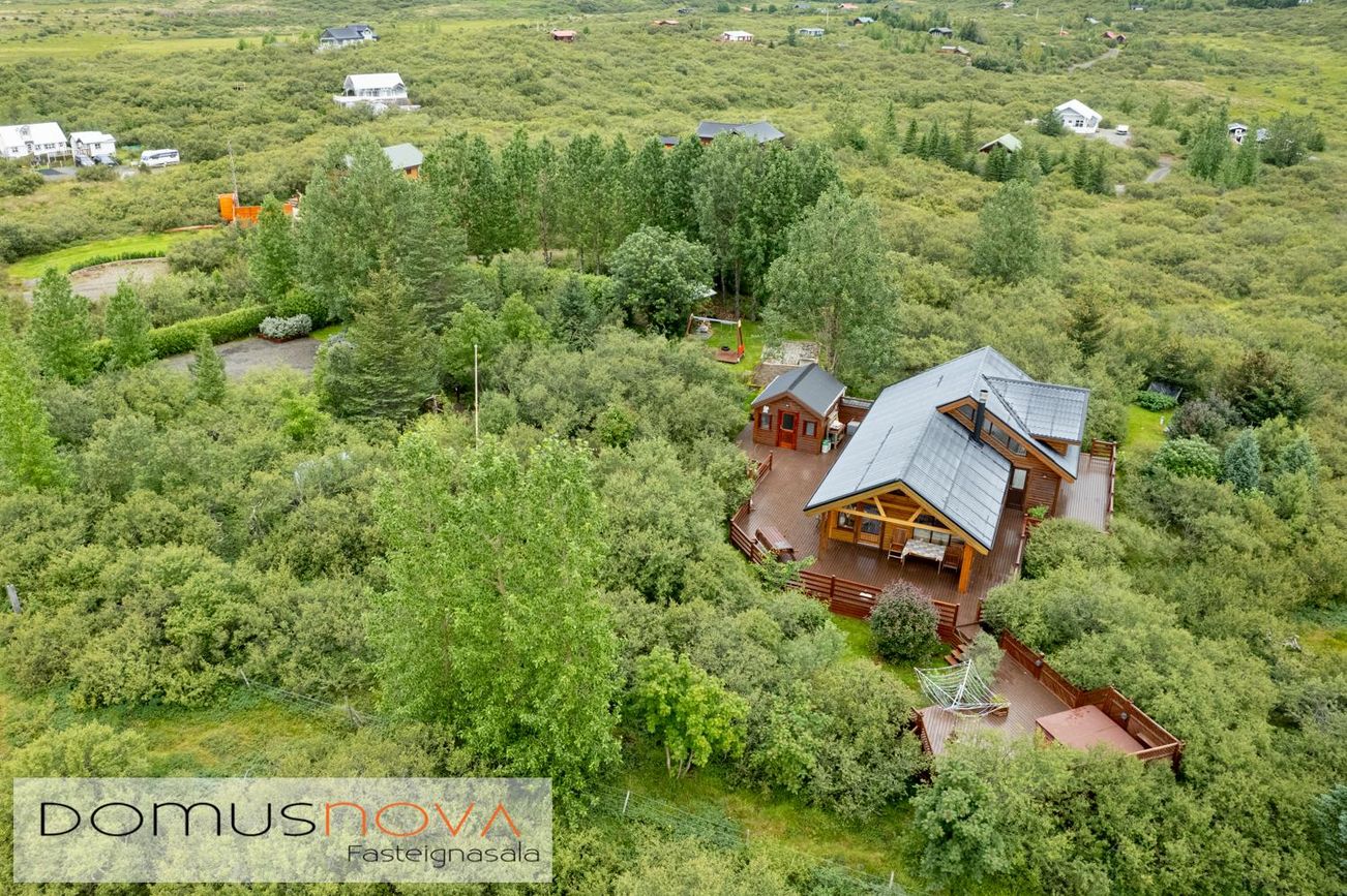 Heilsárhús á 3.575 fm lóð, 92,5 fm hús með opnu alrými, Miele eldhústæki, heitur pottur, risloft og gestahús.