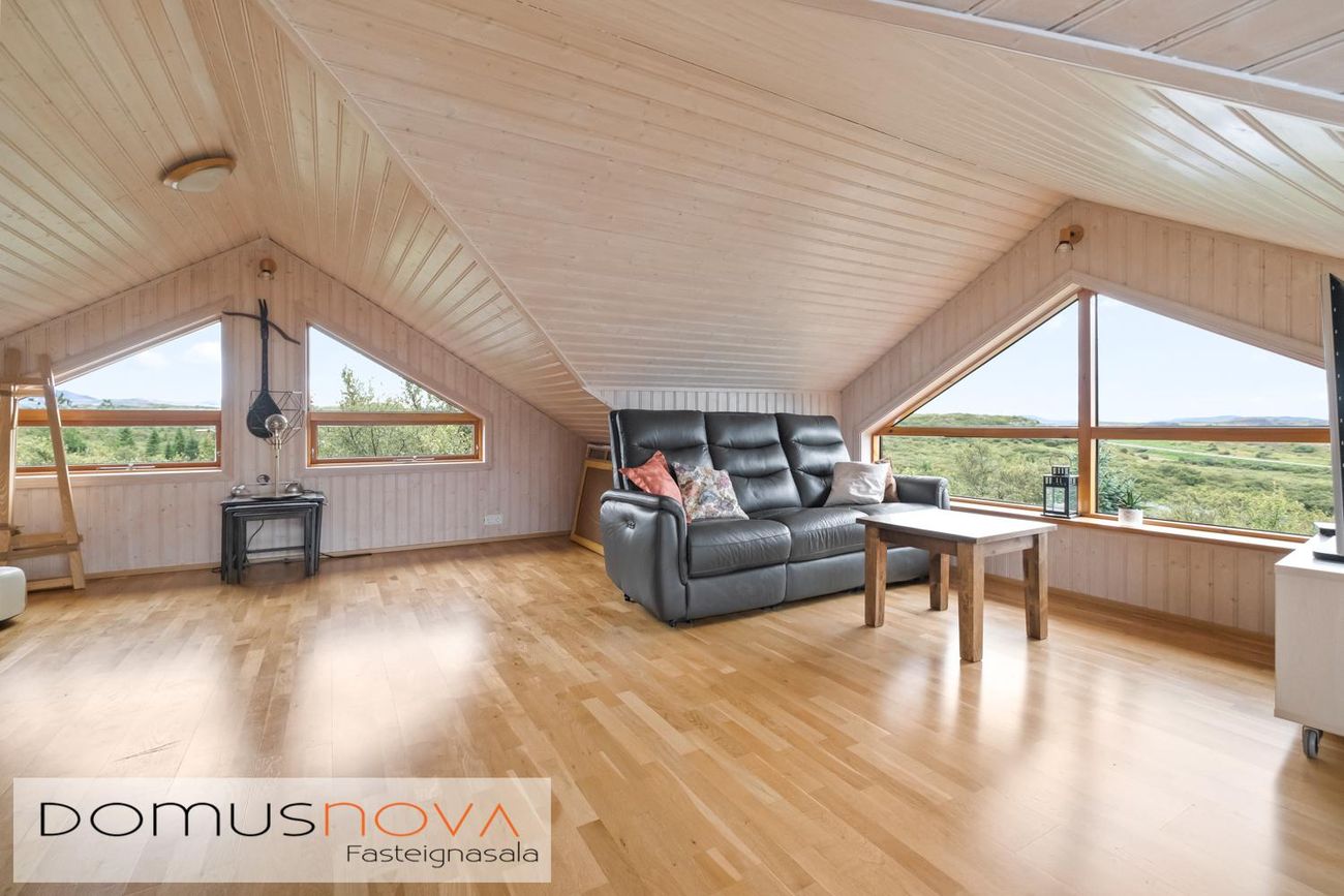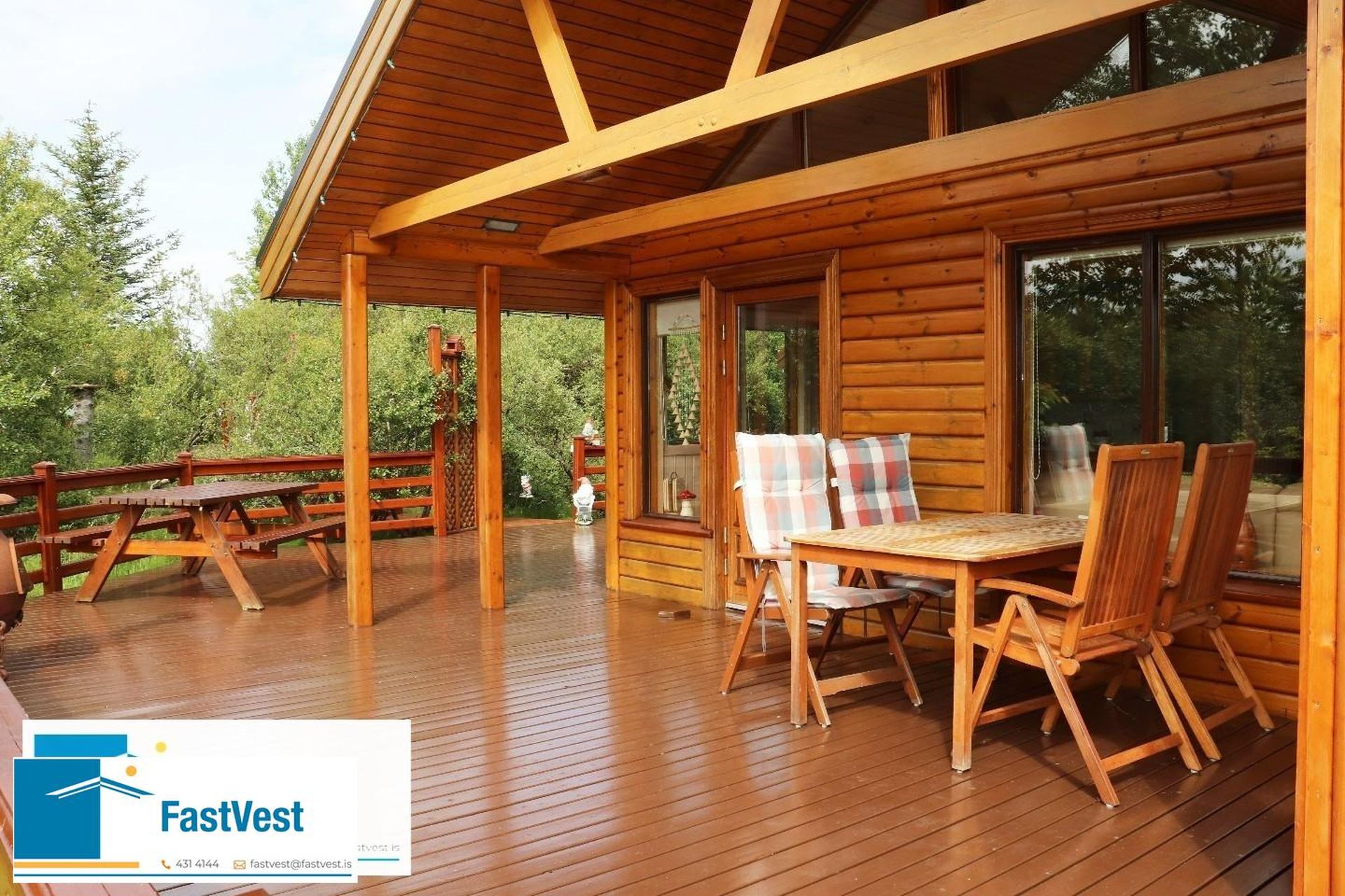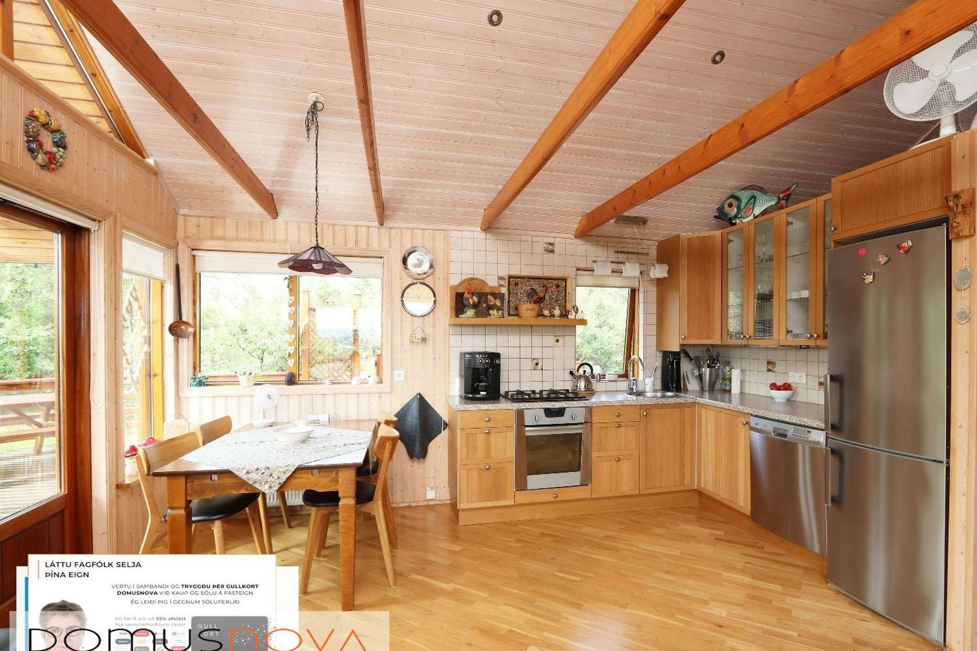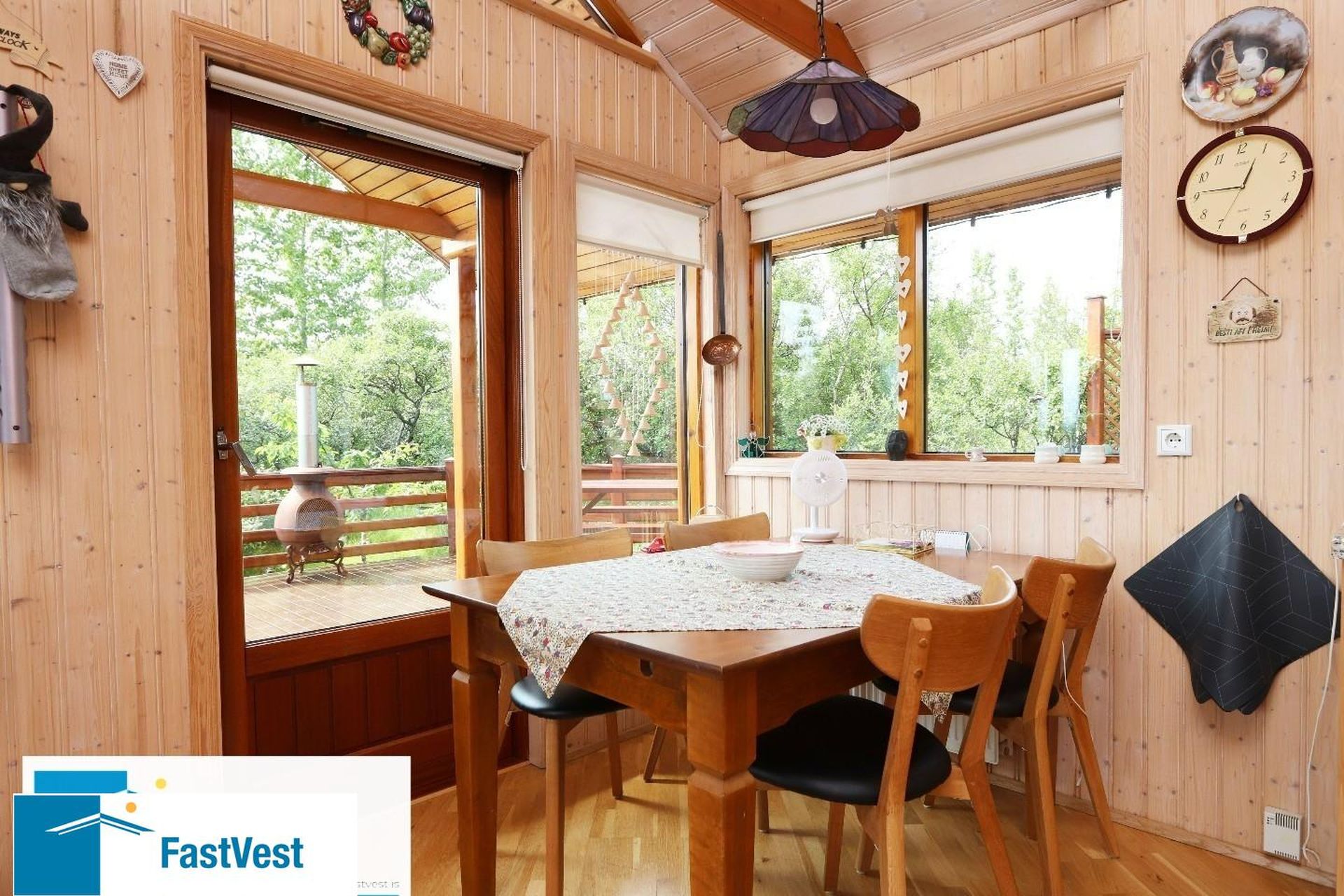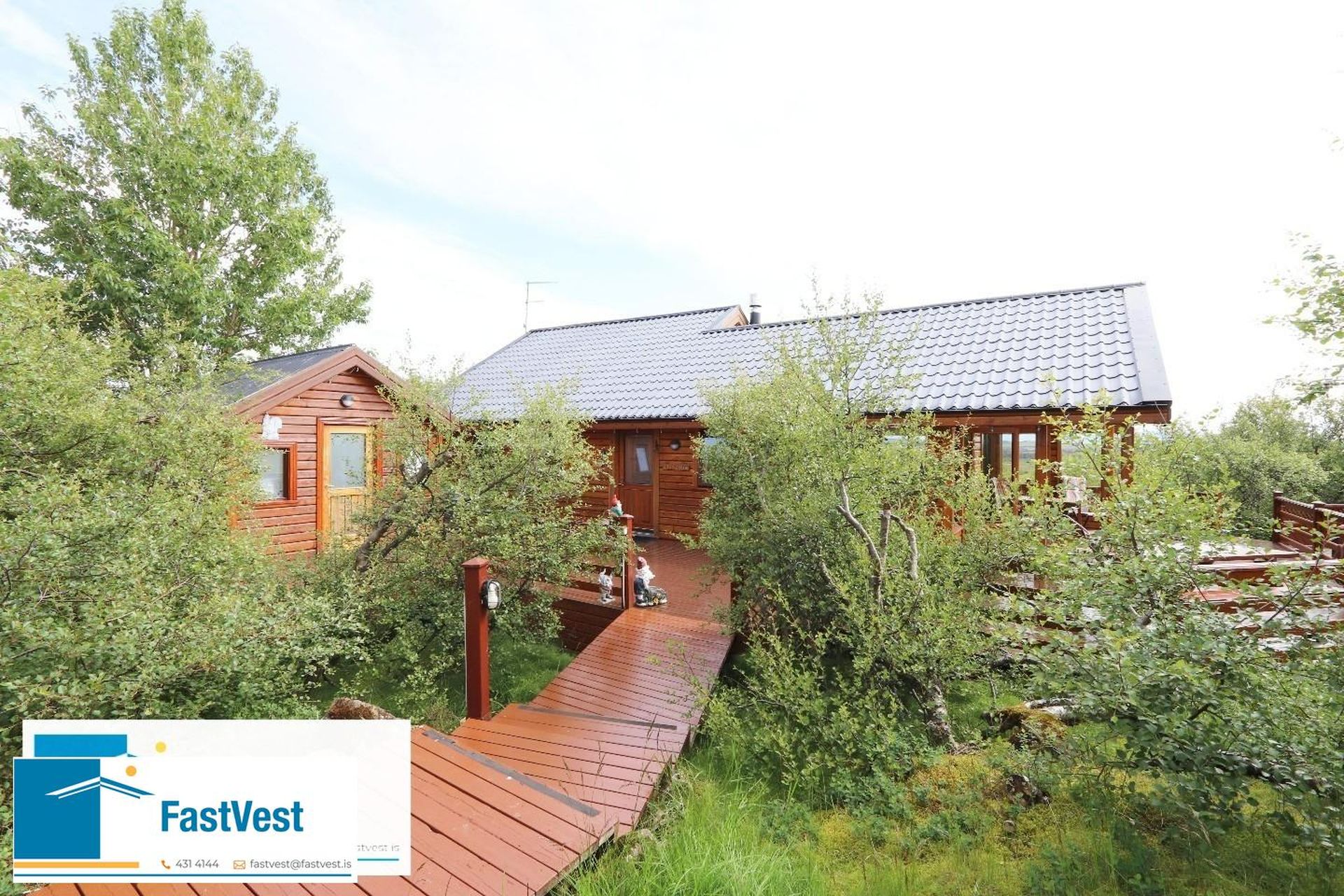 Heilsárhús á 3.575 fm lóð, 92,5 fm hús með opnu alrými, Miele eldhústæki, heitur pottur, risloft og gestahús.
