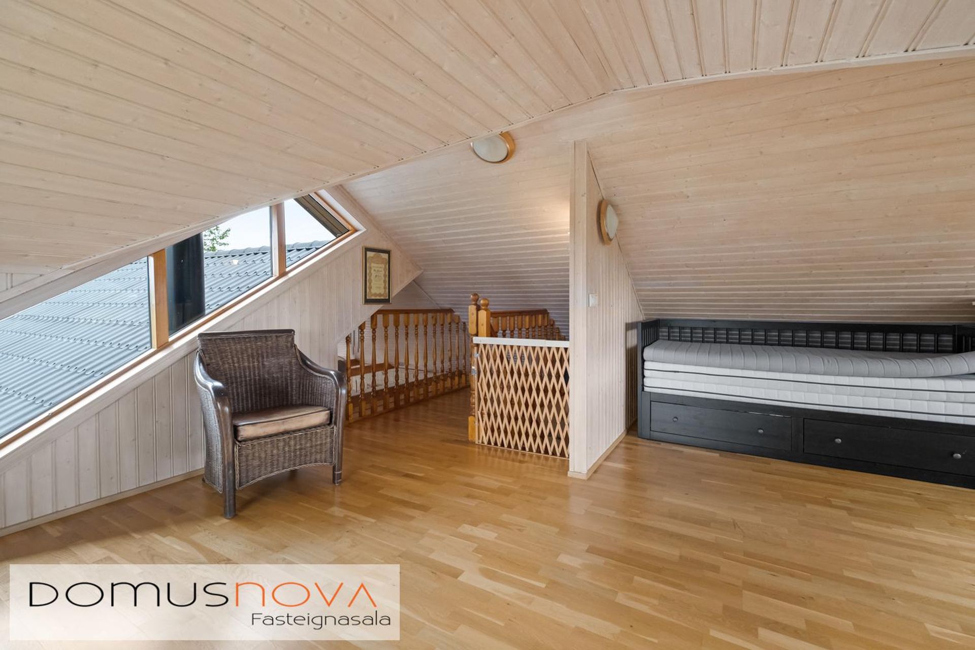 Risloft með kvist, sjónvarpsholi og svefnaðstaða, parket á gólfi.