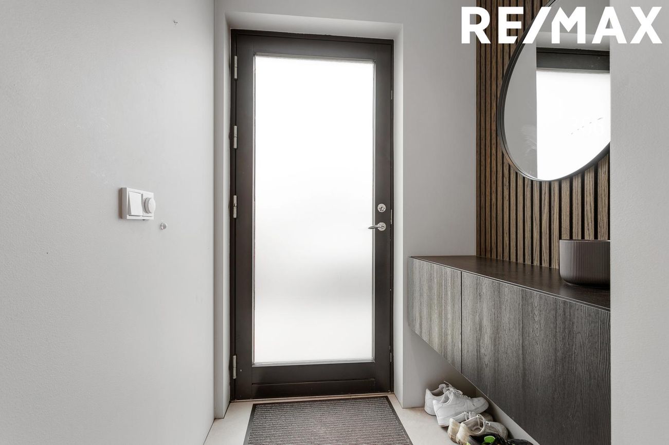 - Sérsmíðaðar innréttingar, quartzsteinn á borðum í eldhúsi og á sólbekkjum, marmaraflísar og quartsteinn á baði Lýsing eignar:Anddyri: panel á vegg og fallegum skáp. Flísar á gólfi .