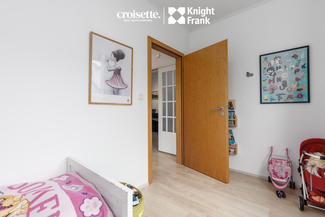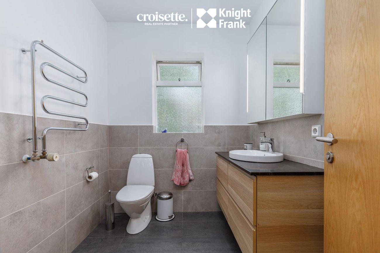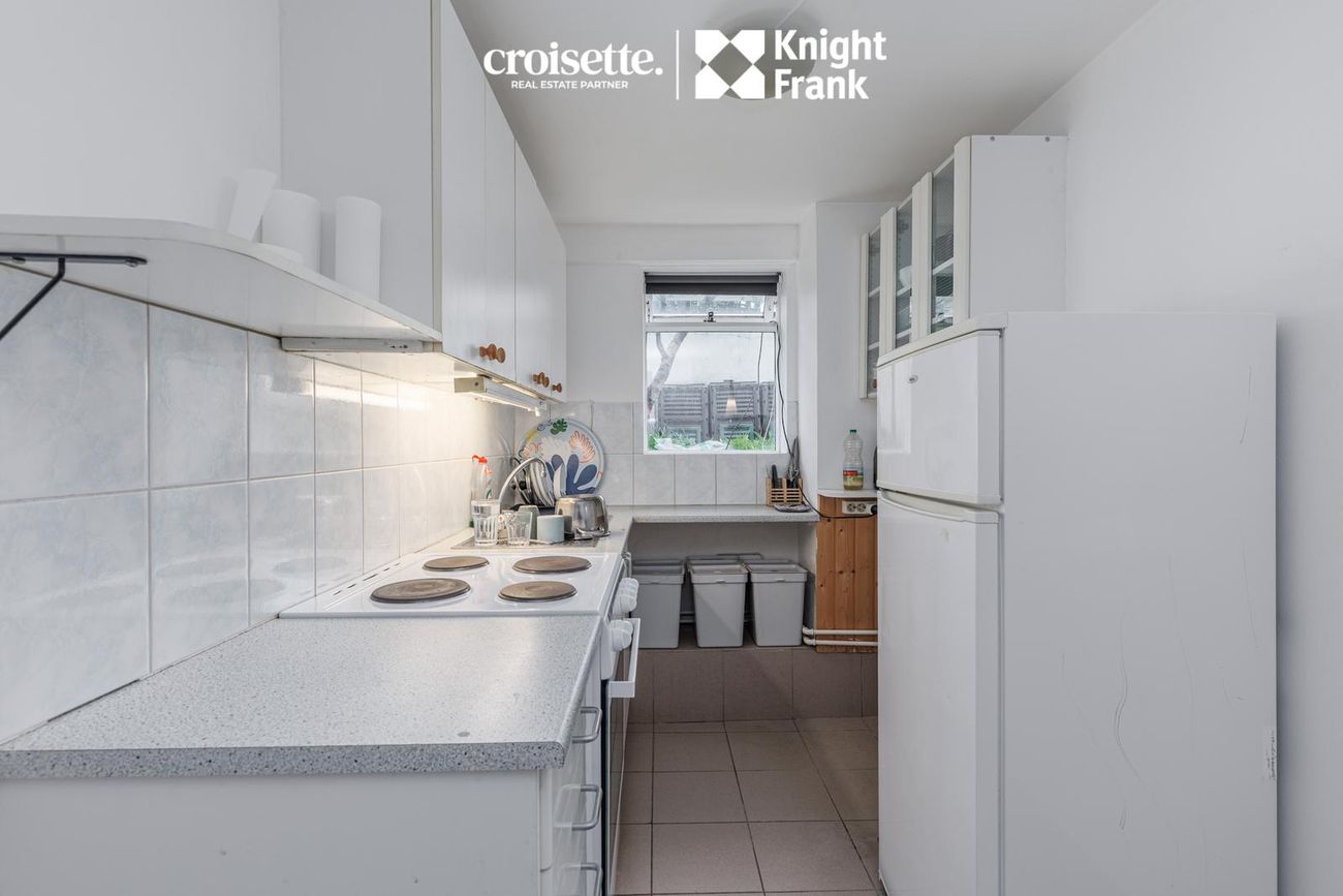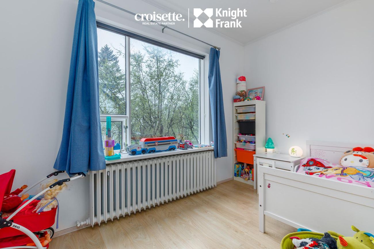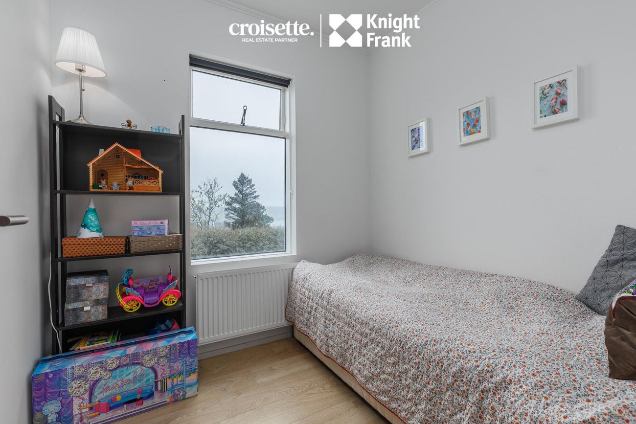 Íbúðin á miðhæð með beinneygðum aðgangi að garði. Skiftist í fjögur svefnherbergi, stofu, eldhús og baðherbergi.