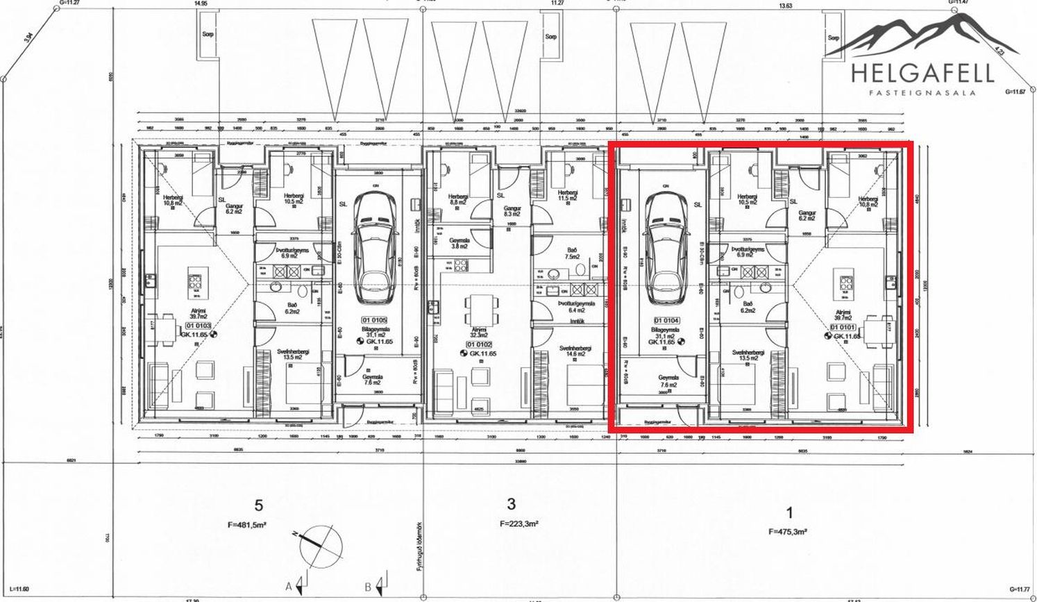 Hitalögn: Ísteyptar hitalagnir eru í öllum gólfum og verður tengigrind fyrir gólfhita frágengin. Stýringar og annar búnaður gólfhita fylgir ekki.