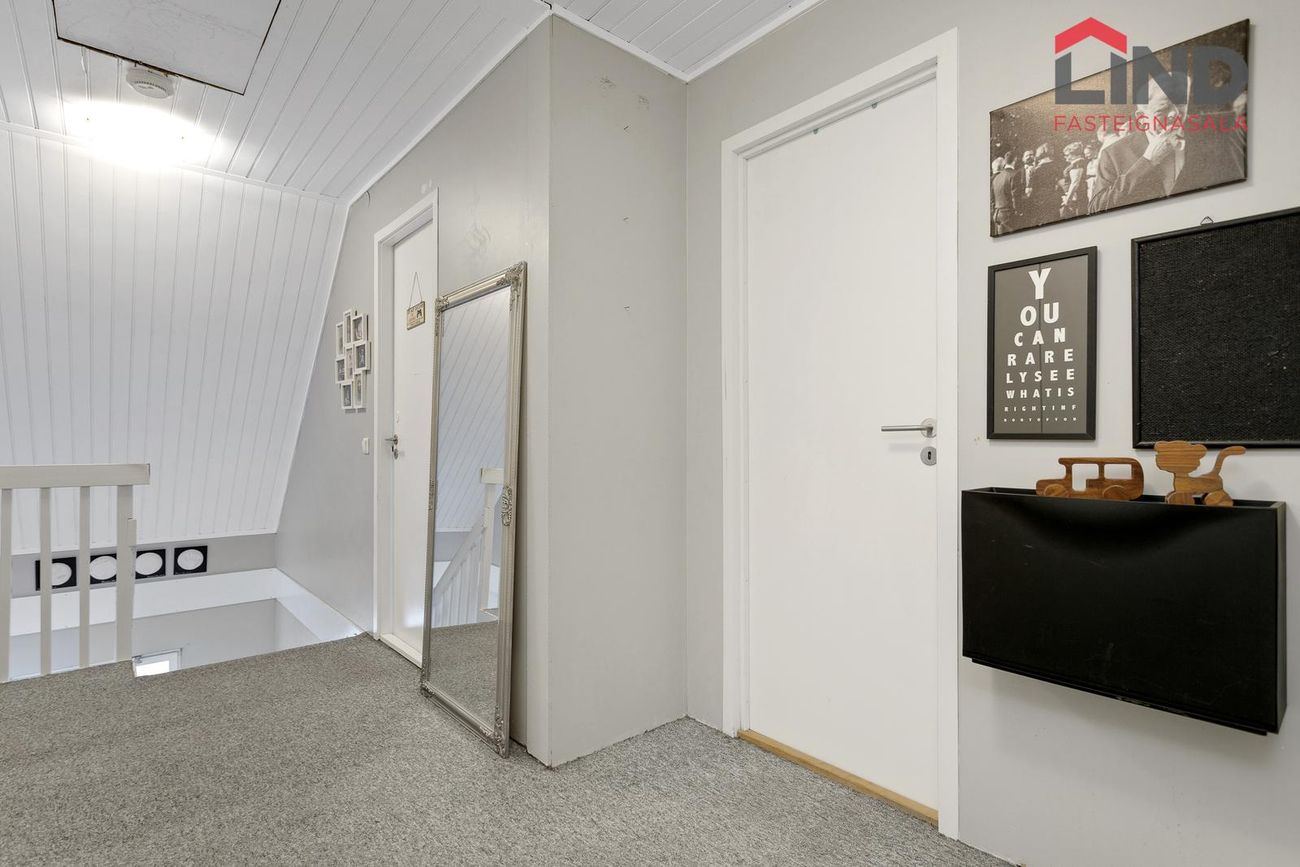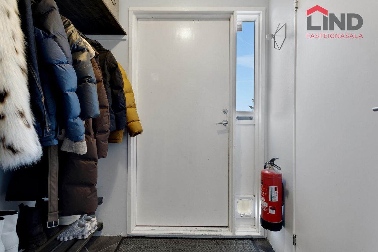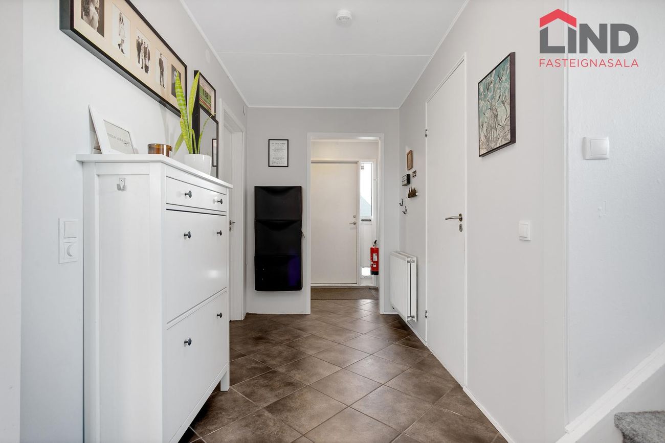 * 2024 þakjárn endurnýjað ásamt timbri og pappa sem þurftiAðalíbúð: Forstofa með fatahengi, flísar á gólfi.