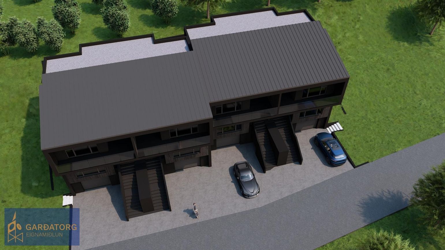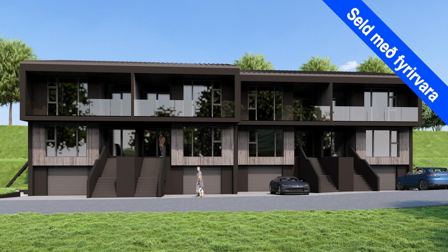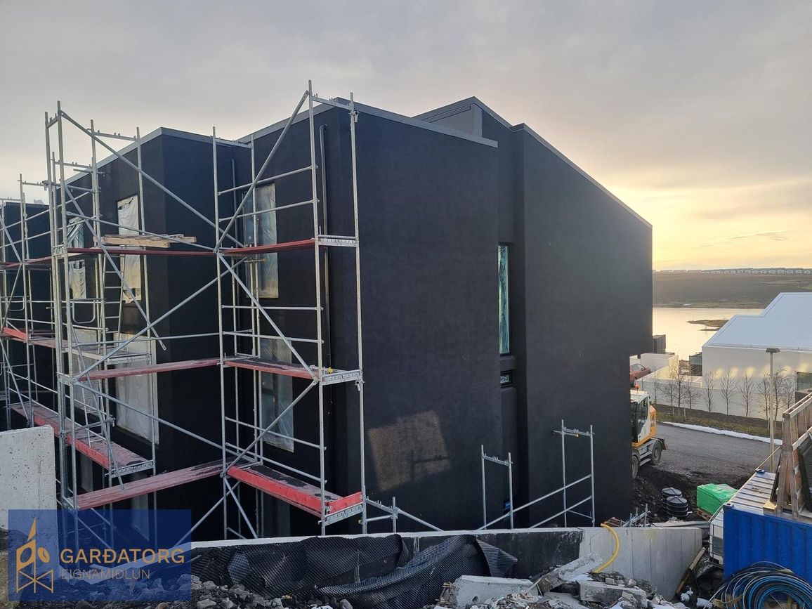 Húsið skilast fullbúið að utan með hellulögðu bílapláni.
