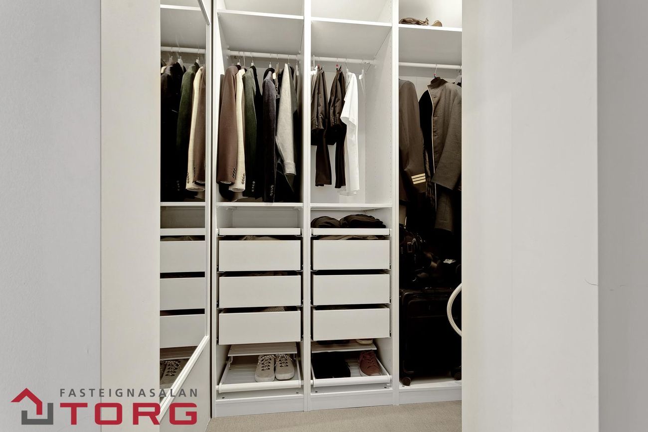 Innangengur fataskápur: Innaf herbergisgang er innangengur fataskápur með miklu skápaplássi.