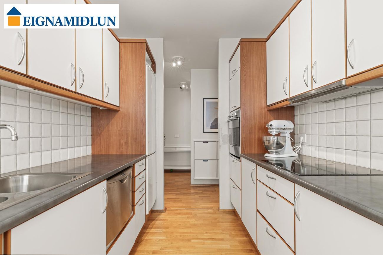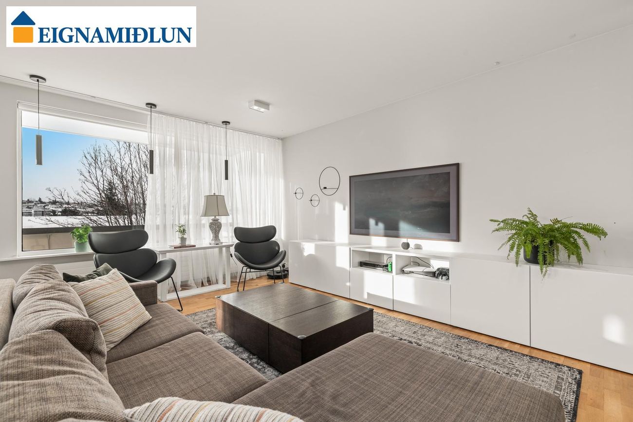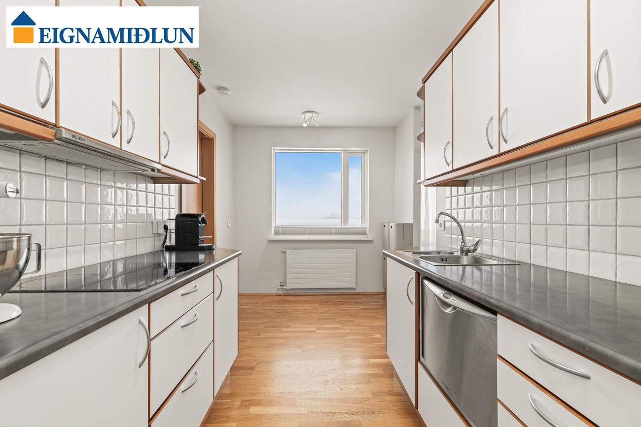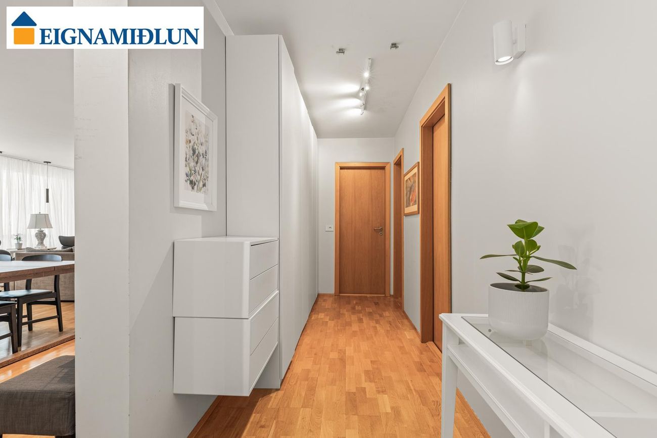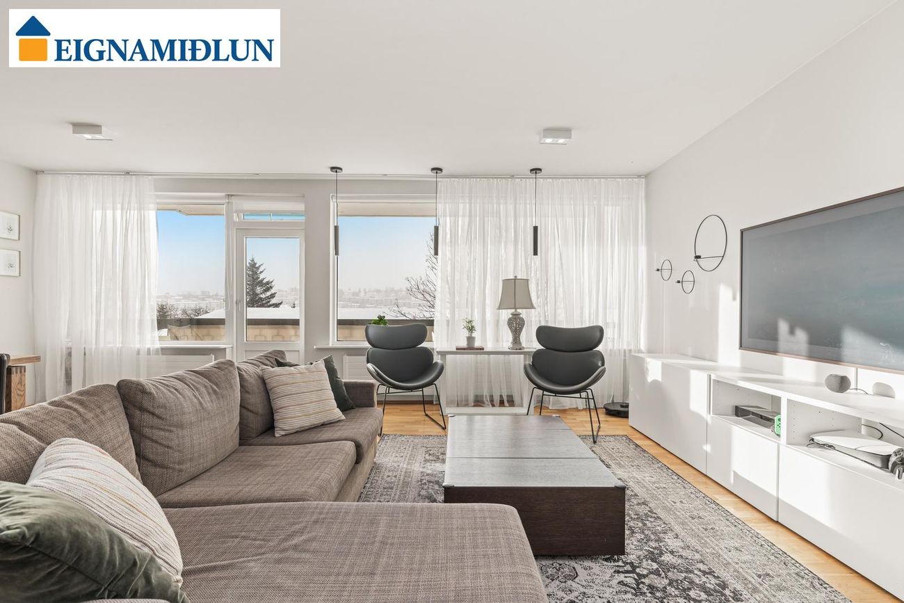 lilja@eignamidlun.is**Sækja söluyfirlit**Eignin er skráð 121,5 fm og skiptist í forstofu, stofu, borðstofu, eldhús, búr/þvottahús, þrjú svefnherbergi (áður fjögur) og baðherbergi. Íbúðinni fylgir 2,3 fm geymsla í kjallara. Í kjallara er sameiginlegt þvottahús og hjólageymsla.