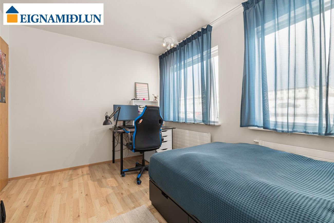 Herbergi: Mjög rúmgott með parketi á gólfi. Þetta herbergi var áður tvö herbergi og væri mjög auðvelt að breyta því aftur til fyrra horfs.
