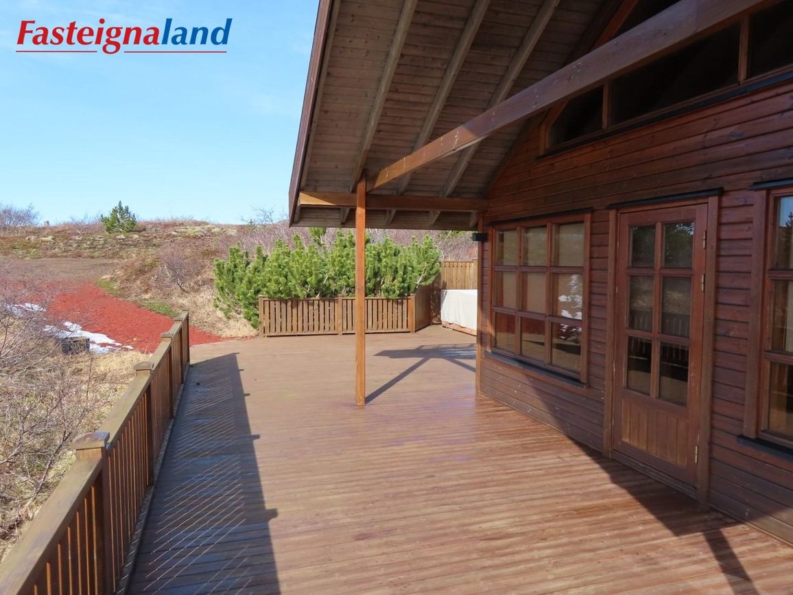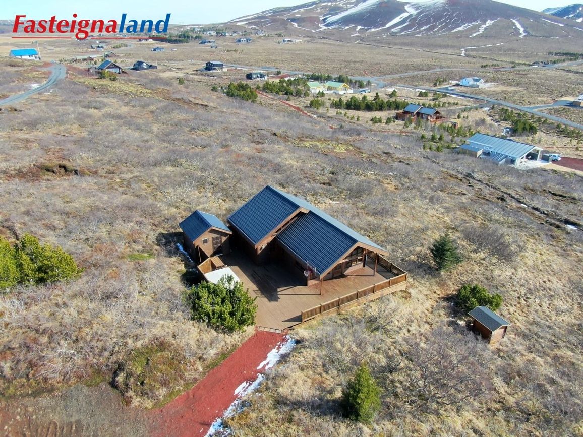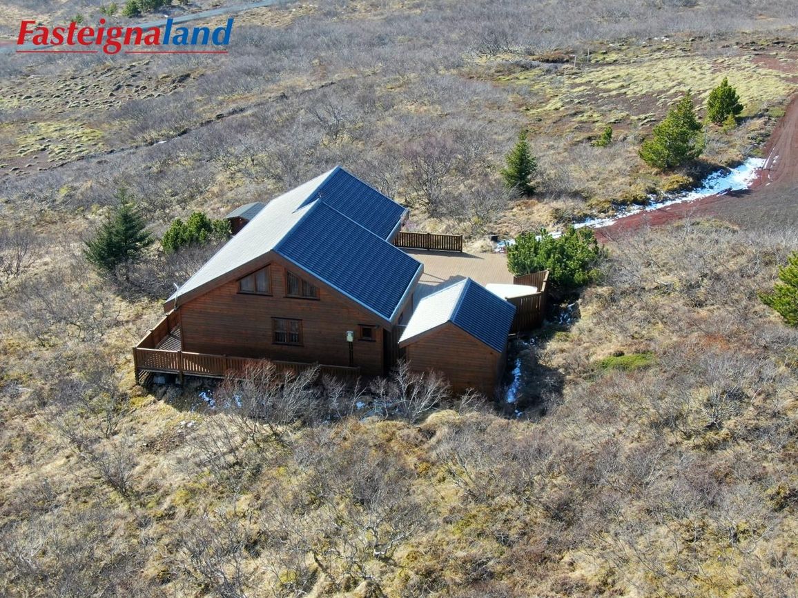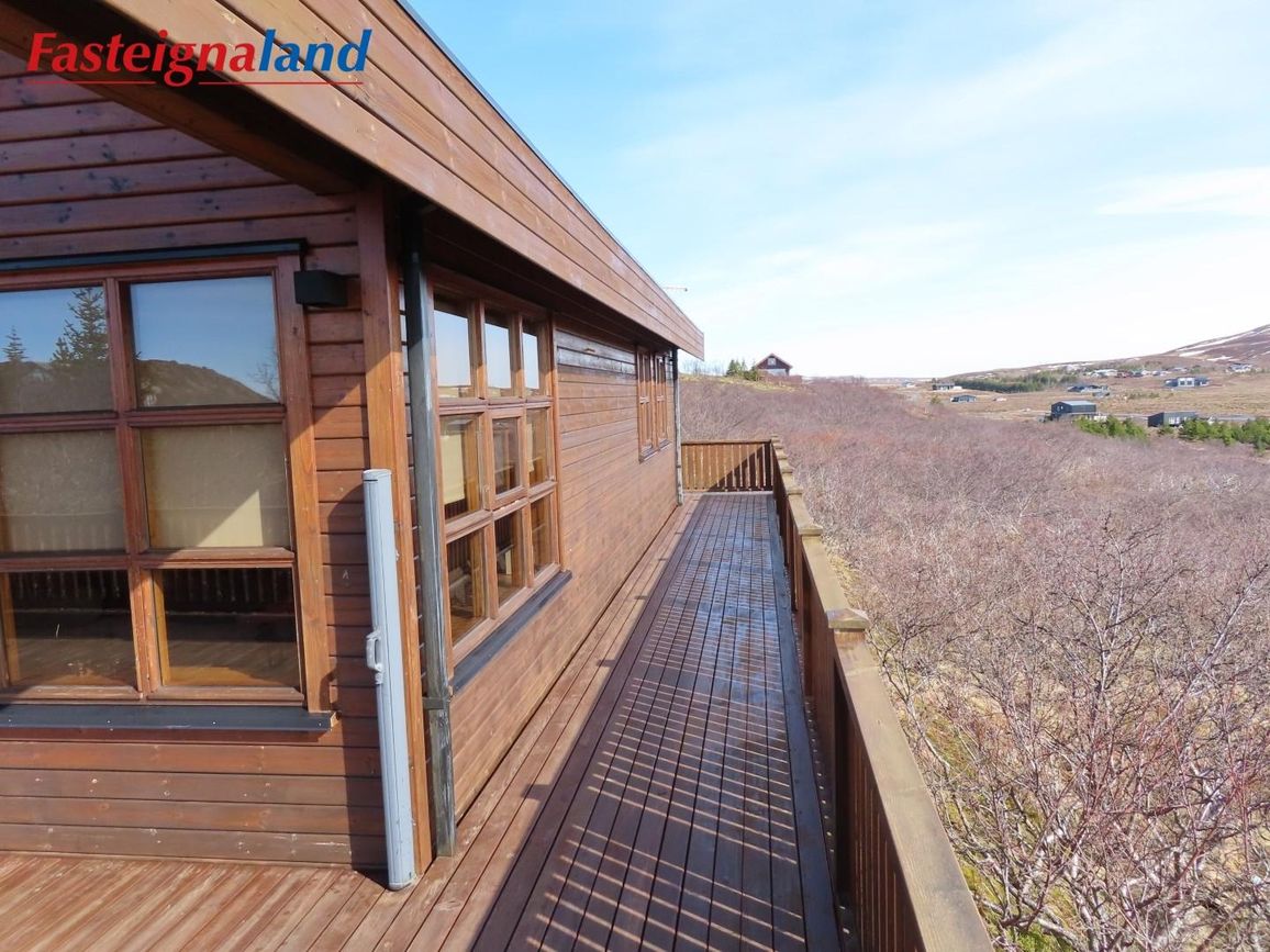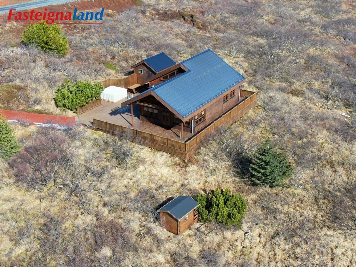 Húsið stendur á 6.880 fm kjarrivaxinni eignarlóð með glæsilegu útsýni. Í þessu húsi er hitaveita og lokað ofnakerfi. Stór sólpallur með skjólgirðingu er við húsið með heitum potti. Möguleiki er að fá hluta af innbú með í kaupum á eigninni.