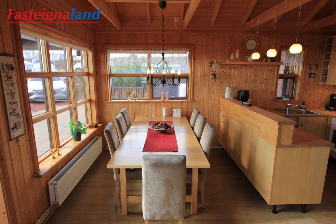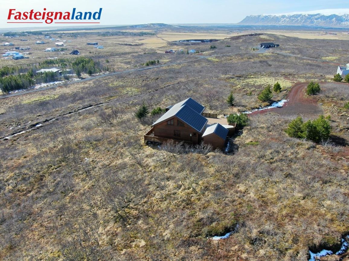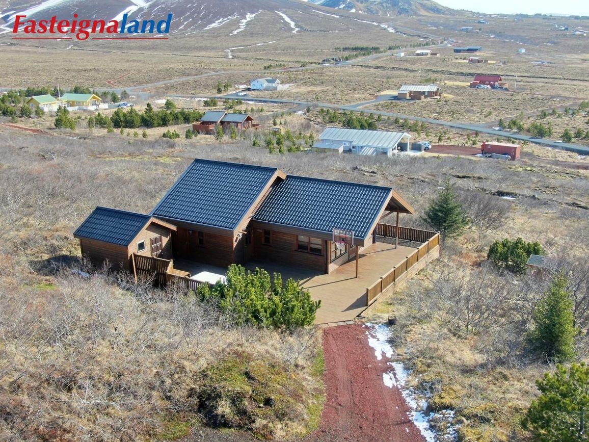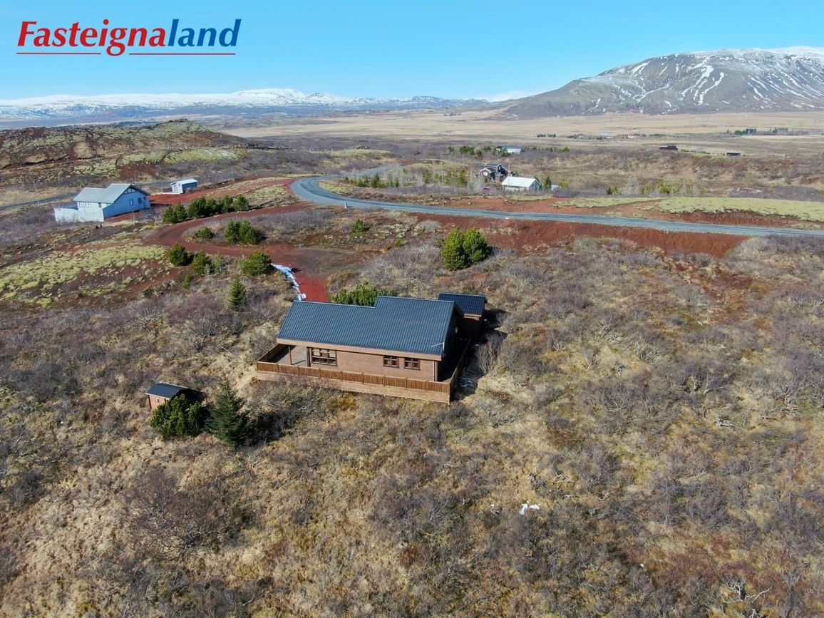 Húsið stendur á 6.880 fm kjarrivaxinni eignarlóð með glæsilegu útsýni. Í þessu húsi er hitaveita og lokað ofnakerfi. Stór sólpallur með skjólgirðingu er við húsið með heitum potti. Möguleiki er að fá hluta af innbú með í kaupum á eigninni.