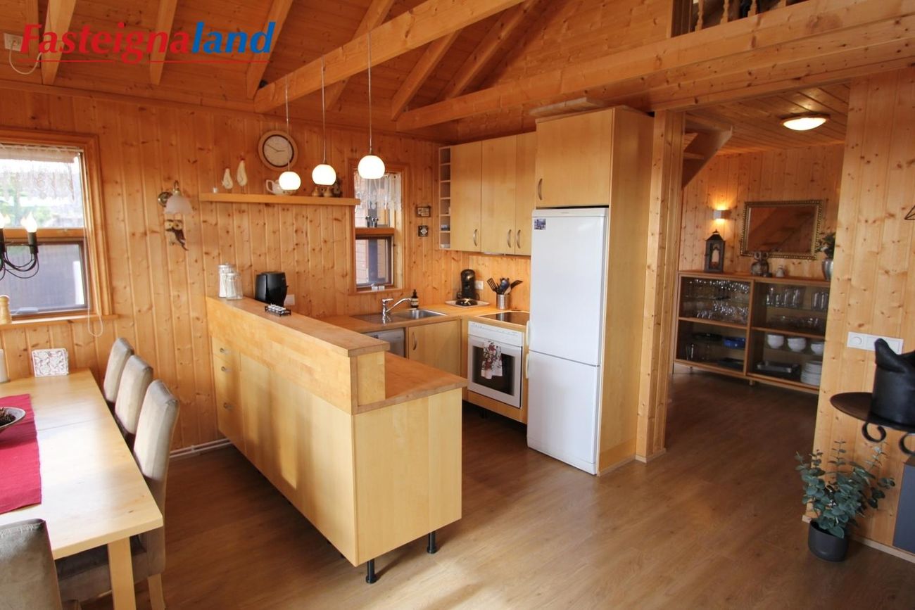 Kerhraun, sumarhús inn á lokuðu svæði. Hitaveita, heitur pottur.Fasteignaland kynnir: Kerhraun 8, sumarhús inn á skipulögðu sumarhúsasvæði í Grímsnes-og Grafningshreppi. Húsið er skráð samkvæmt Húsnæðis-og mannvirkjastofnun 93,2 fm ásamt millilofti og var byggt árið 2005 og er allur frágangur til fyrirmyndar. Á lóðinni er einig ca. 12 fm geymsla sem nýtt er fyrir garðáhöld. Lítið dúkkurhús er einnig á lóðinni.