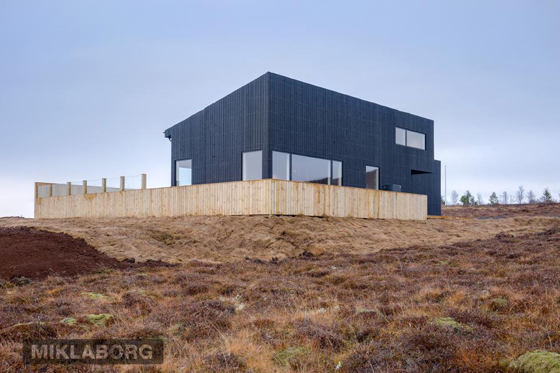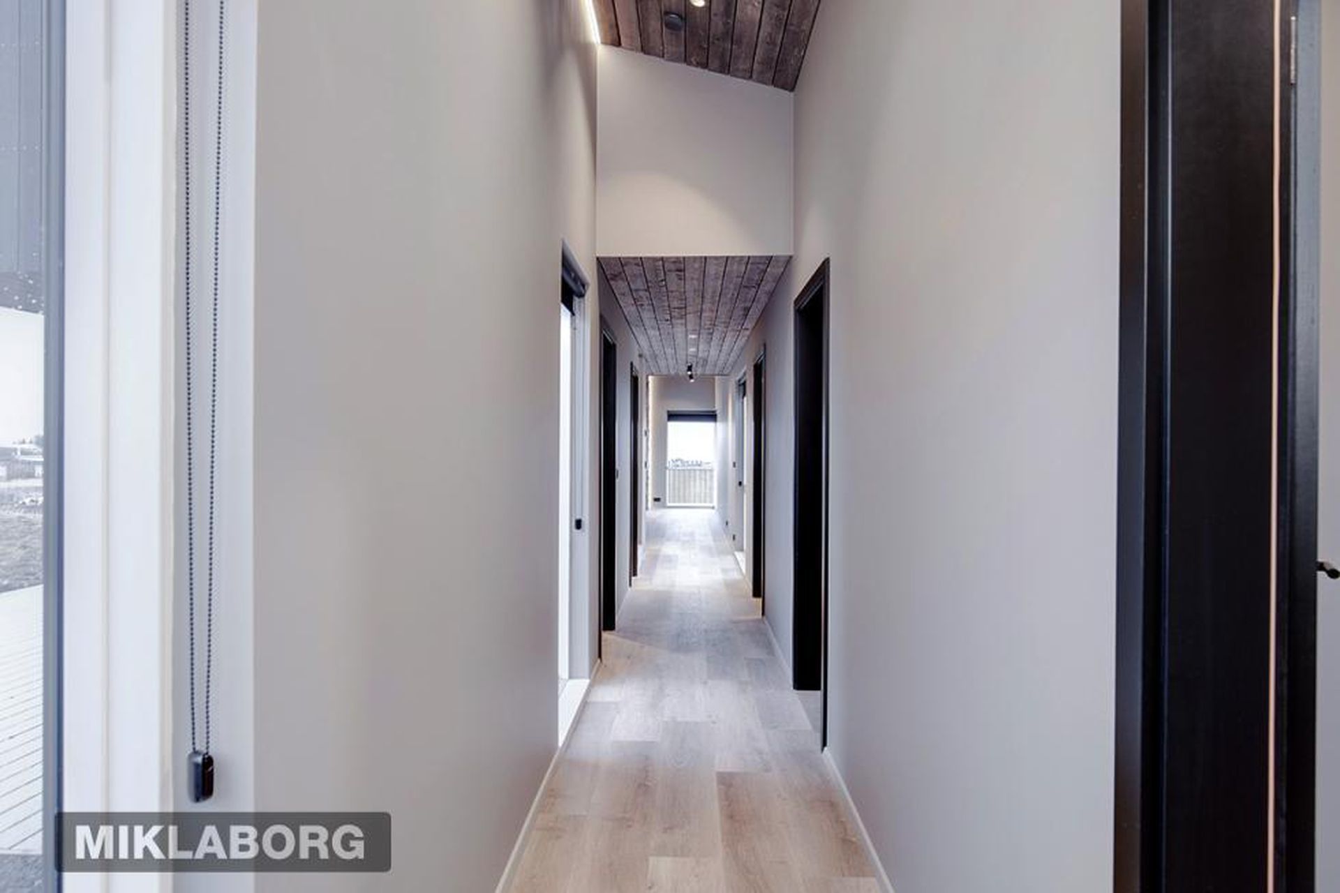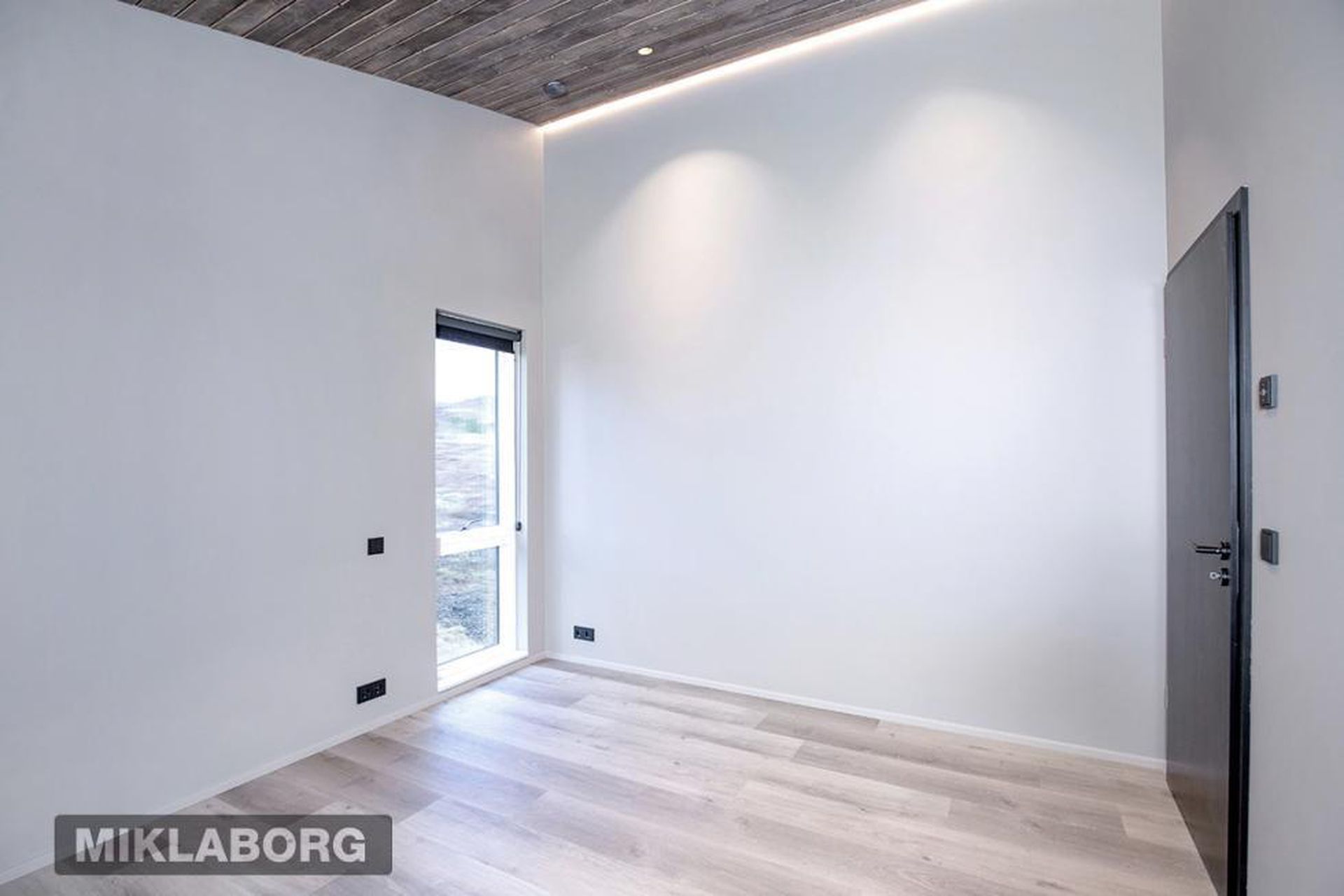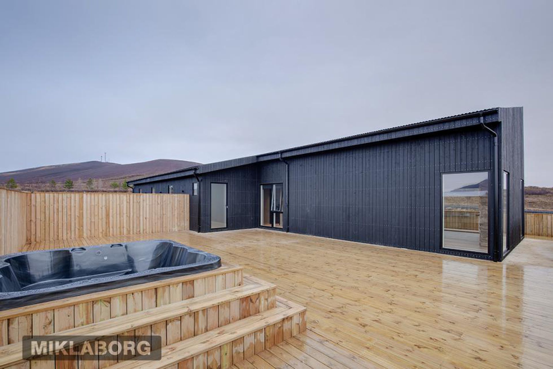Stór timburverönd er við hús, með heitum potti. Hitaveita er í húsinu, gólfsíðir gluggar, mikil lofthæð og gólfhiti ásamt Free@Home hússtjórnarkerfi. Innbyggð lýsing frá Lúmex. Húsið er teiknað af Gláma Kím arkitektastofu.