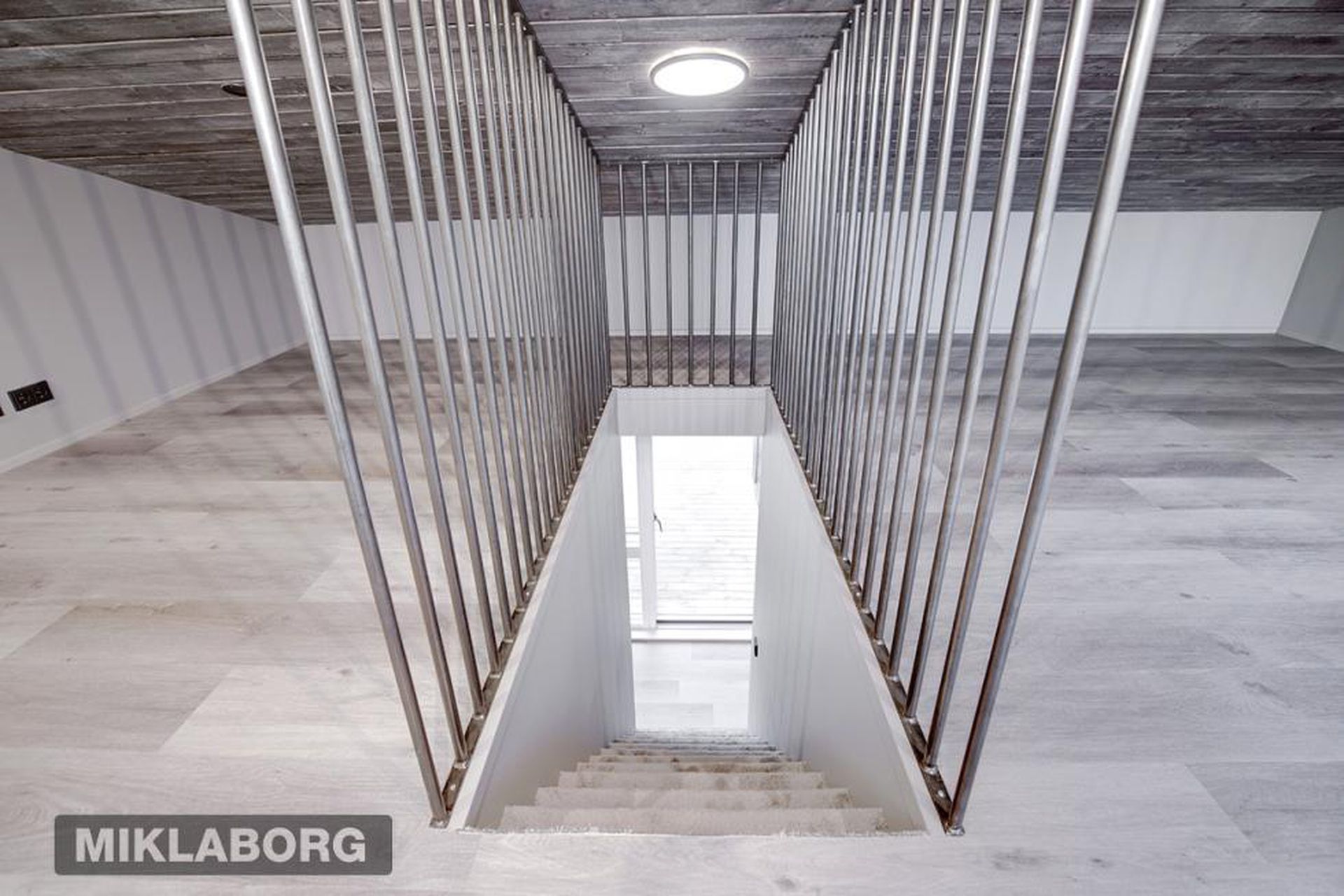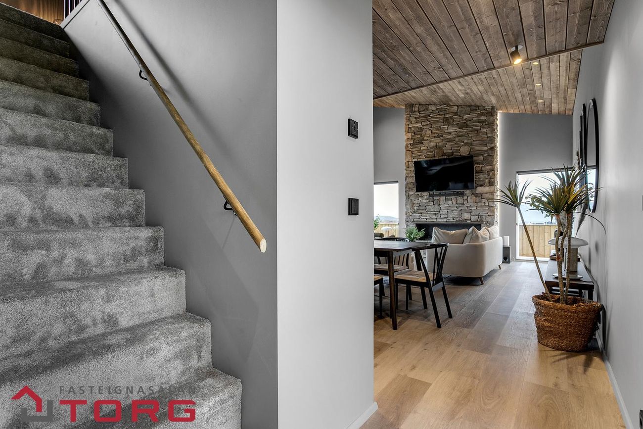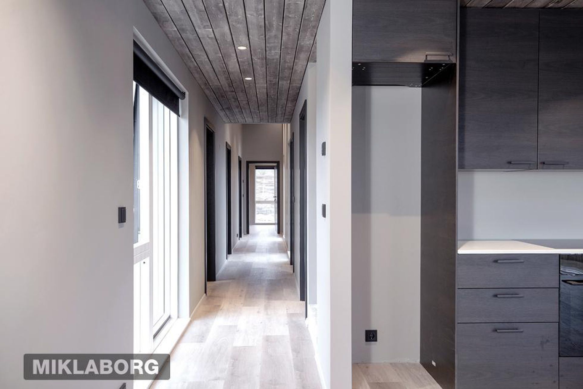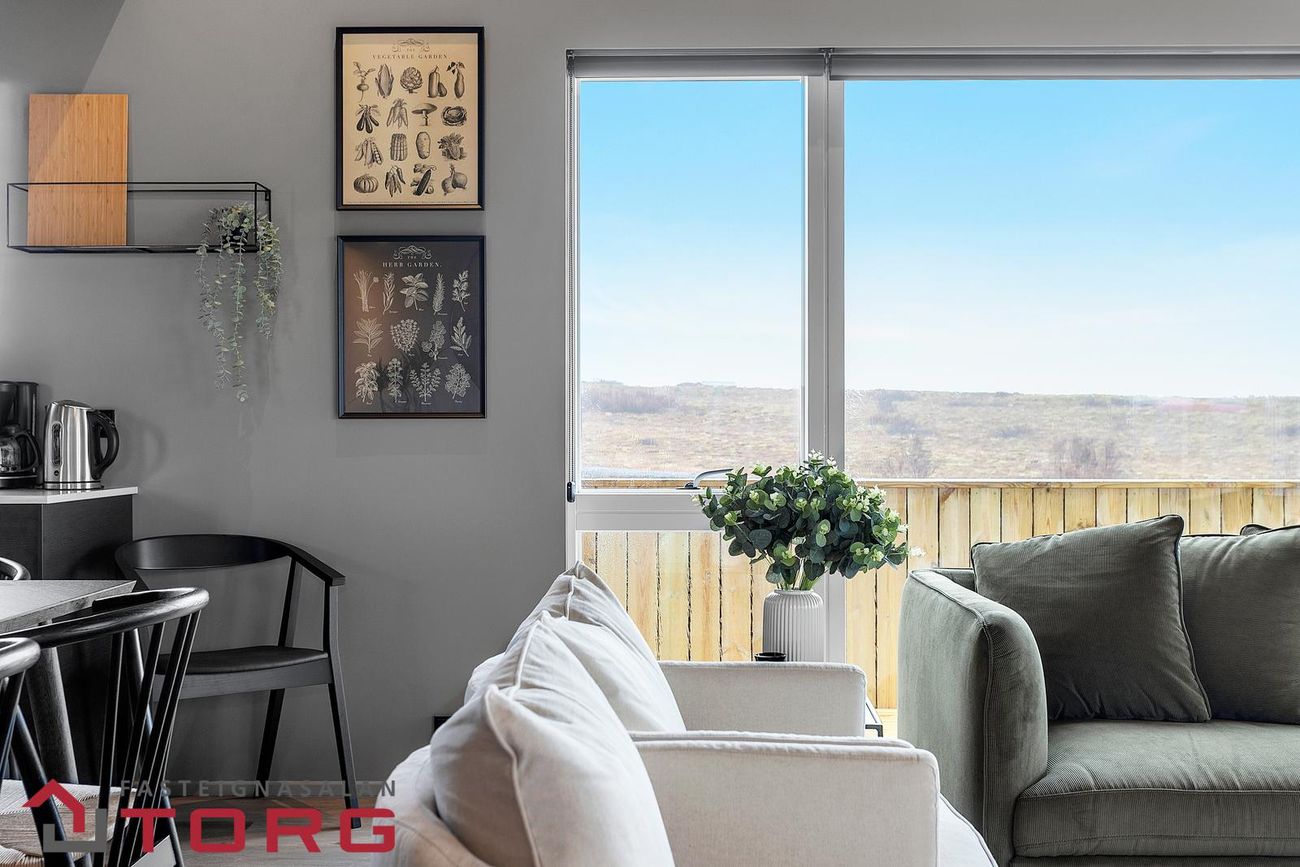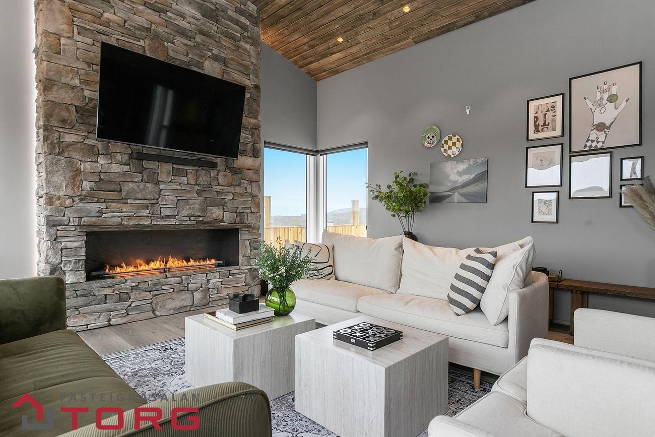 Stór timburverönd er við hús, með heitum potti. Hitaveita er í húsinu, gólfsíðir gluggar, mikil lofthæð og gólfhiti ásamt Free@Home hússtjórnarkerfi. Innbyggð lýsing frá Lúmex. Húsið er teiknað af Gláma Kím arkitektastofu.