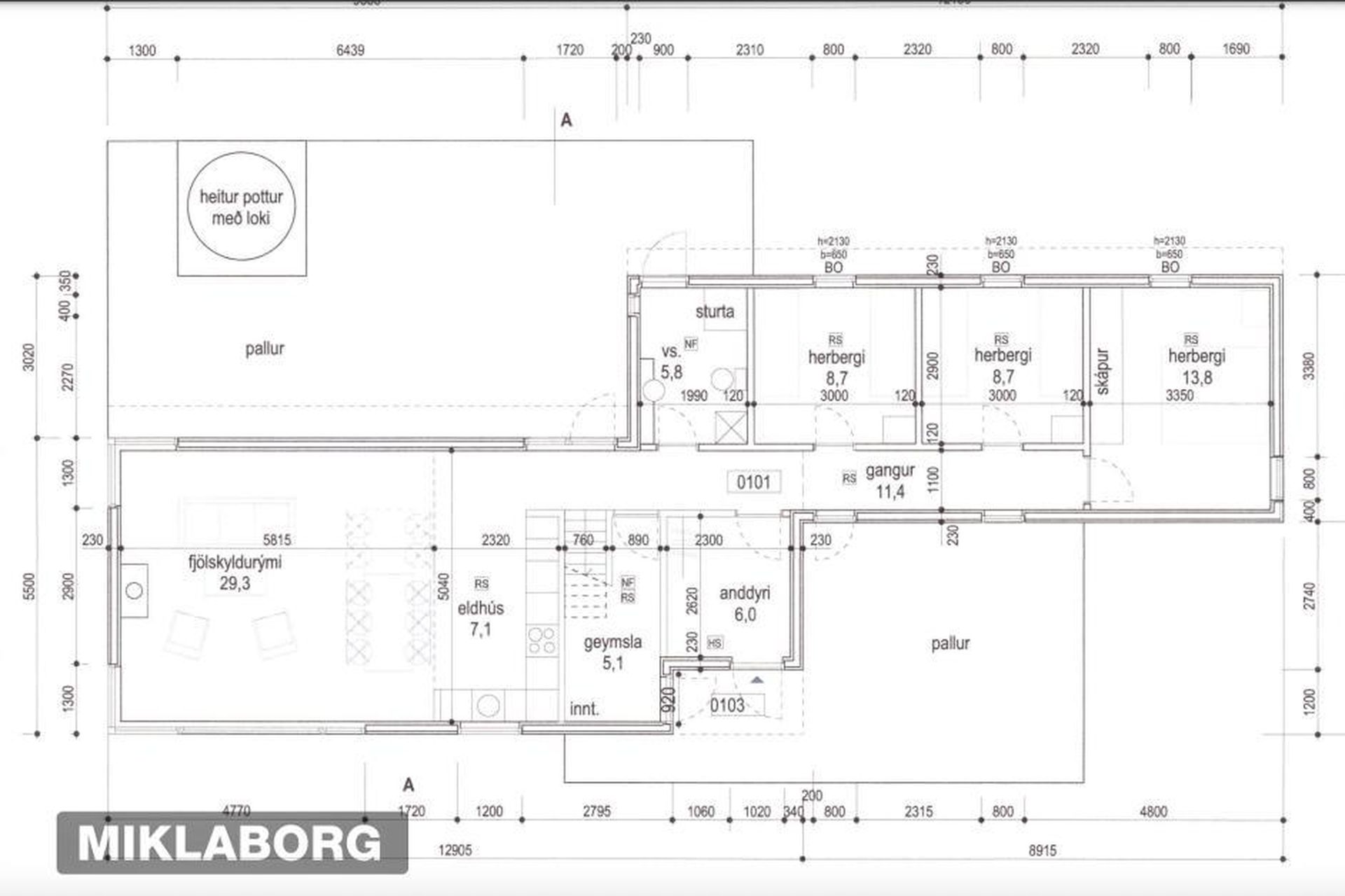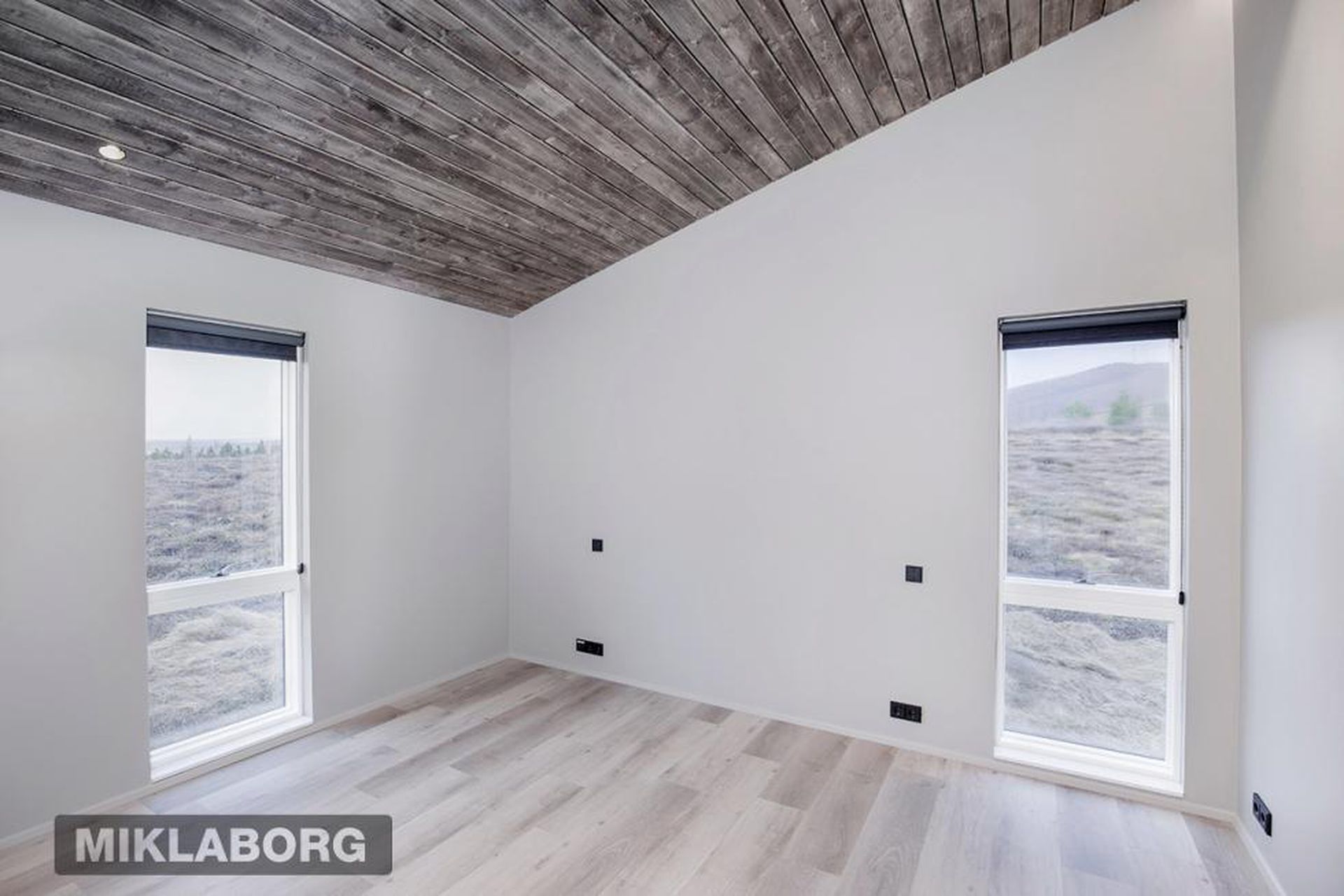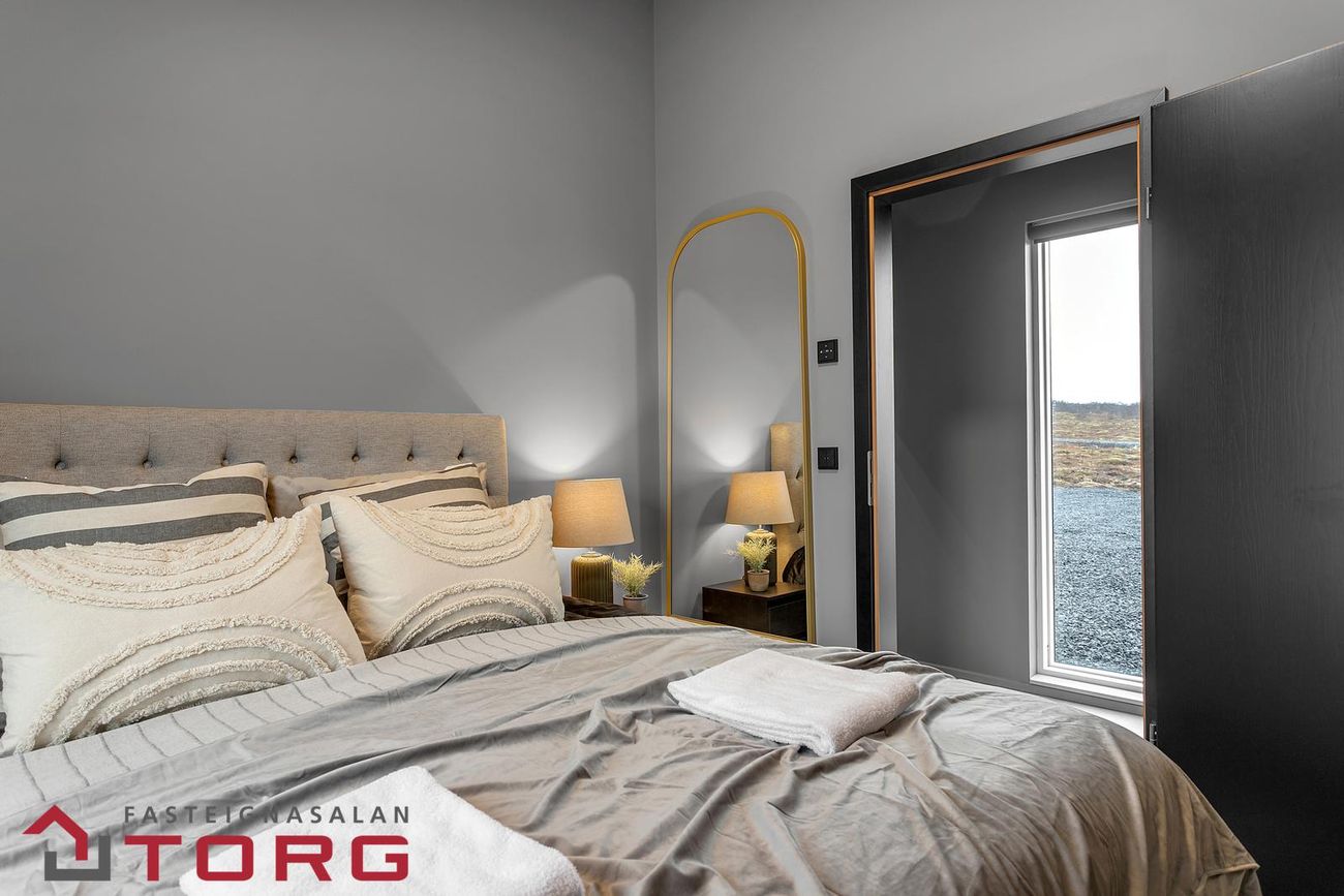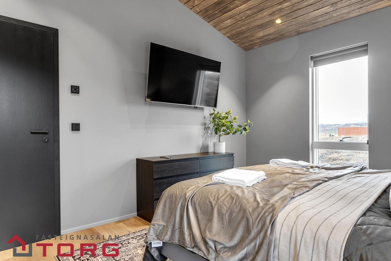 Þrjú svefnherbergi eru í húsi, öll rúmgóð ásamt svefnlofti. Gólfflötur á svefnlofti eru 31,9 fm, en skráð 12,9 vegna lofthæðar.