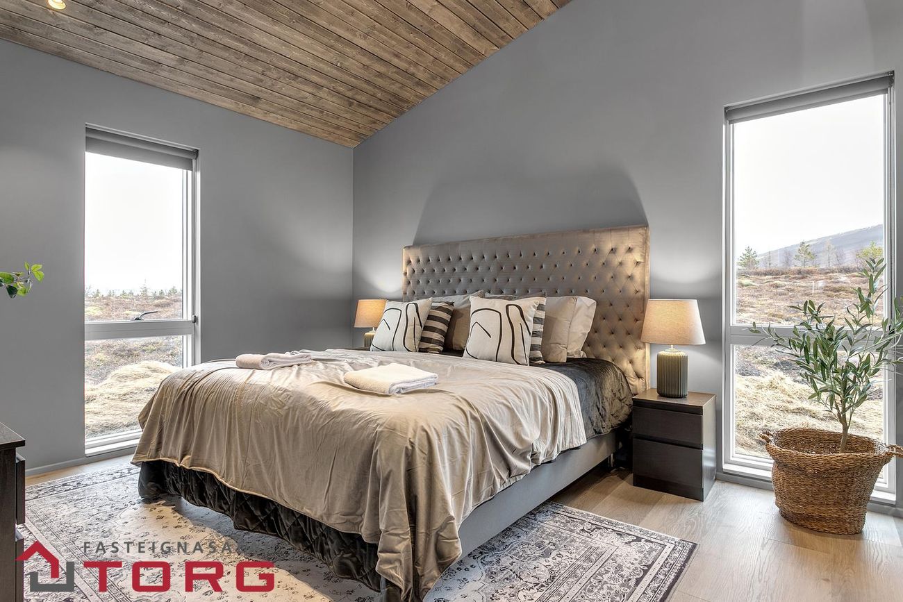 Fasteignasalan TORG kynnir í sölu: Fallegt, 5 herbergja, 134,5 fm sumarhús, vel staðsett, á rúmlega 6600 fm eignalóð í Grímsnesinu. Húsið skiptist í alrými með eldhúsi og stofu, 3 svefnherbergi, svefnloft, baðherbergi og þvottahús. Stór viðarpallur er við hús, með heitum potti. Einungis er um 50 min. akstur frá Reykjavík. Samkvæmt fyrirliggjandi deiliskipulagi er heimilt að byggja aukalega allt að 40 fm gestahús. Allar nánari upplýsingar veitir Matthildur Sunna Þorláksdóttir, lögfræðingur og löggiltur fasteignasali, í síma 690-4966 eða matthildur@fstorg.is