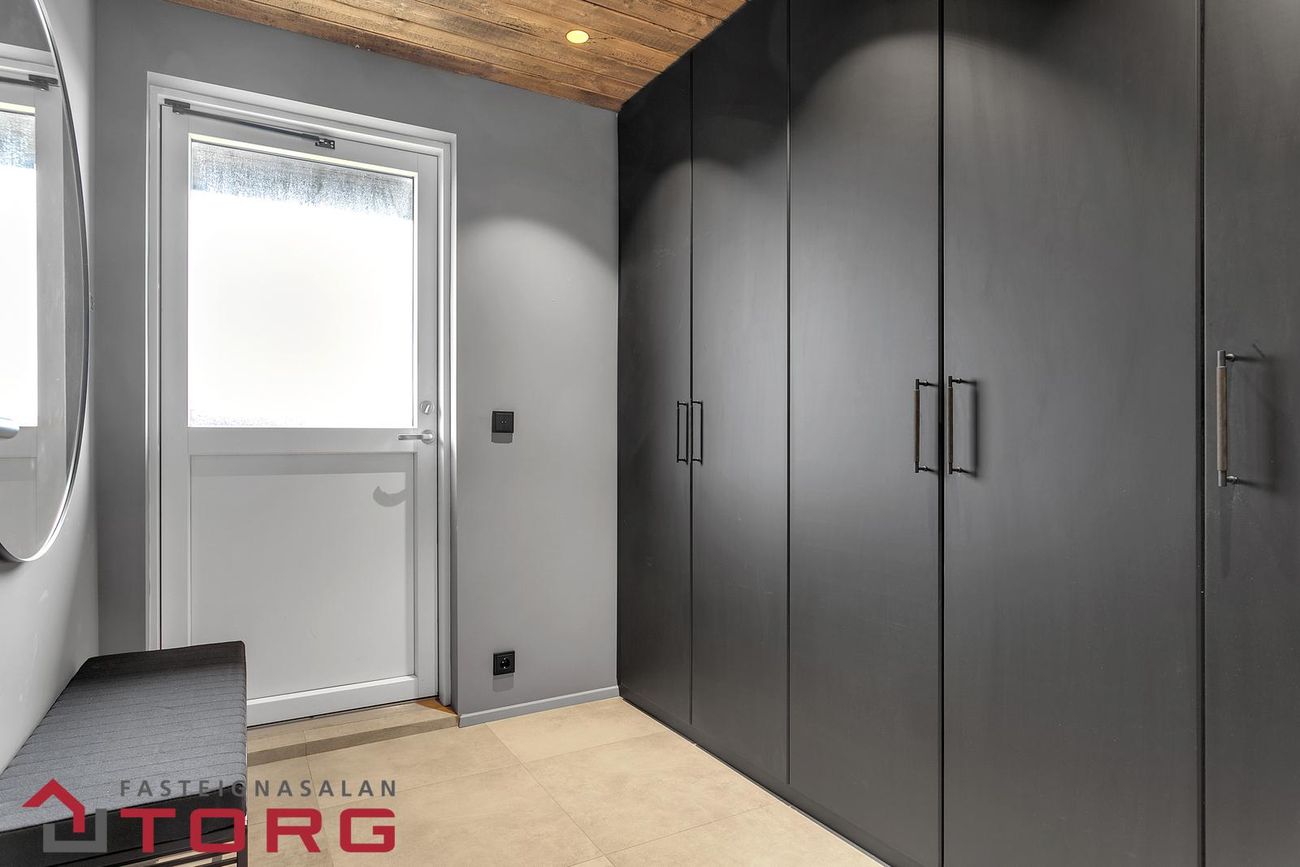 Nánari lýsing:Komið er inn í anddyri með fataskáp og flísum á gólfi.