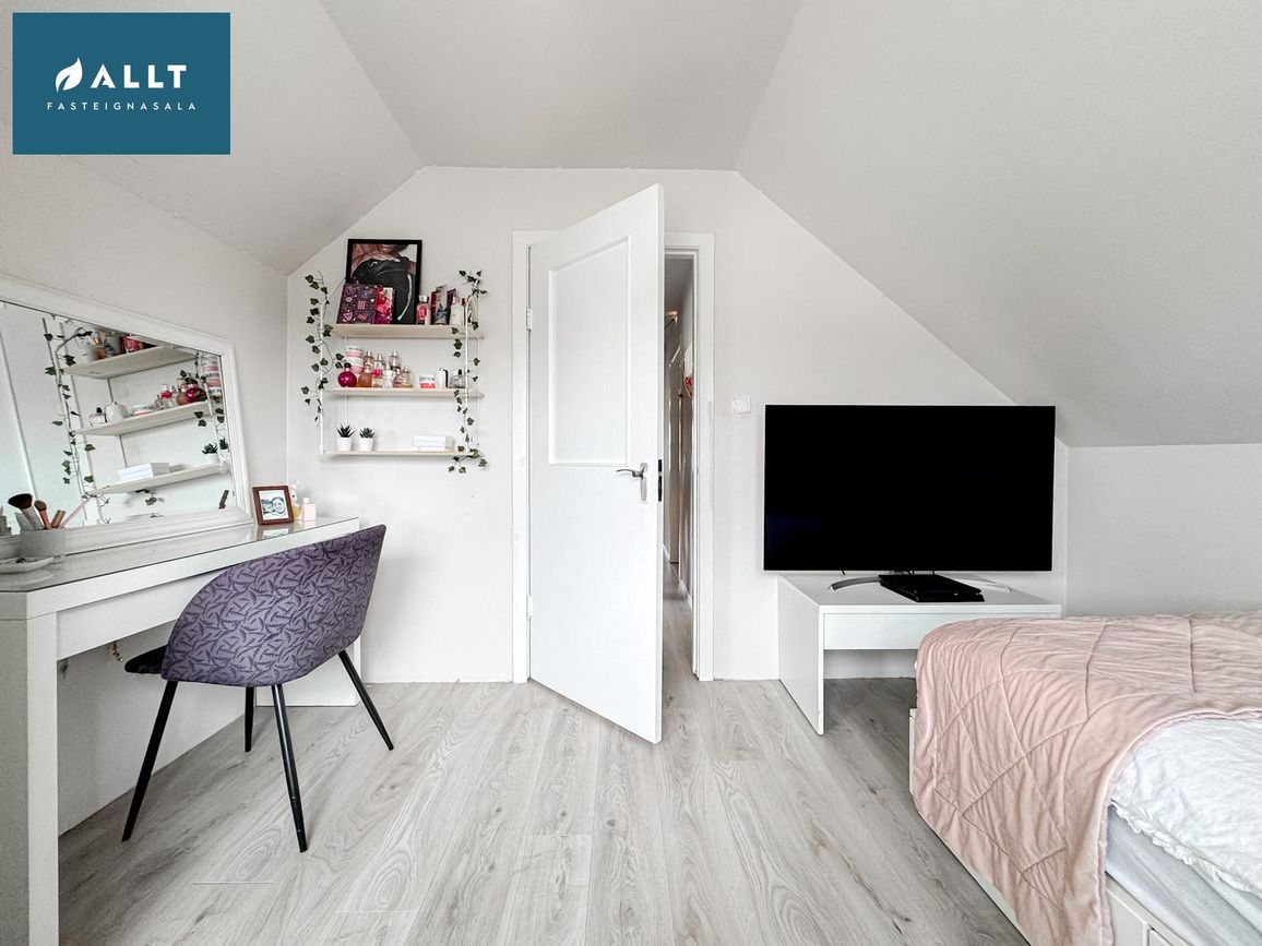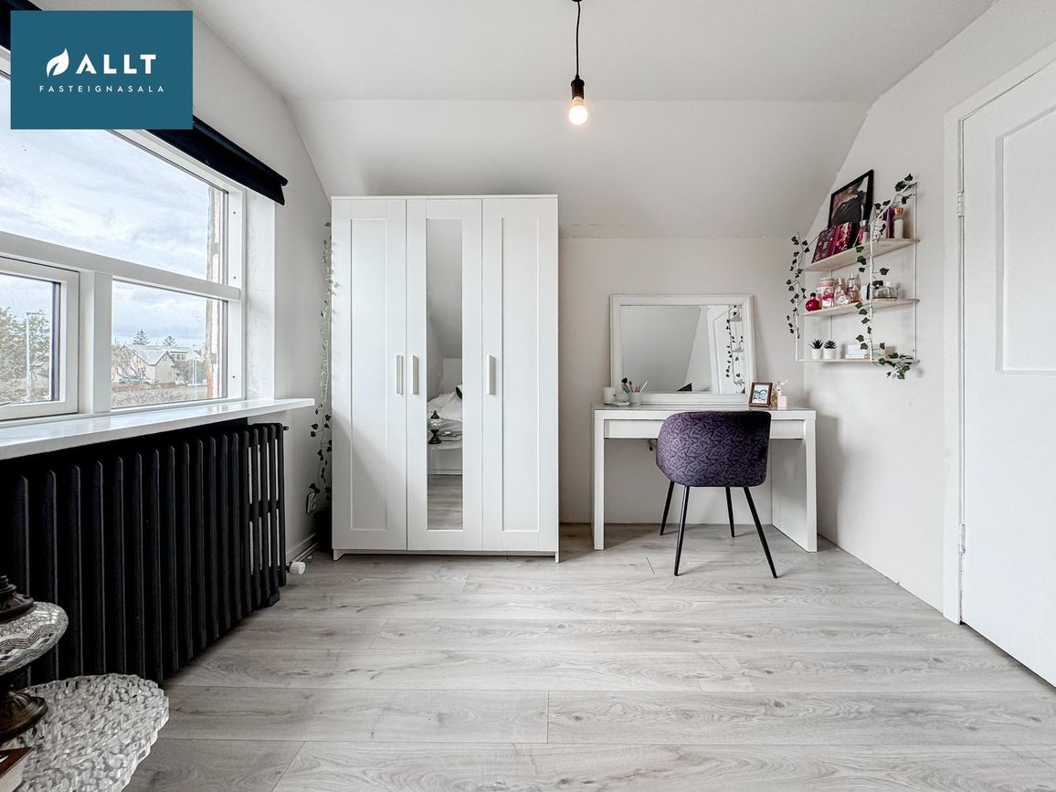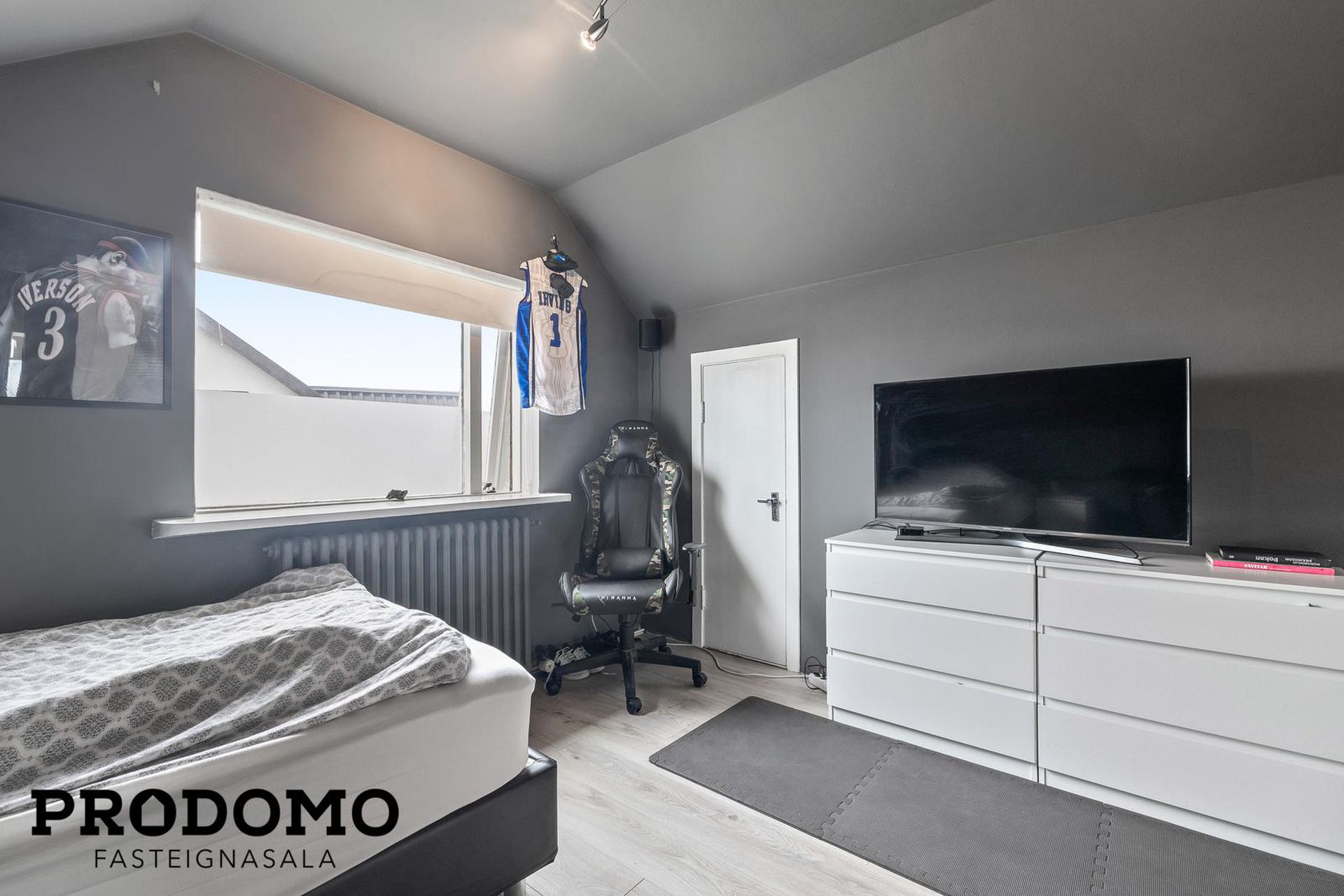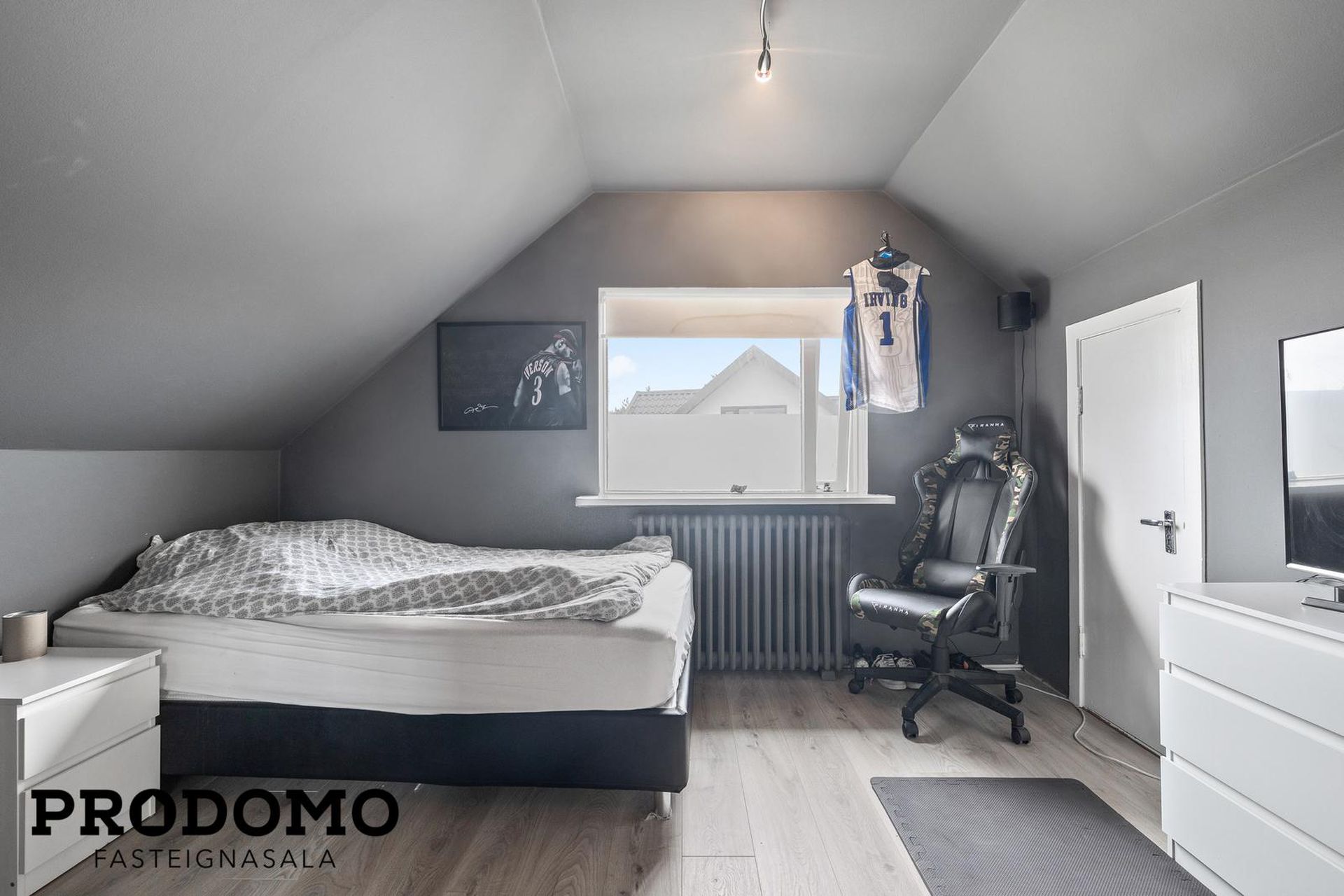Efri hæð:Svefnherbergi eru þrjú. Öll afar rúmgóð og hafa þau öll fataskáp. Parket á gólfi.