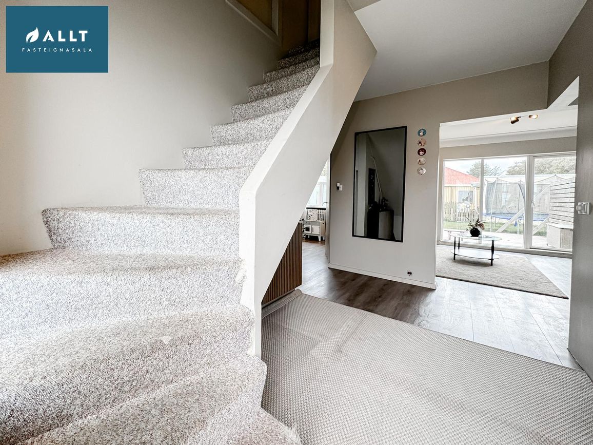Nánari upplýsingar veitir: Dísa Edwards Löggiltur fasteignasali, í síma 863-6608, tölvupóstur disa@allt.is Neðri hæð:Forstofa rúmgóð með gráum flísum á gólfi. Stigi upp á efri hæð.