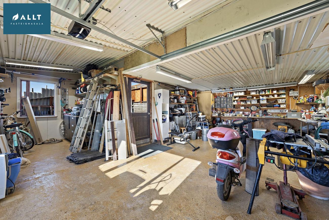 48.9 fm bílskúr með steyptu gólfi, góðri hurð og heitu/köldu vatni.