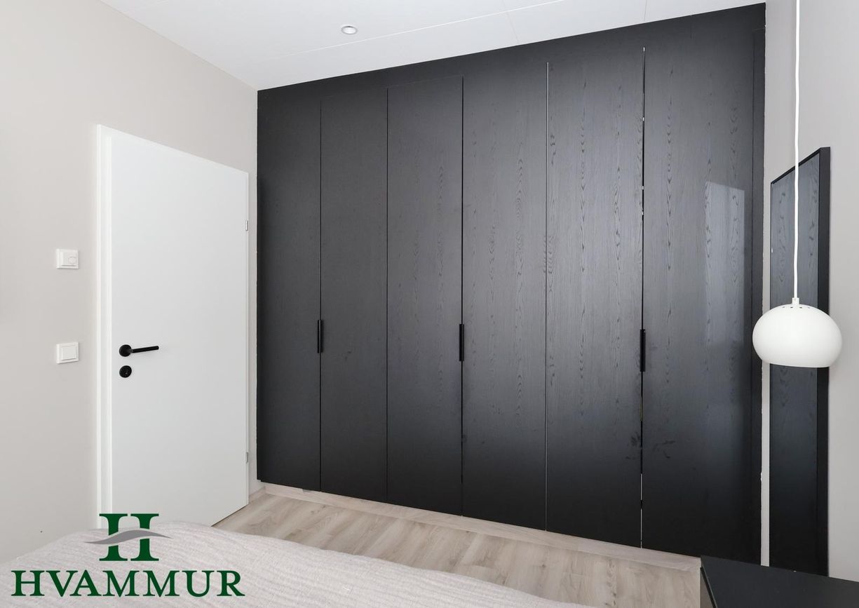 Virkilega skemmtilegt útsýni er úr íbúðinni- Vandaðar innréttingar frá GKS, svartar plastlagðar, Nero oak.