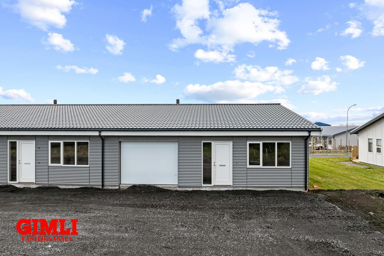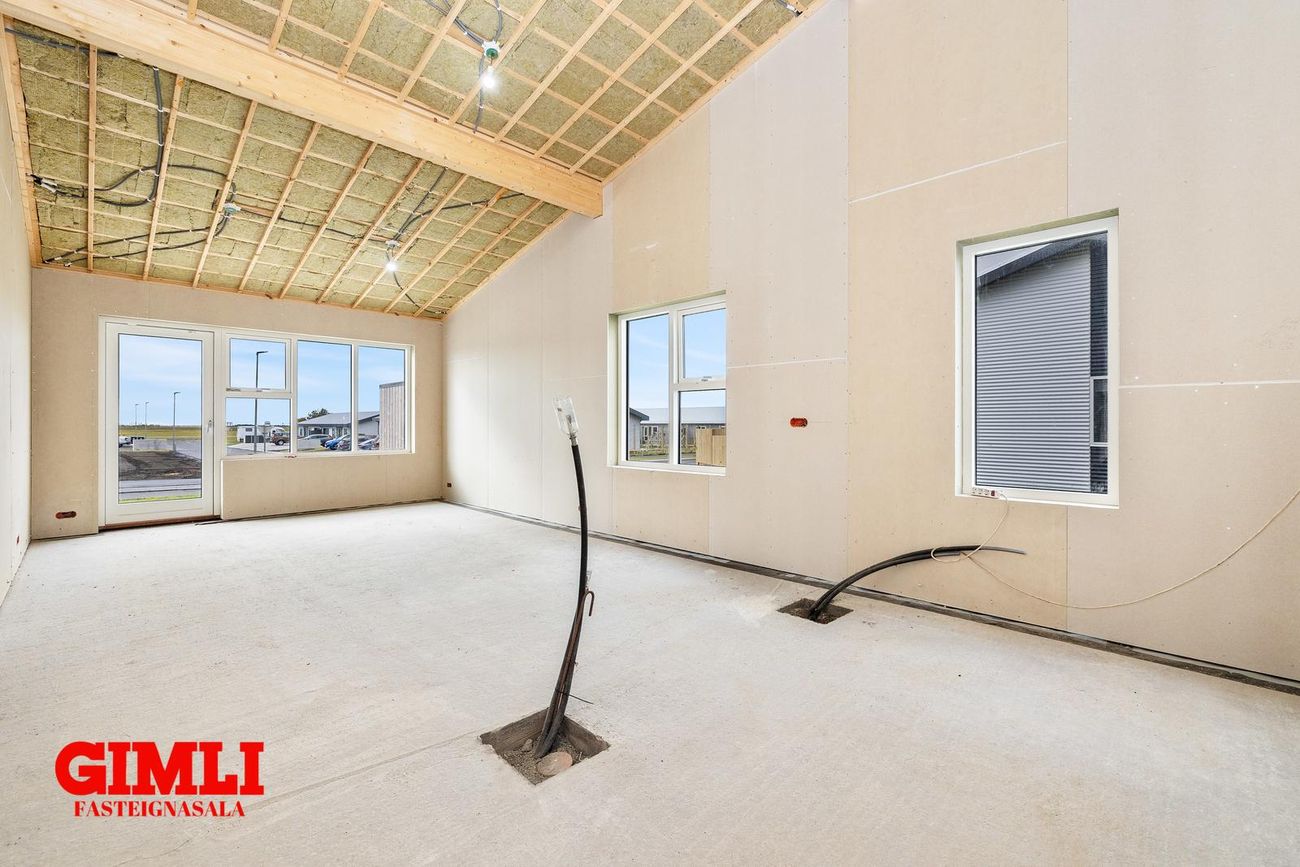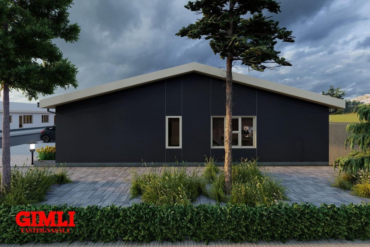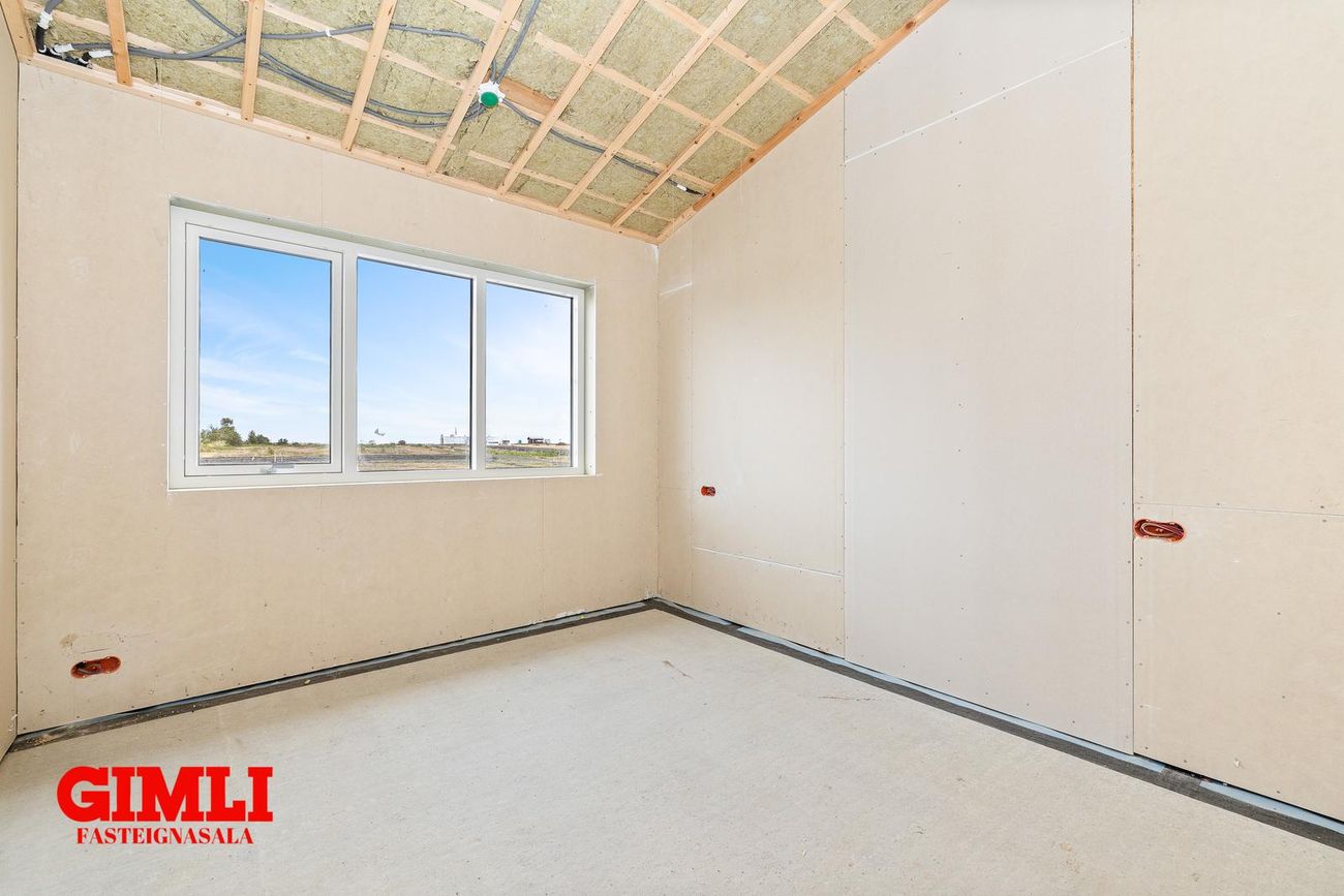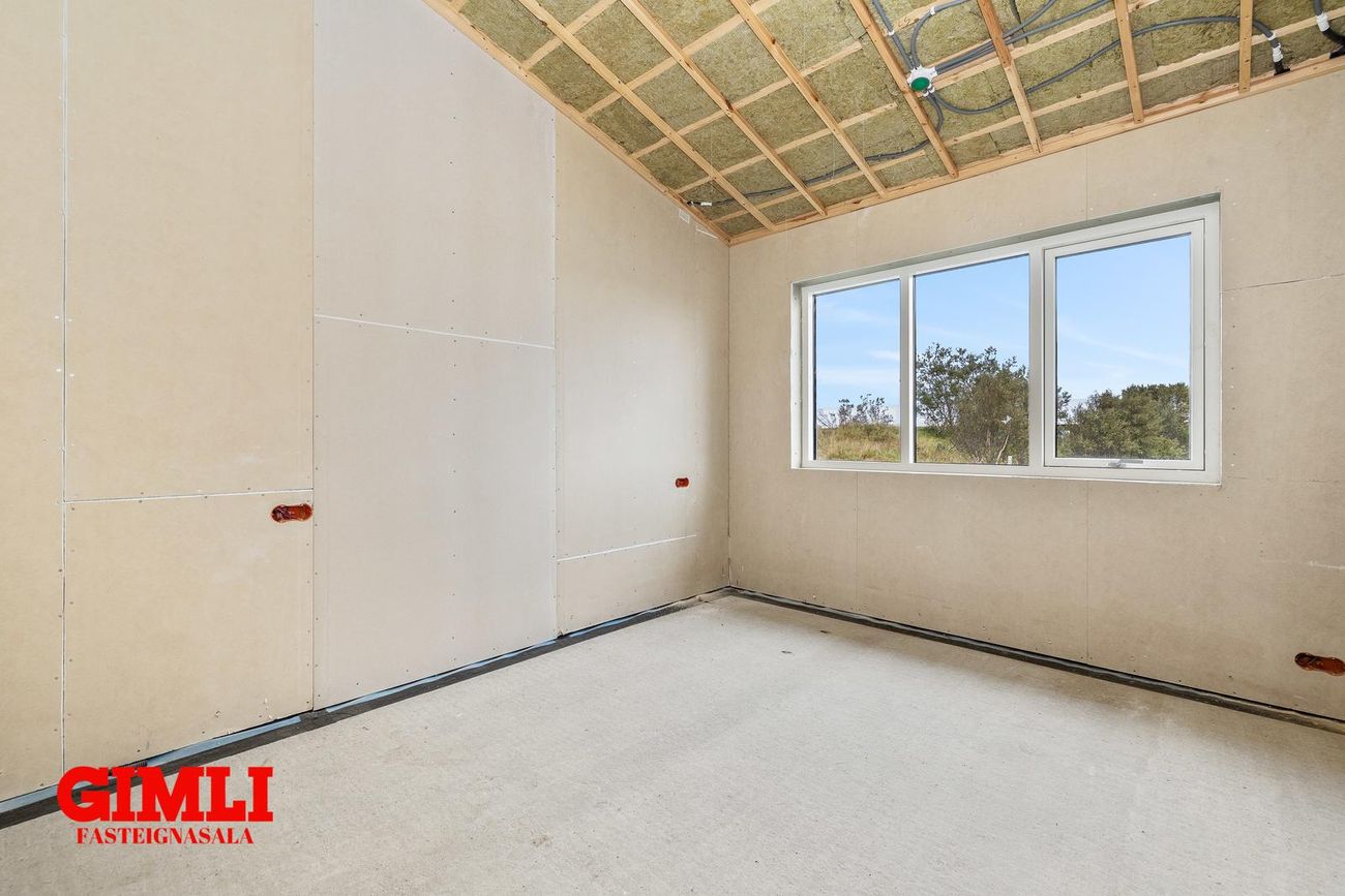 Nánari upplýsingar veita: Ólafur B. Blöndal Löggiltur fasteignasali í síma 6900811, olafur@gimli.is og Lilja Hrafnberg Viðskiptafræðingur/Löggiltur fasteignasali, í síma 8206511, lilja@gimli.is Sjá myndband með þrívíddarteikningum af eigninniNÁNARI LÝSING:Húsið er byggt úr timbri en sökklar og gólfplata er steypt. Útveggir eru klæddir að utan með báruáli. Stölluð klæðning er á þaki og þakkantur er klæddur furupanil. Gluggar og hurðir eru úr timbri klæddir með áli. Útiljós er í útvegg við aðalinngang og við hurð útá pall. Tvö ídráttarrör eru út í garð, t.d fyrir pott og rafmagn. Gert er ráð fyrir rafbílahleðslu.