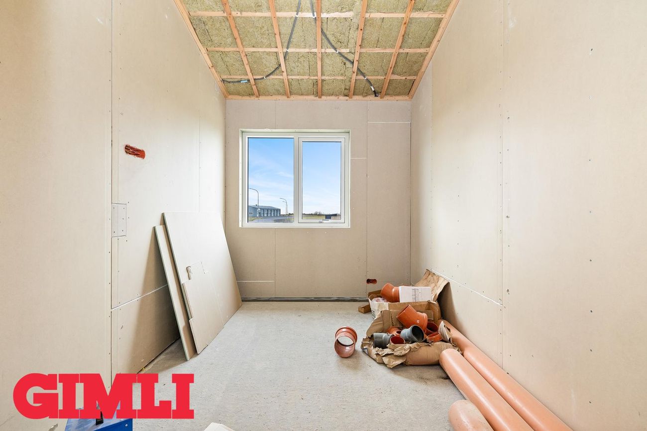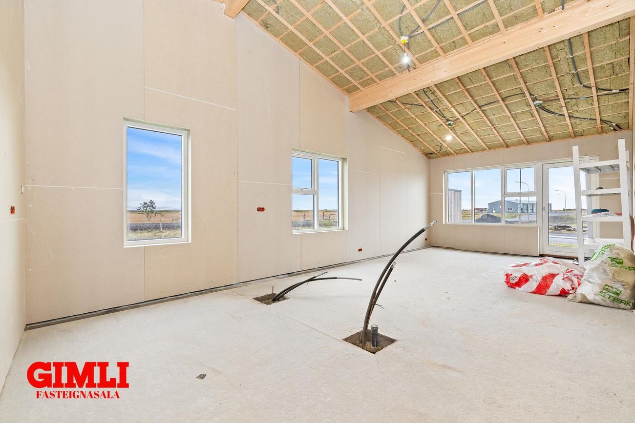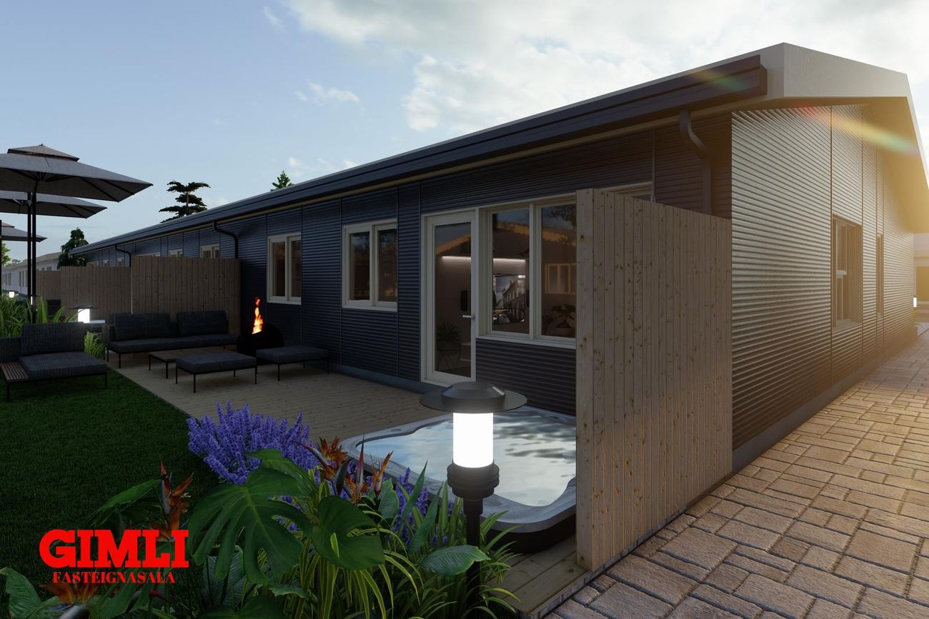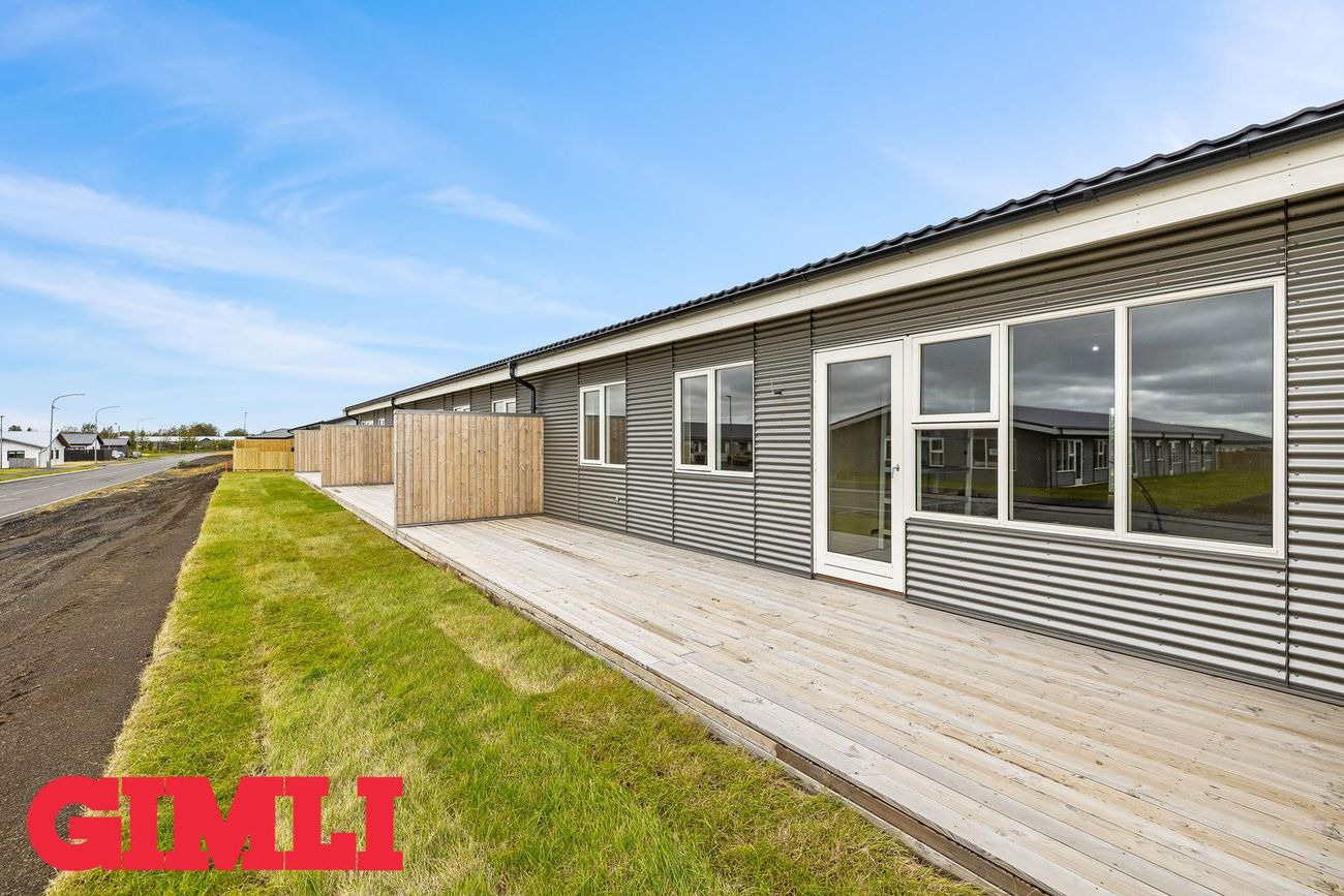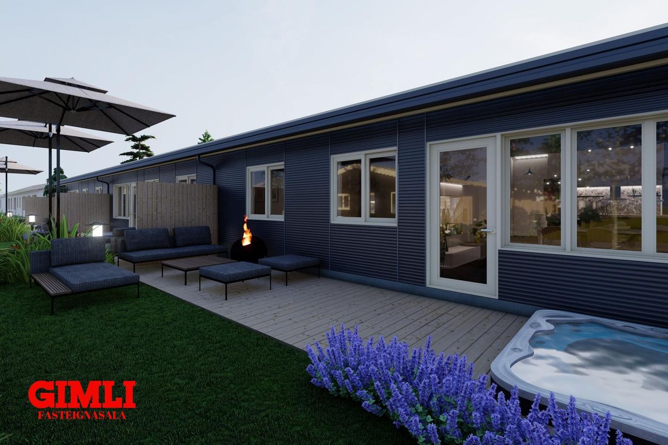 Nánari upplýsingar veita: Ólafur B. Blöndal Löggiltur fasteignasali í síma 6900811, olafur@gimli.is og Lilja Hrafnberg Viðskiptafræðingur/Löggiltur fasteignasali, í síma 8206511, lilja@gimli.is Sjá myndband með þrívíddarteikningum af eigninniNÁNARI LÝSING:Húsið er byggt úr timbri en sökklar og gólfplata er steypt. Útveggir eru klæddir að utan með báruáli. Stölluð klæðning er á þaki og þakkantur er klæddur furupanil. Gluggar og hurðir eru úr timbri klæddir með áli. Útiljós er í útvegg við aðalinngang og við hurð útá pall. Tvö ídráttarrör eru út í garð, t.d fyrir pott og rafmagn. Gert er ráð fyrir rafbílahleðslu.