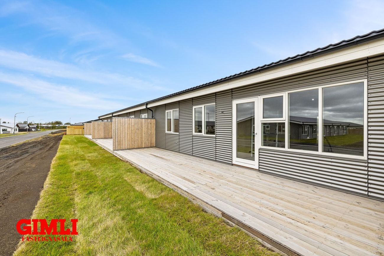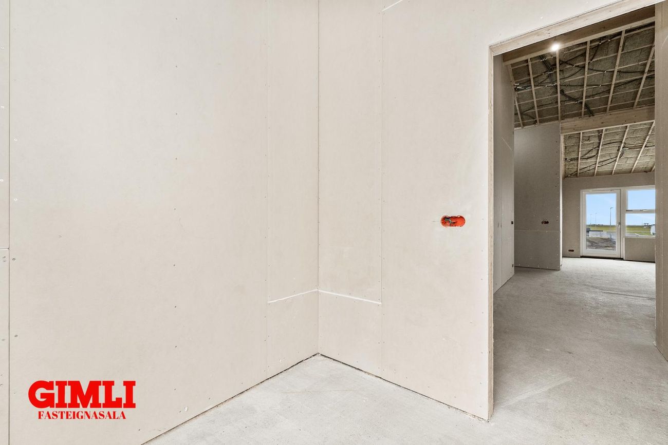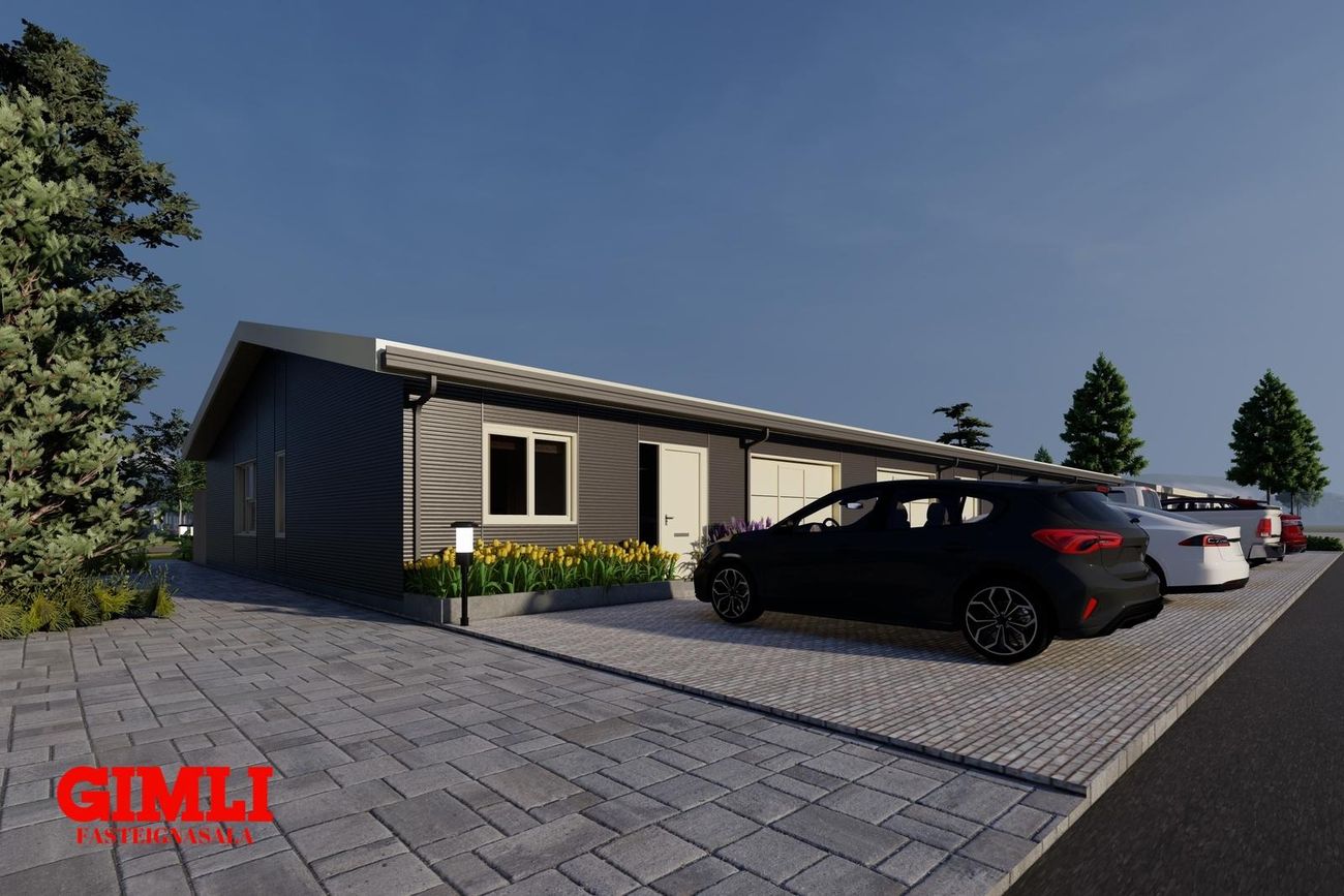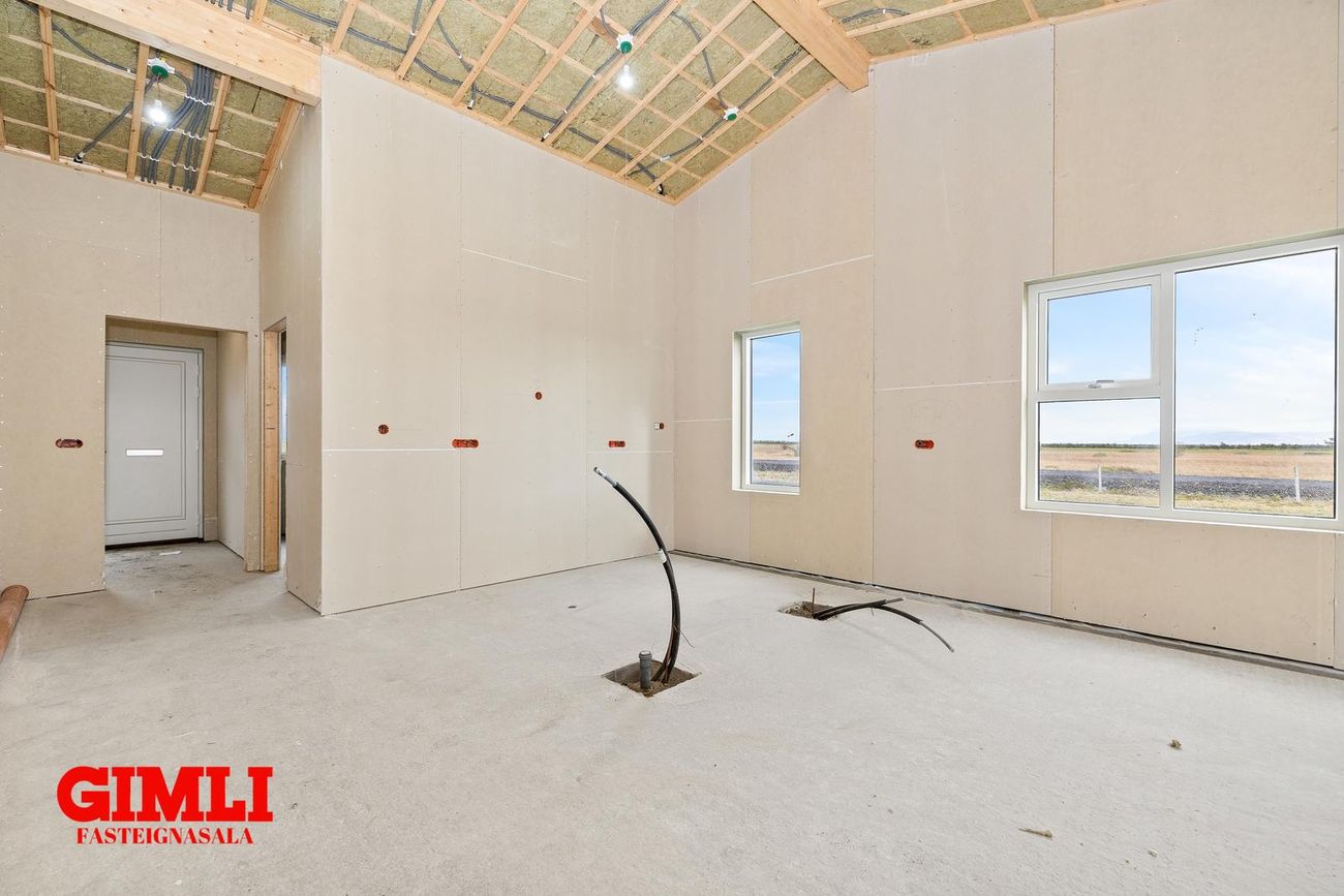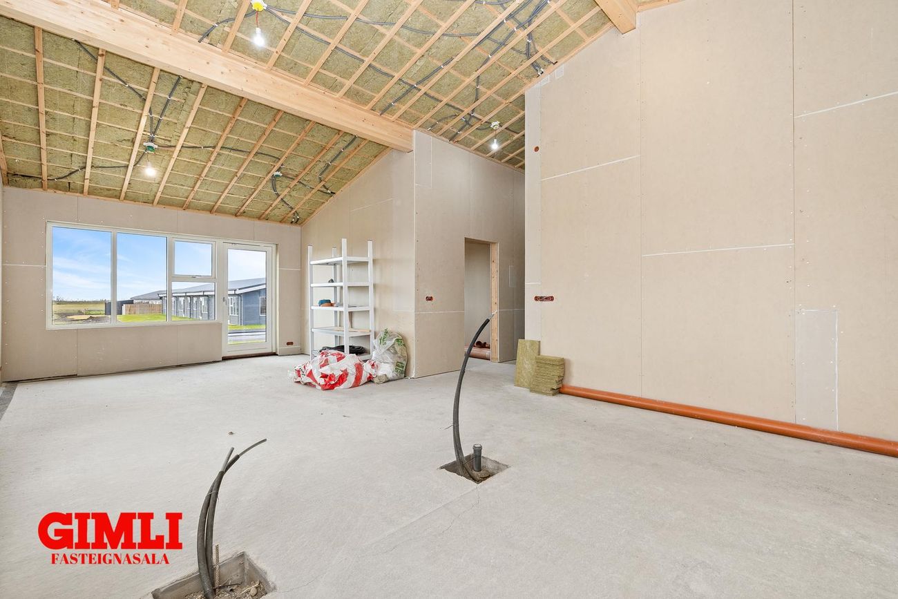 Nánari upplýsingar veita: Ólafur B. Blöndal Löggiltur fasteignasali í síma 6900811, olafur@gimli.is og Lilja Hrafnberg Viðskiptafræðingur/Löggiltur fasteignasali, í síma 8206511, lilja@gimli.is Sjá myndband með þrívíddarteikningum af eigninniNÁNARI LÝSING:Húsið er byggt úr timbri en sökklar og gólfplata er steypt. Útveggir eru klæddir að utan með báruáli. Stölluð klæðning er á þaki og þakkantur er klæddur furupanil. Gluggar og hurðir eru úr timbri klæddir með áli. Útiljós er í útvegg við aðalinngang og við hurð útá pall. Tvö ídráttarrör eru út í garð, t.d fyrir pott og rafmagn. Gert er ráð fyrir rafbílahleðslu.