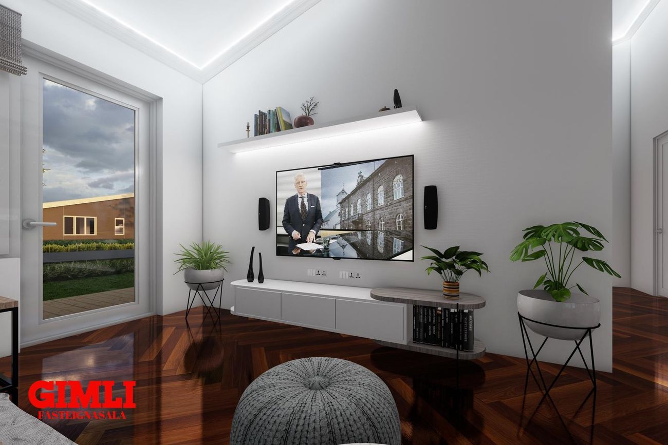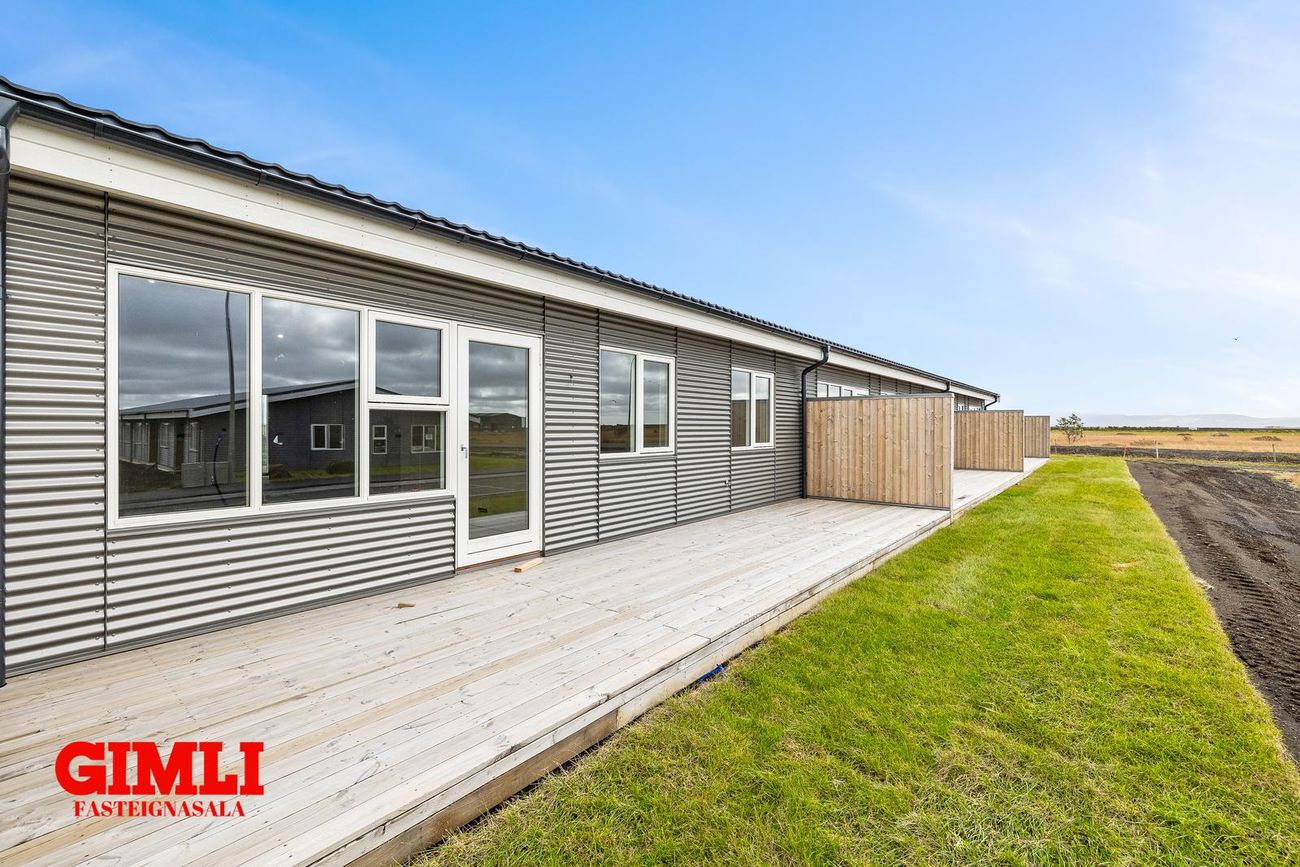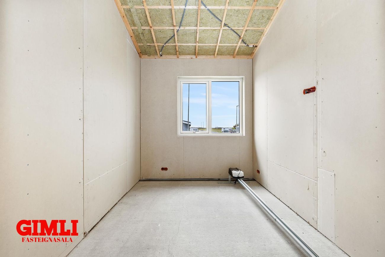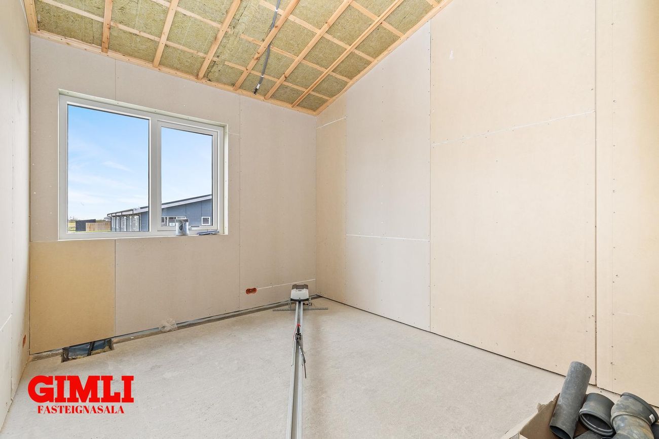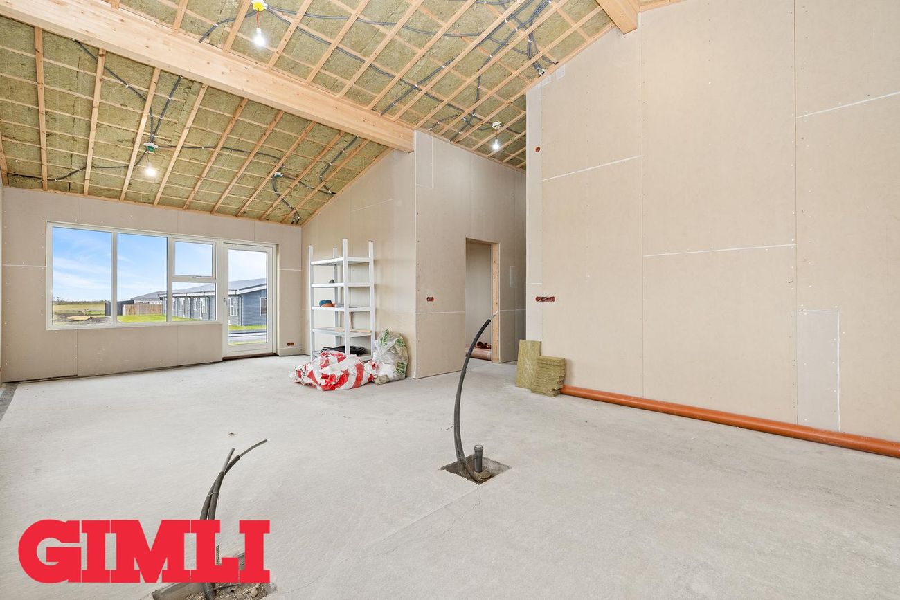 Nánari upplýsingar veita: Ólafur B. Blöndal Löggiltur fasteignasali í síma 6900811, olafur@gimli.is og Lilja Hrafnberg Viðskiptafræðingur/Löggiltur fasteignasali, í síma 8206511, lilja@gimli.is Sjá myndband með þrívíddarteikningum af eigninniNÁNARI LÝSING:Húsið er byggt úr timbri en sökklar og gólfplata er steypt. Útveggir eru klæddir að utan með báruáli. Stölluð klæðning er á þaki og þakkantur er klæddur furupanil. Gluggar og hurðir eru úr timbri klæddir með áli. Útiljós er í útvegg við aðalinngang og við hurð útá pall. Tvö ídráttarrör eru út í garð, t.d fyrir pott og rafmagn. Gert er ráð fyrir rafbílahleðslu.