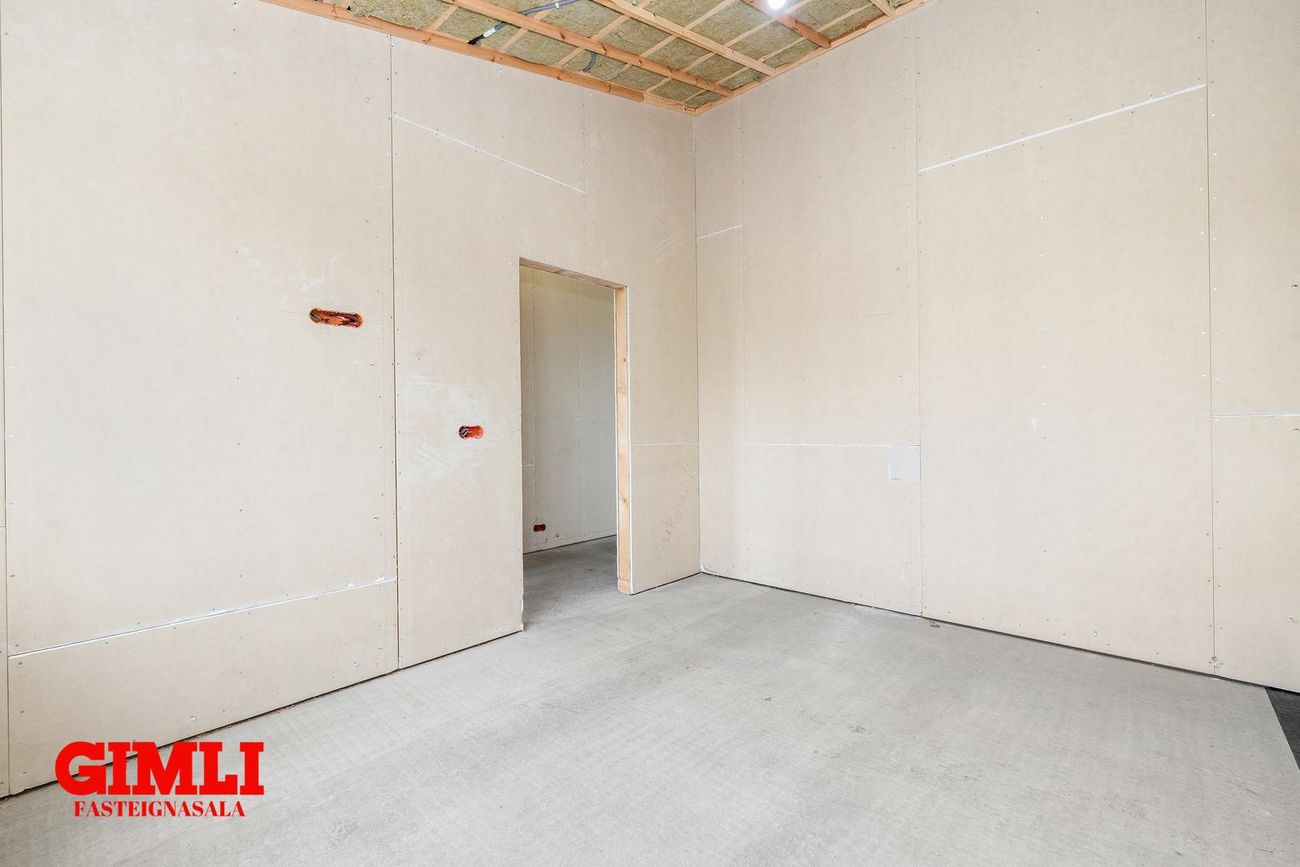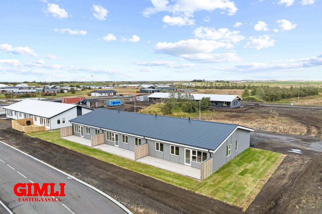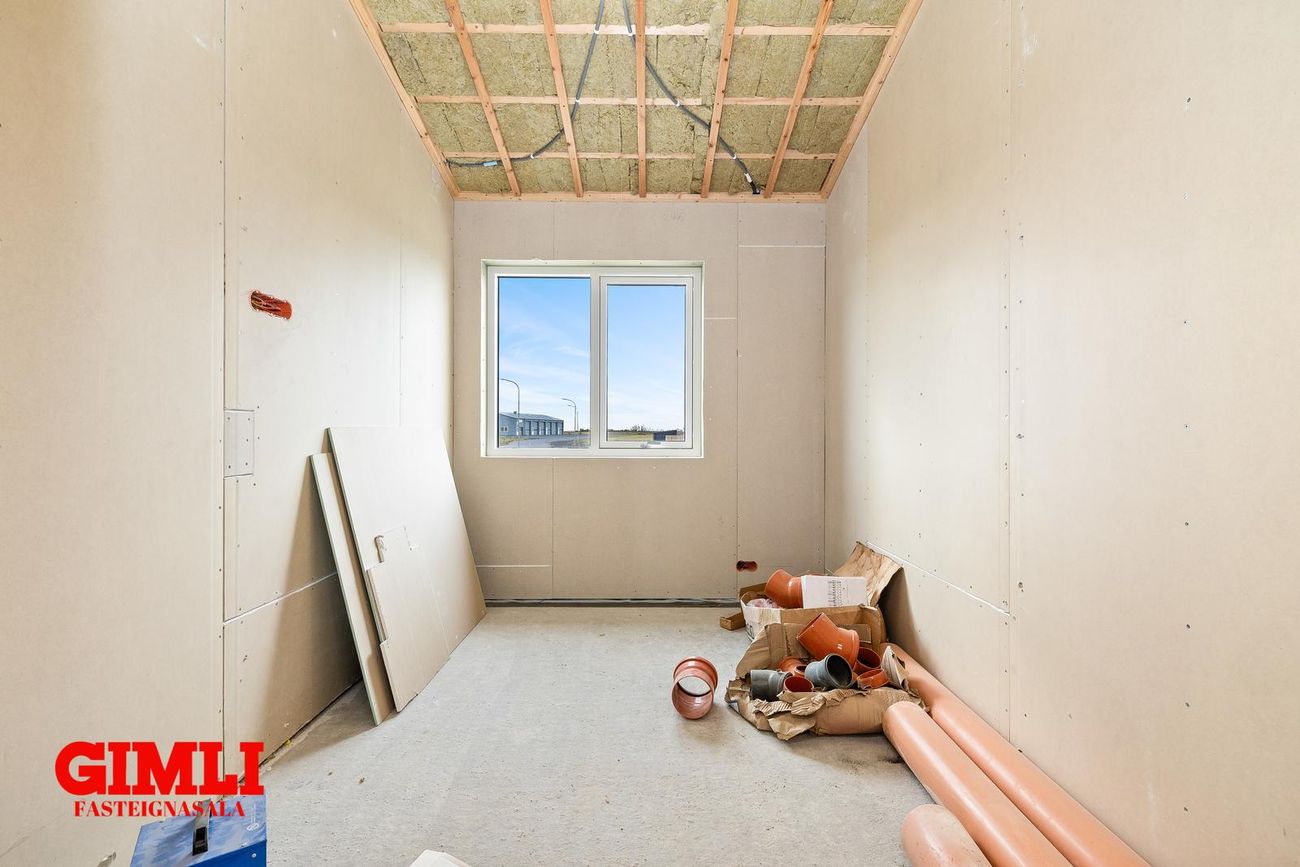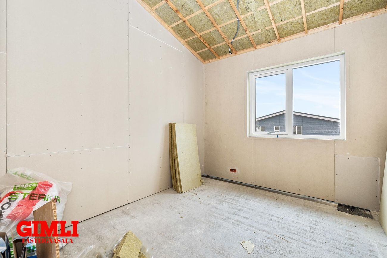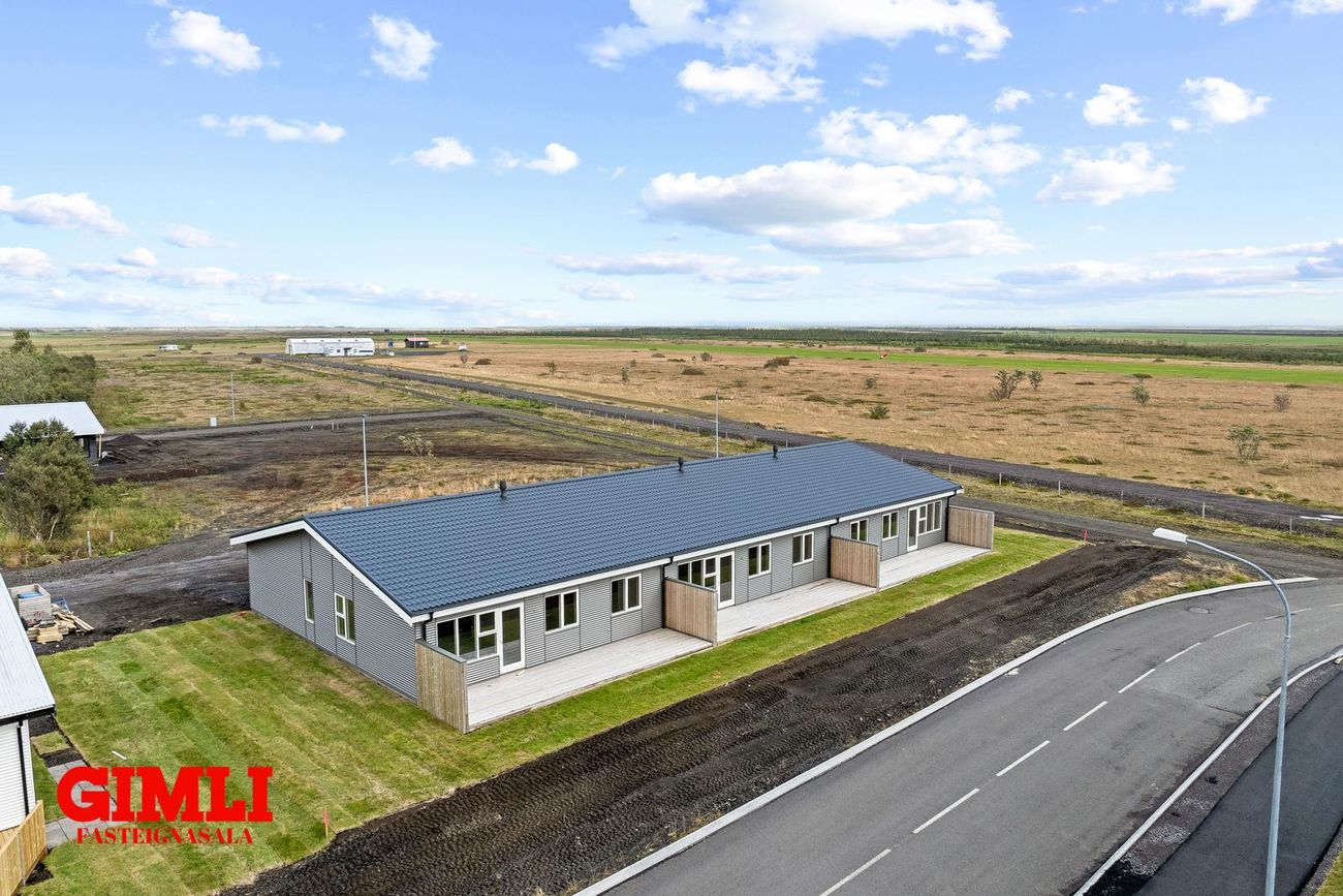 Nánari upplýsingar veita: Ólafur B. Blöndal Löggiltur fasteignasali í síma 6900811, olafur@gimli.is og Lilja Hrafnberg Viðskiptafræðingur/Löggiltur fasteignasali, í síma 8206511, lilja@gimli.is Sjá myndband með þrívíddarteikningum af eigninniNÁNARI LÝSING:Húsið er byggt úr timbri en sökklar og gólfplata er steypt. Útveggir eru klæddir að utan með báruáli. Stölluð klæðning er á þaki og þakkantur er klæddur furupanil. Gluggar og hurðir eru úr timbri klæddir með áli. Útiljós er í útvegg við aðalinngang og við hurð útá pall. Tvö ídráttarrör eru út í garð, t.d fyrir pott og rafmagn. Gert er ráð fyrir rafbílahleðslu.