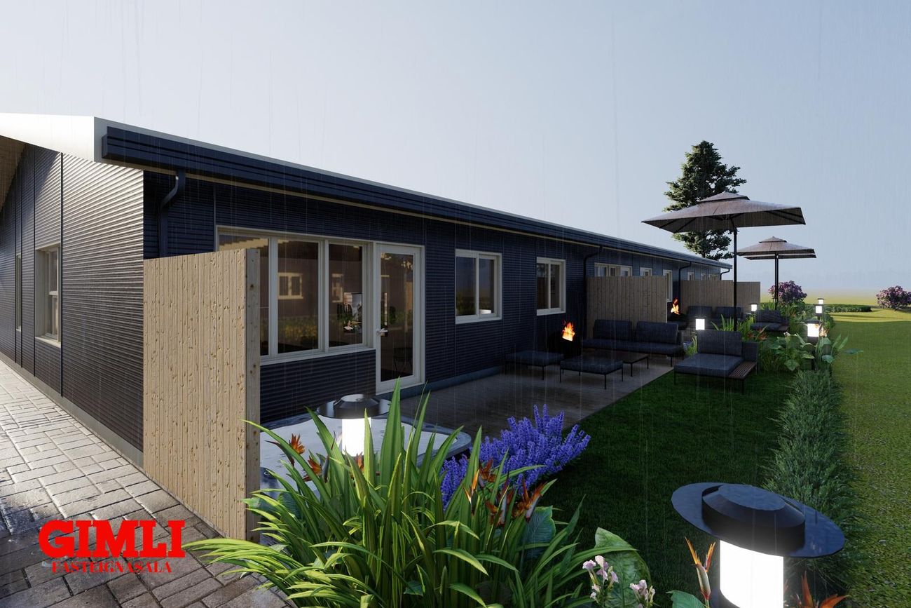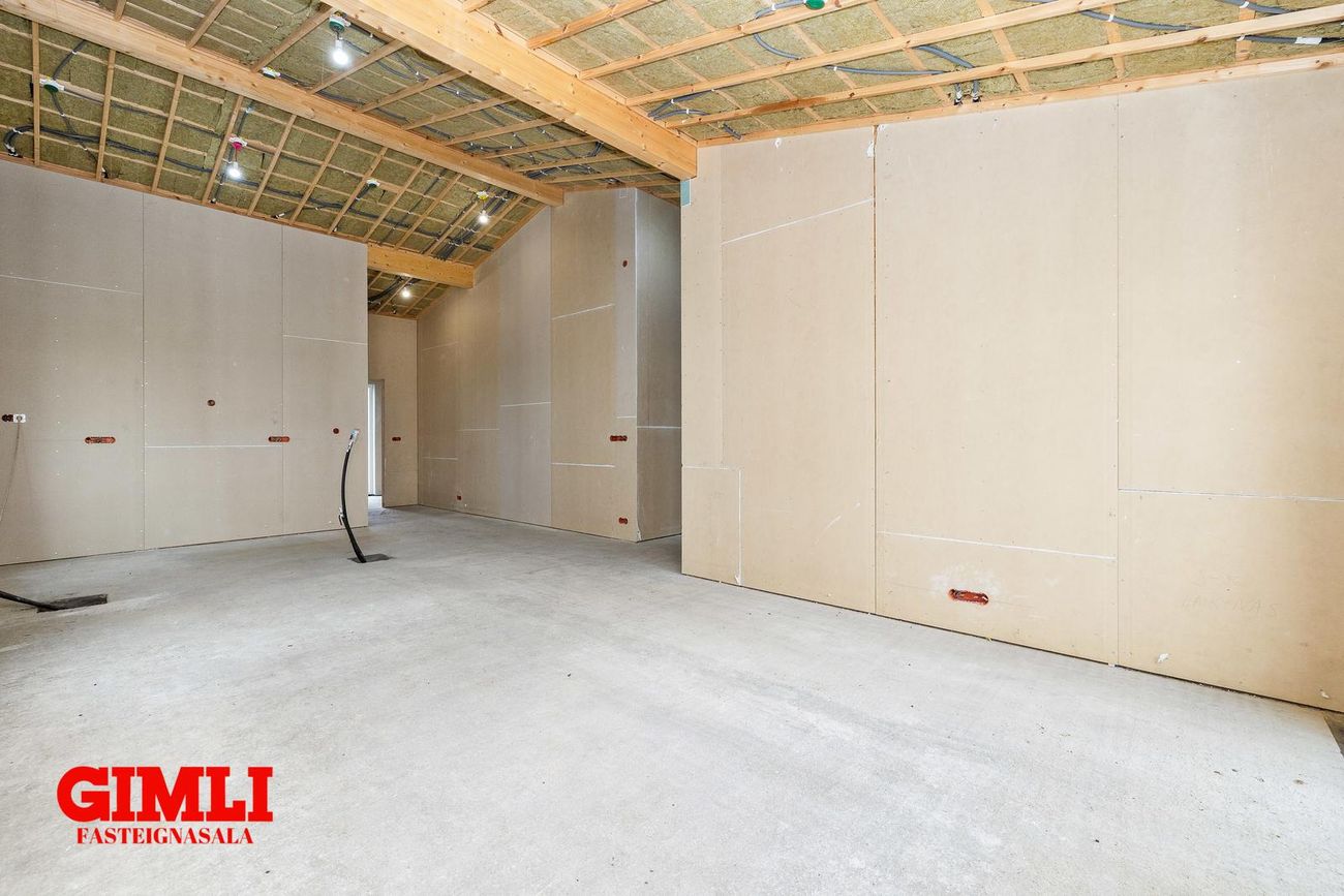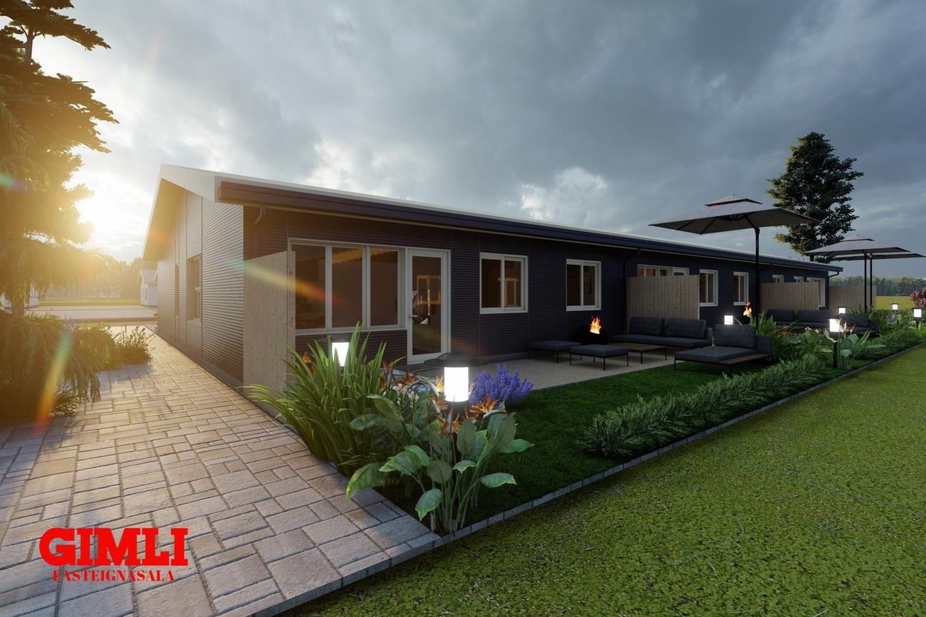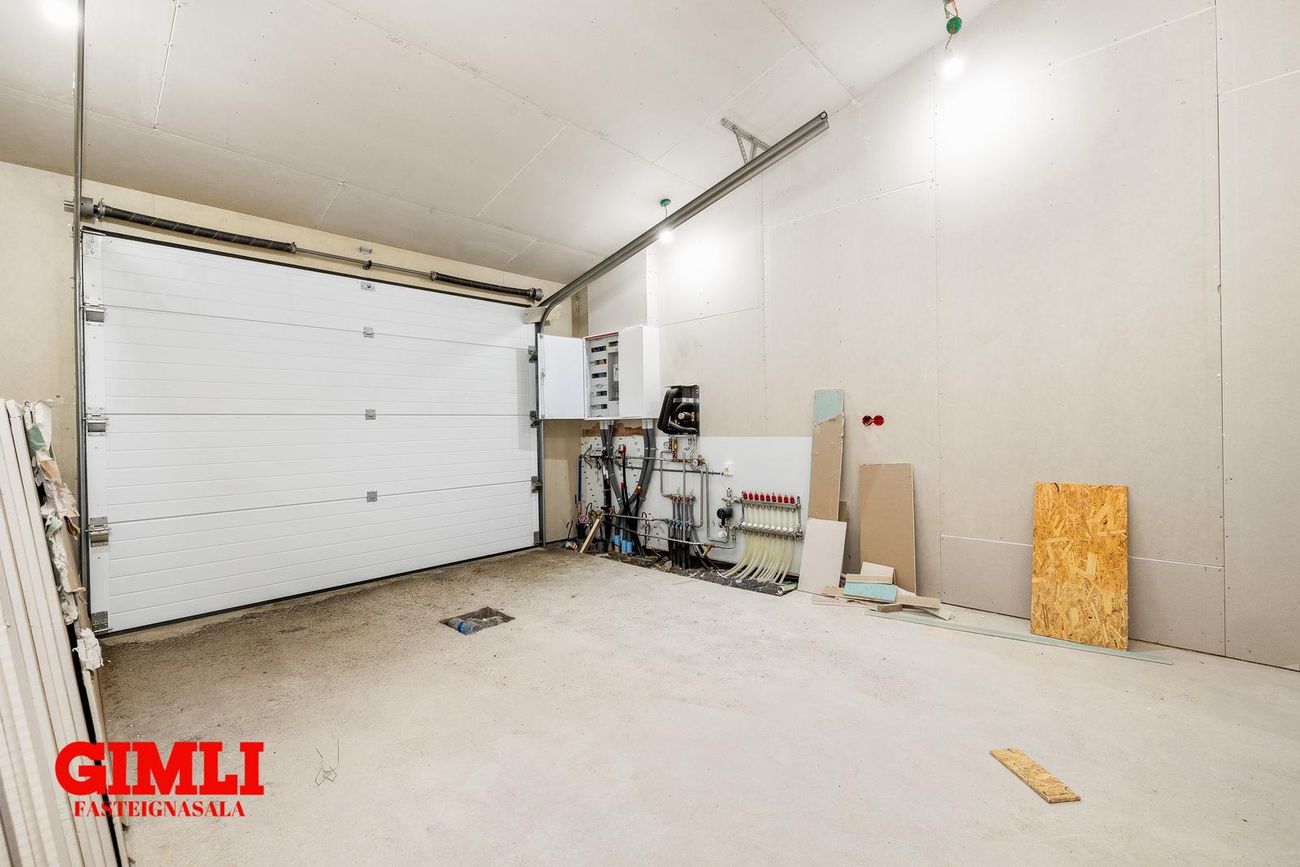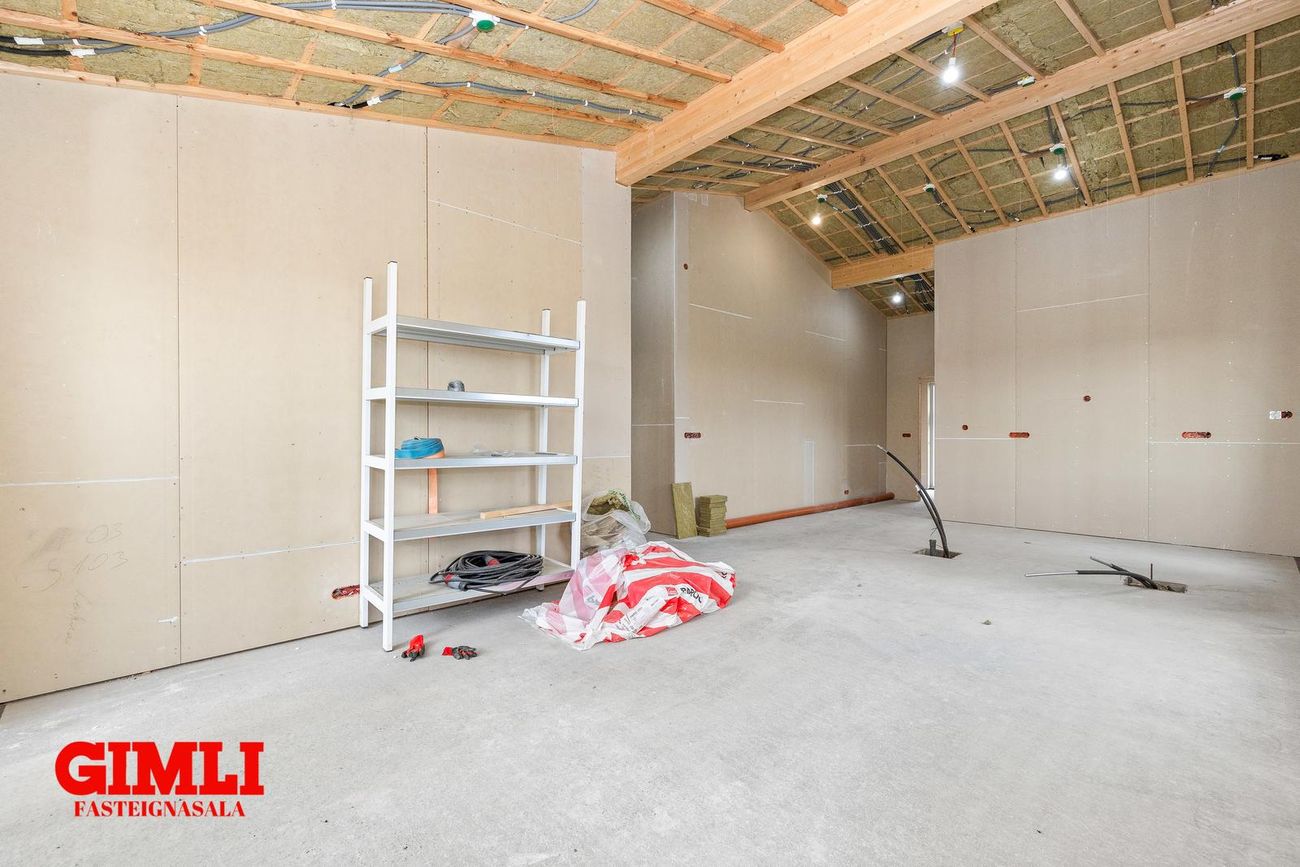Nánari upplýsingar veita: Ólafur B. Blöndal Löggiltur fasteignasali í síma 6900811, olafur@gimli.is og Lilja Hrafnberg Viðskiptafræðingur/Löggiltur fasteignasali, í síma 8206511, lilja@gimli.is Sjá myndband með þrívíddarteikningum af eigninniNÁNARI LÝSING:Húsið er byggt úr timbri en sökklar og gólfplata er steypt. Útveggir eru klæddir að utan með báruáli. Stölluð klæðning er á þaki og þakkantur er klæddur furupanil. Gluggar og hurðir eru úr timbri klæddir með áli. Útiljós er í útvegg við aðalinngang og við hurð útá pall. Tvö ídráttarrör eru út í garð, t.d fyrir pott og rafmagn. Gert er ráð fyrir rafbílahleðslu.