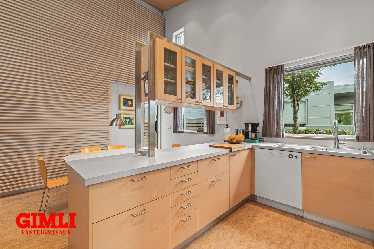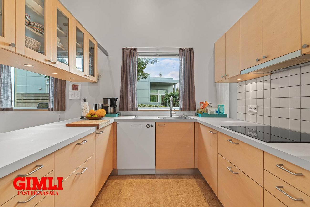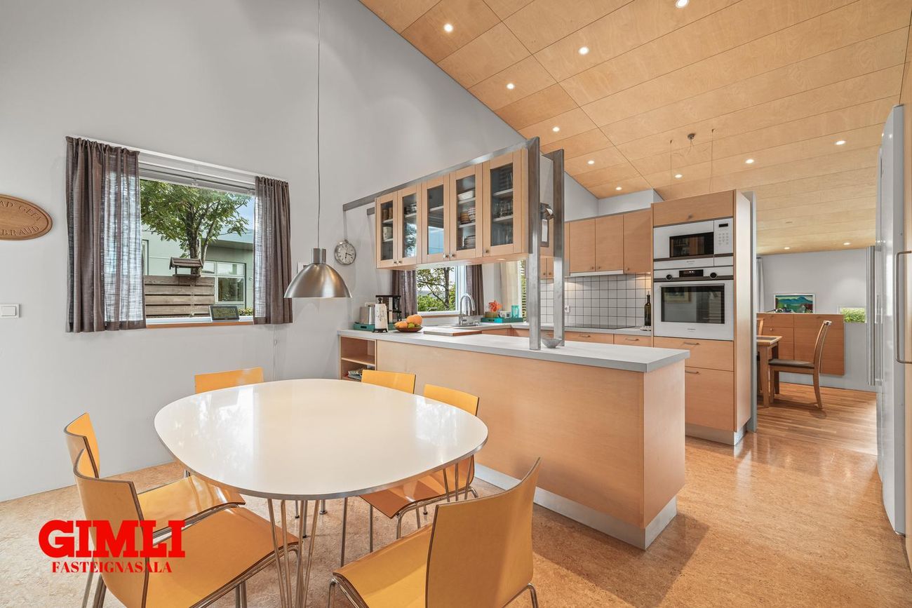 Eldhúsið með vandaðri innréttingu og tækjum, góður borðkrókur þar. Útgengi á verönd.
