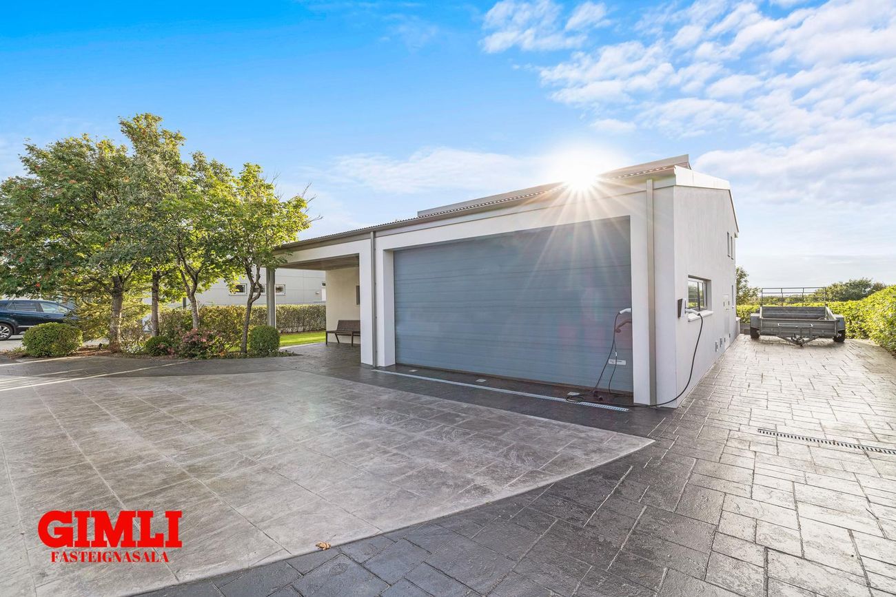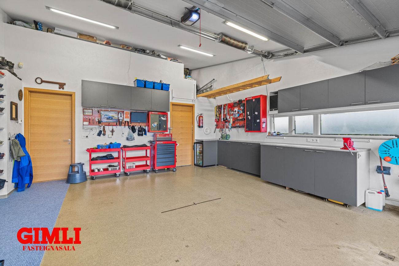 Innangegnt í vel innréttað þvottahús úr forstofu og þaðan inní rúmgóðan bílskúrinn sem er með epoxy á gólfi, innaf bílskúr er góð geymsla.