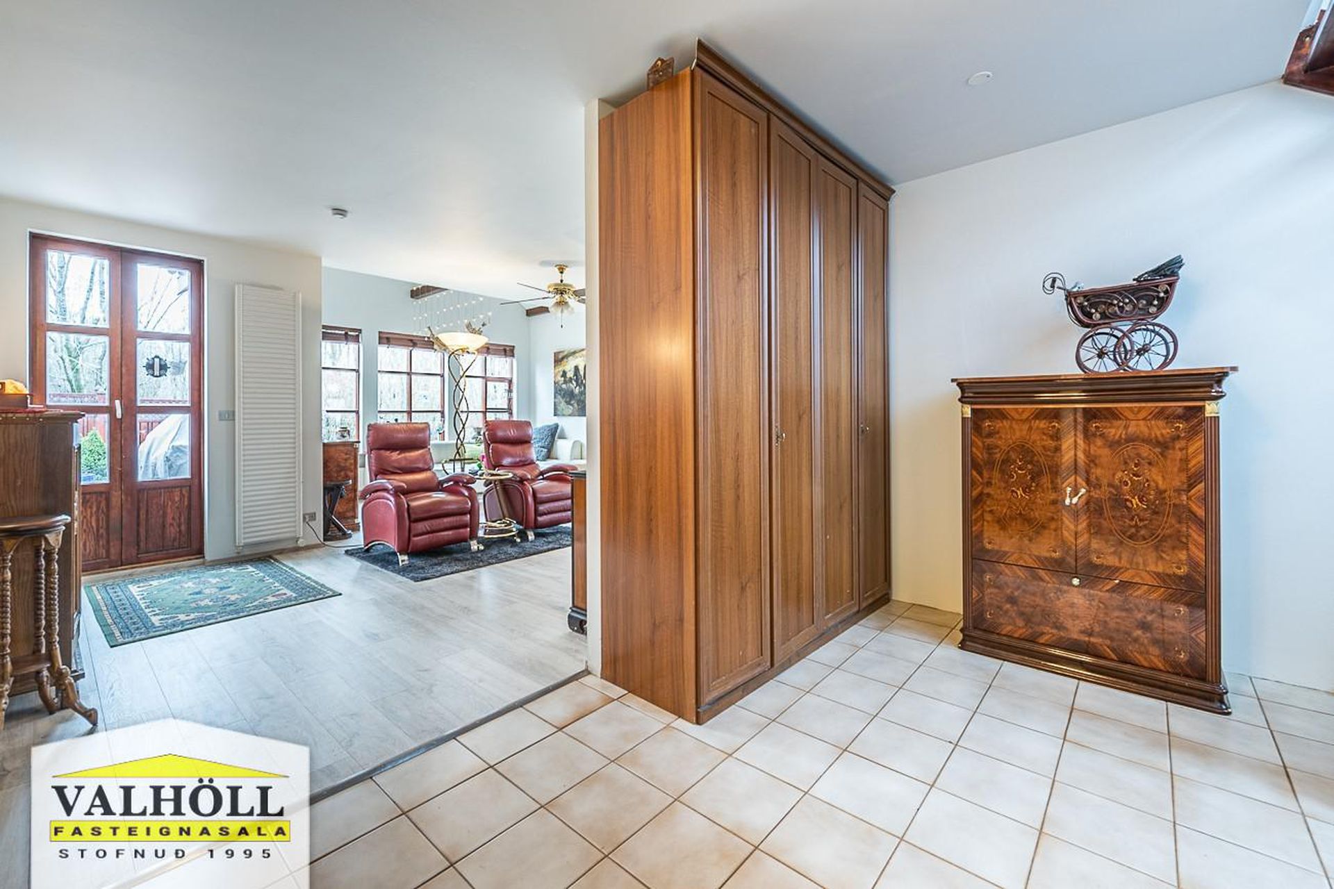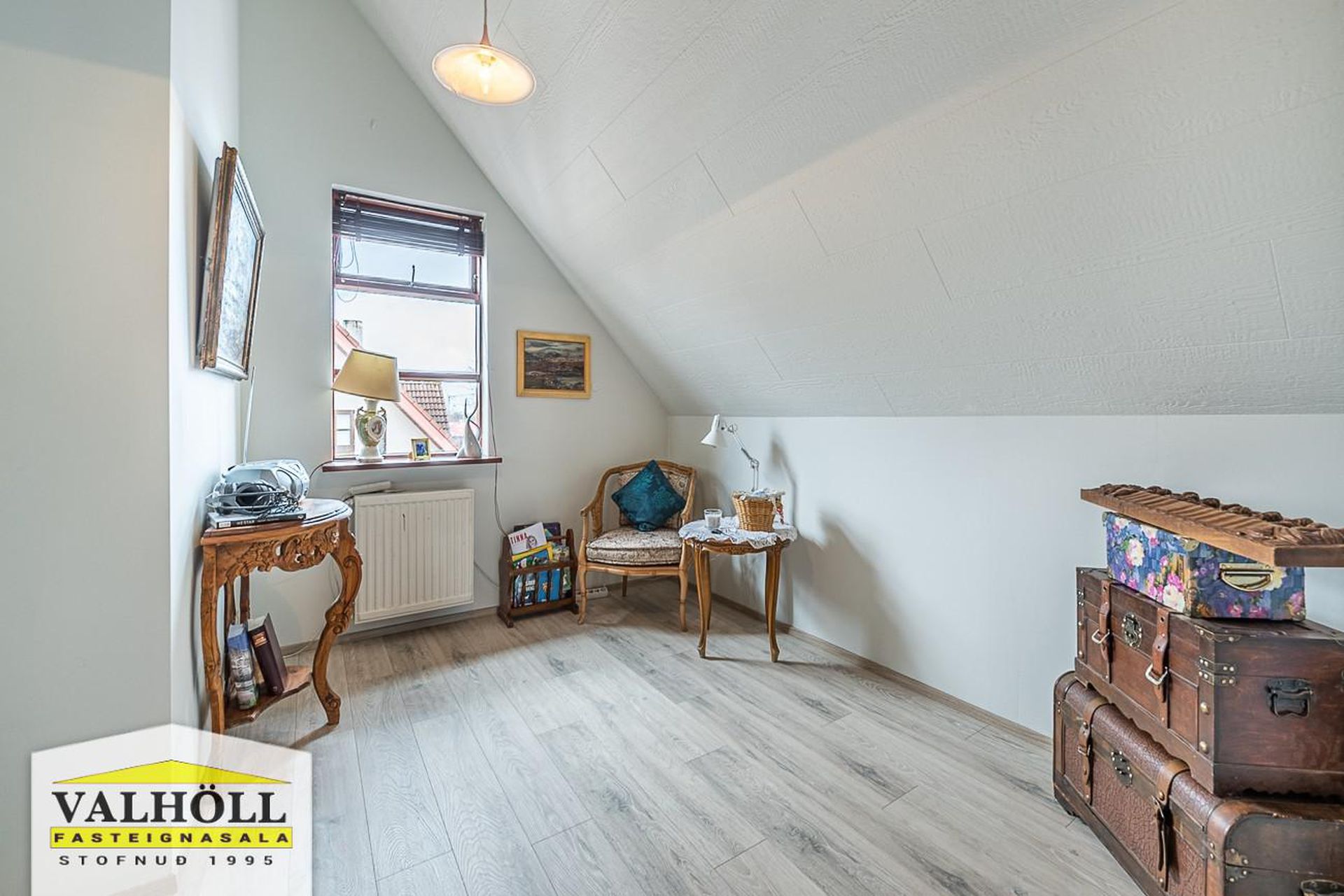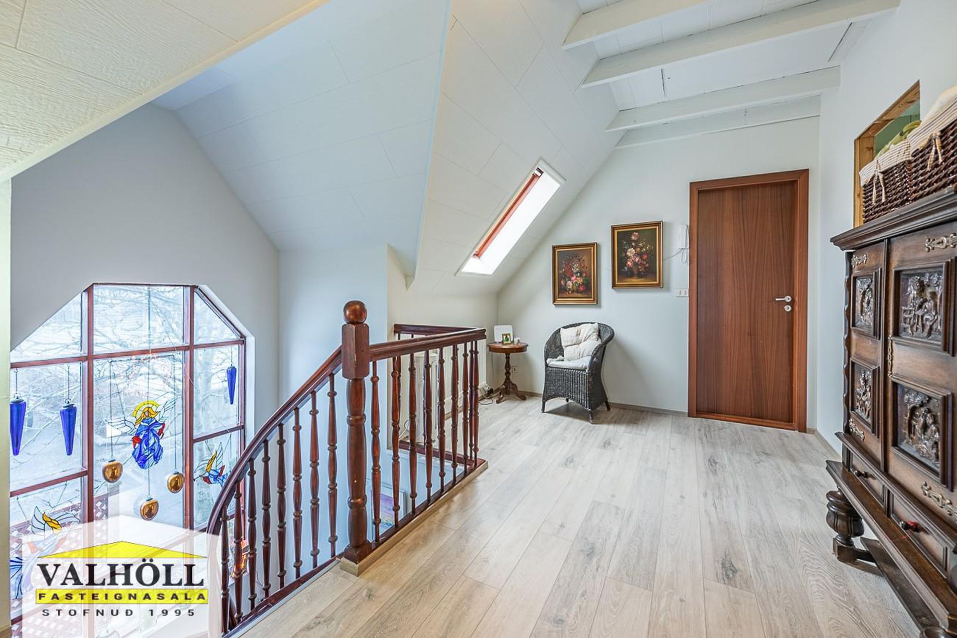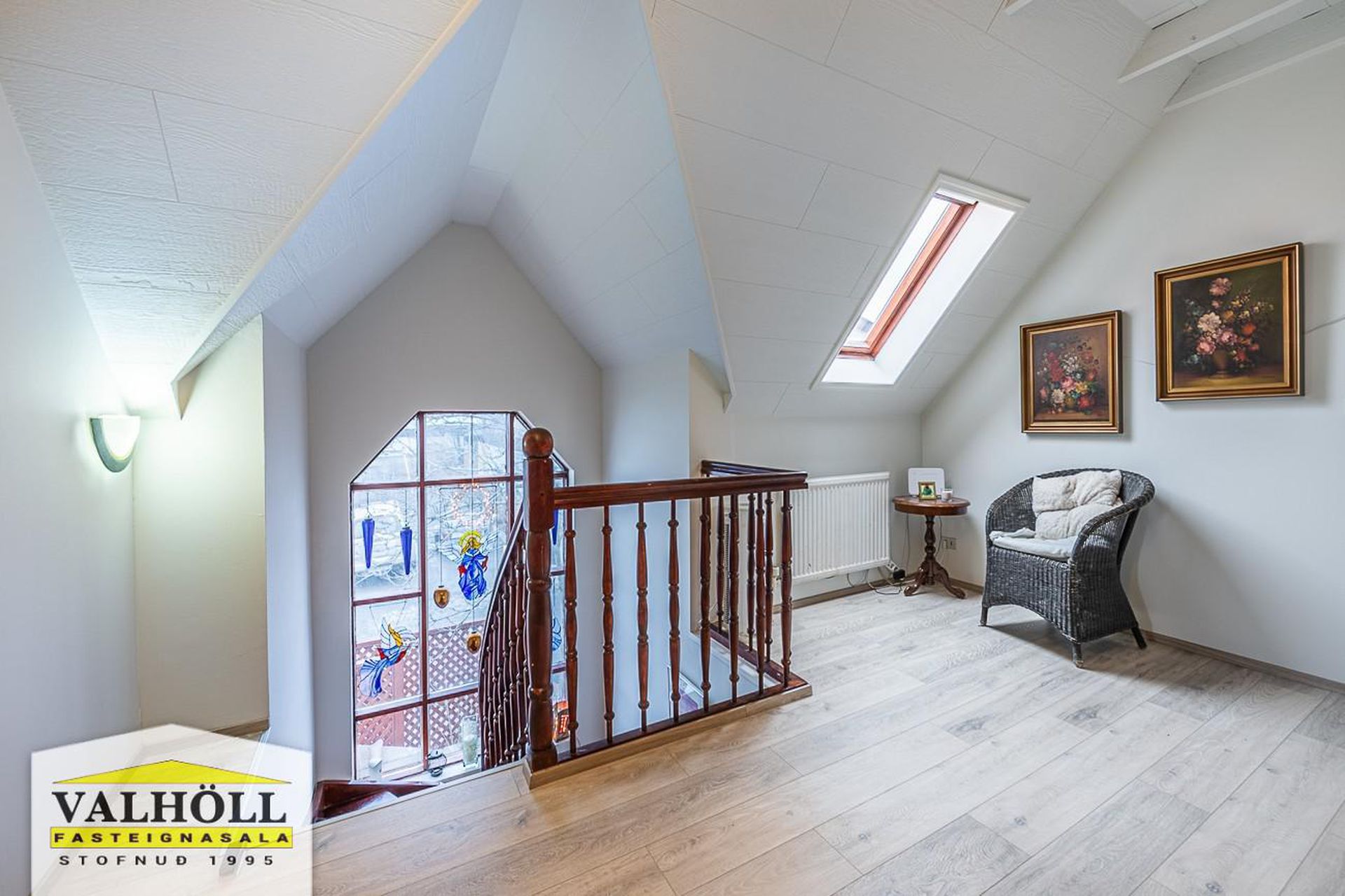 Gervihnattadiskur fastur við húsið fylgir með. Timburstigi í holi uppí rishæðina. Stigi úr holinu á I hæð niður í kjallara. Léttveggir í hjónaherbergi á II hæð sem hægt er að breyta. Hleðslustöð sett upp 2022.