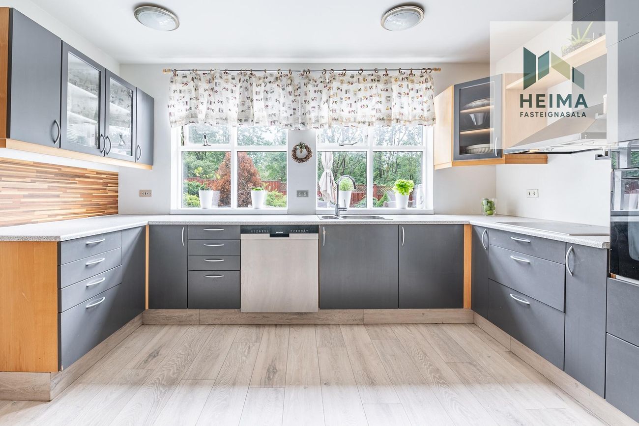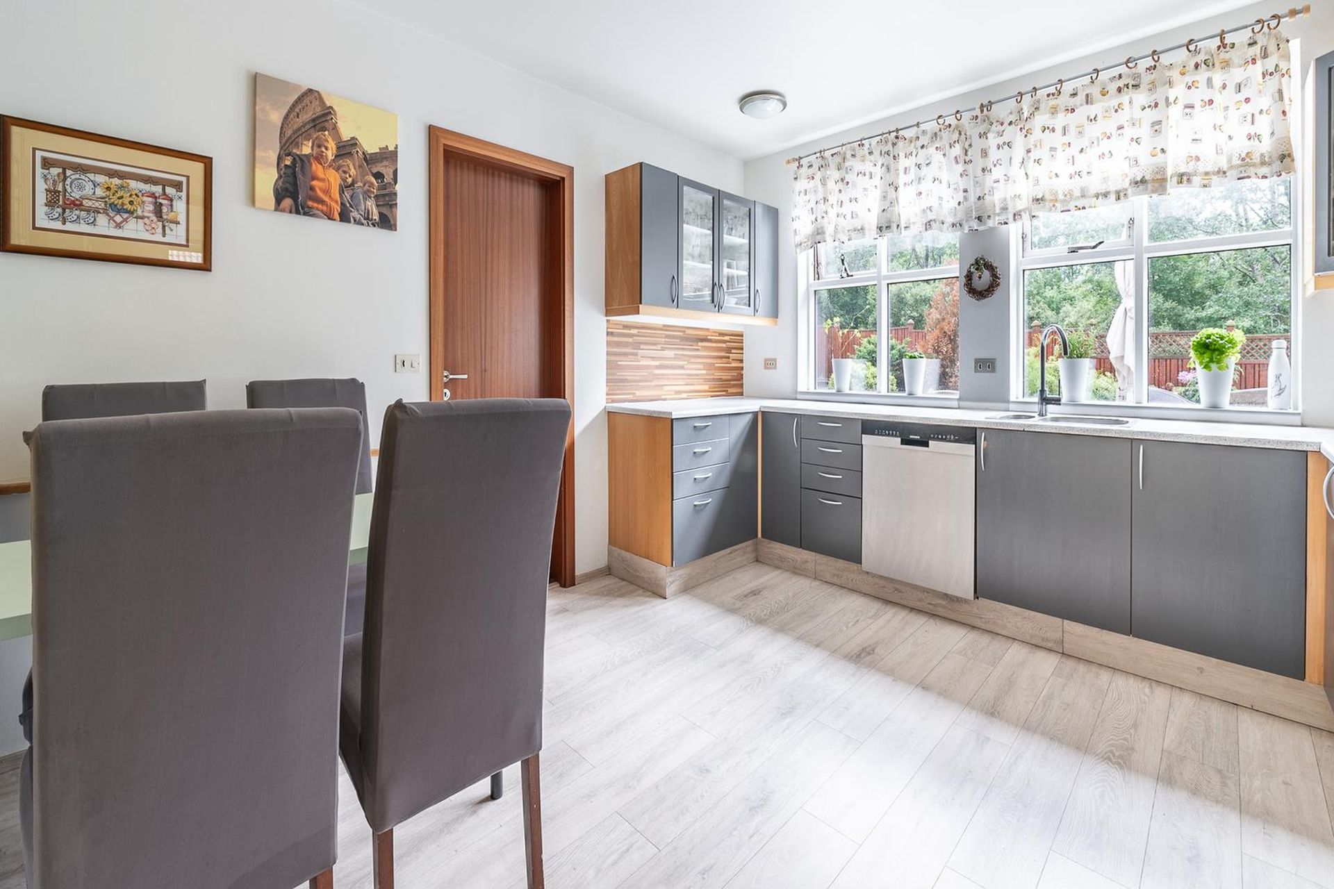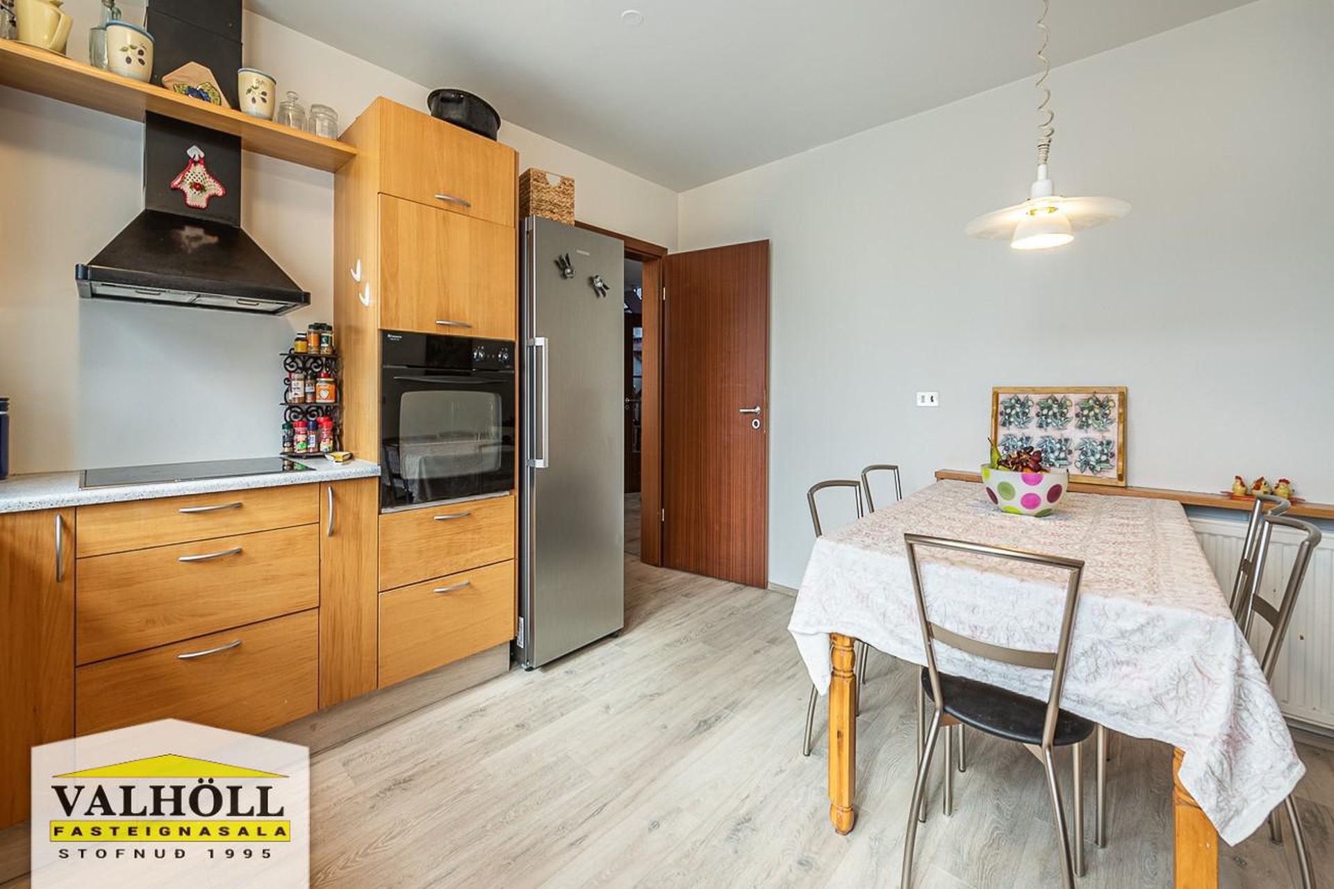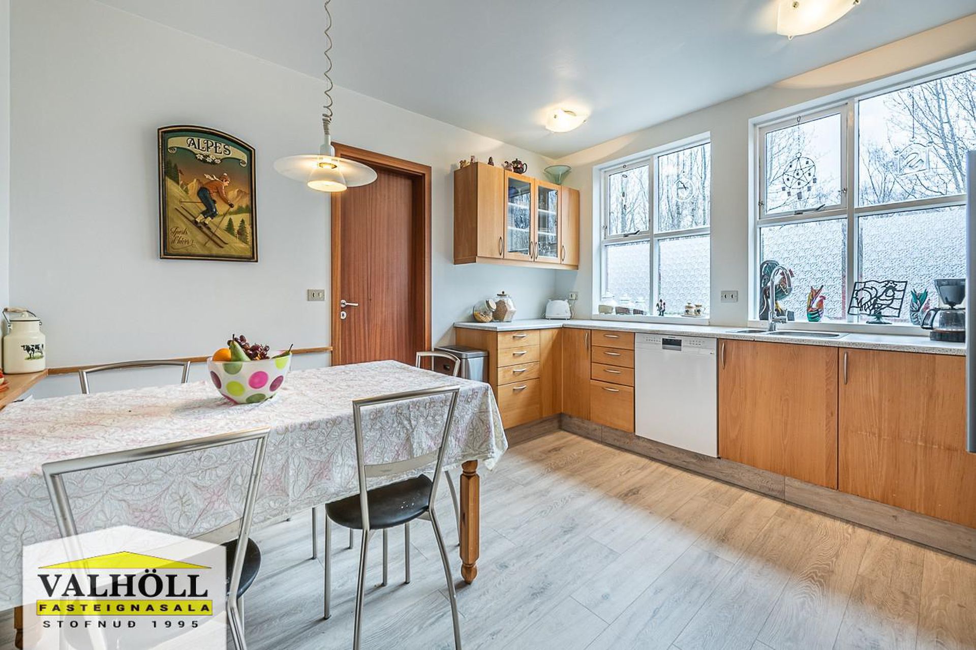 Rúmgott eldhús með borðkrók, ágætum beiki innréttingum. Gengið inn í þvottahús úr eldhúsinu.