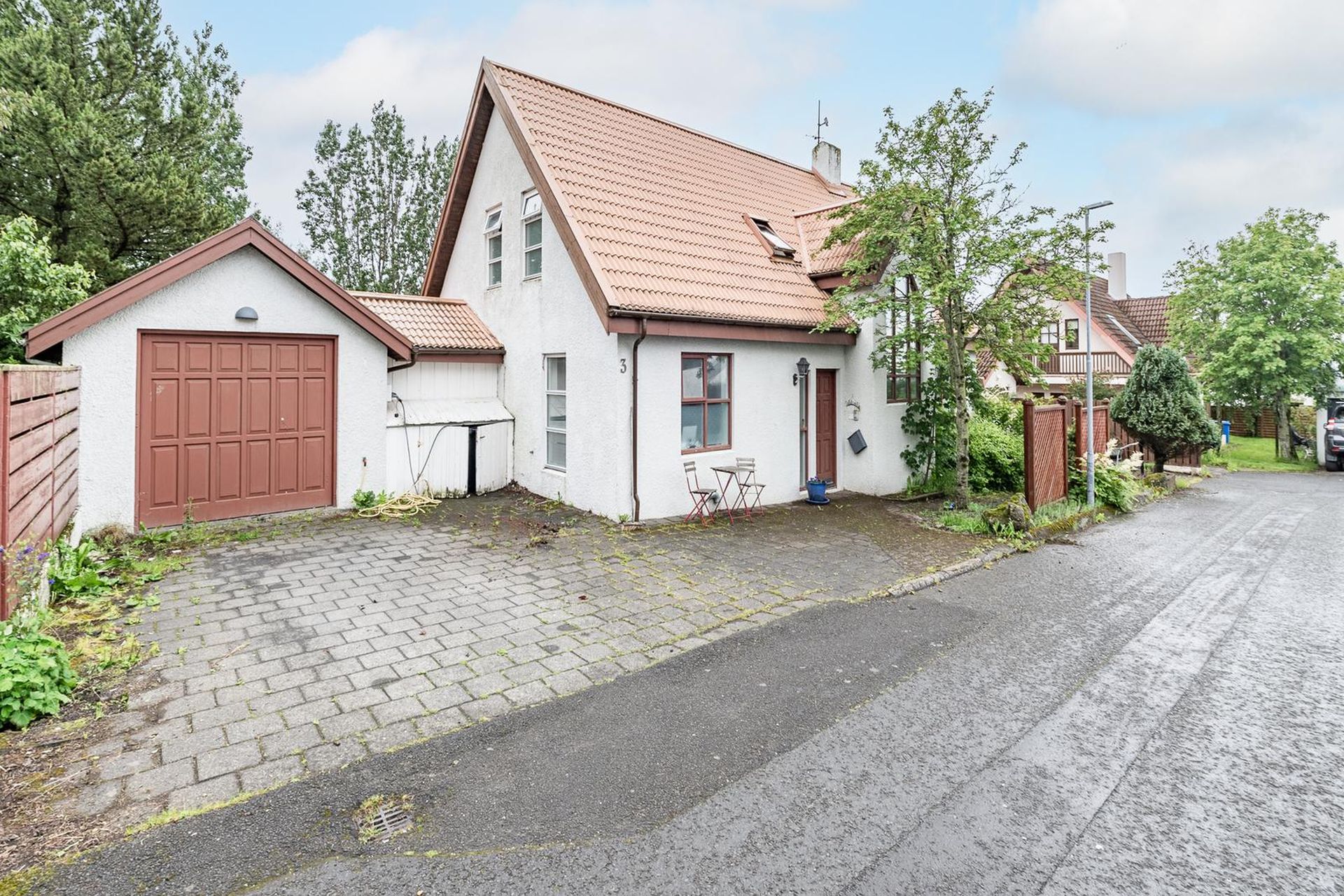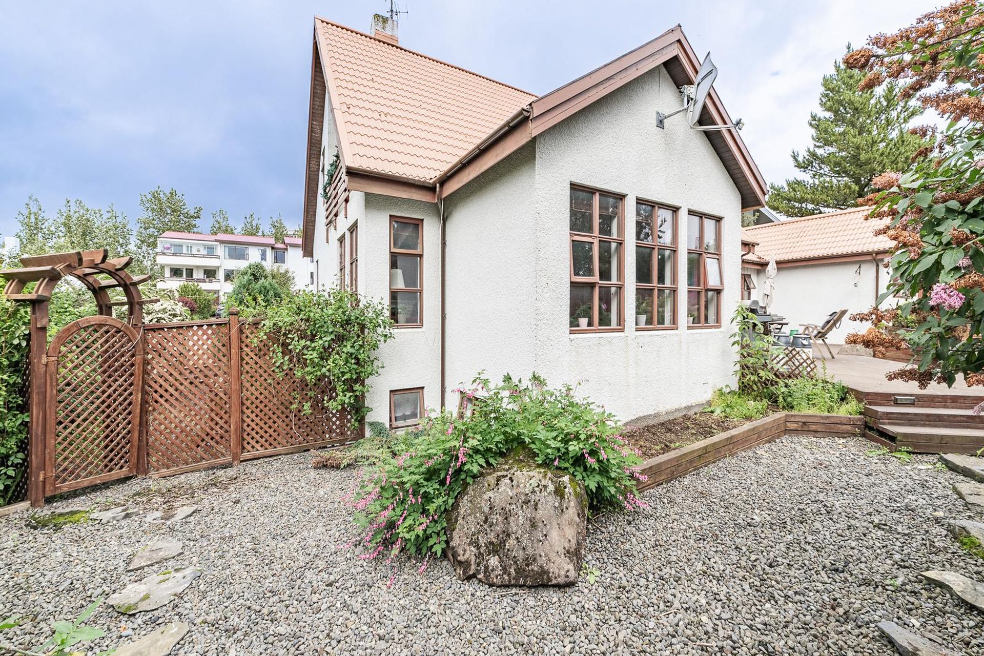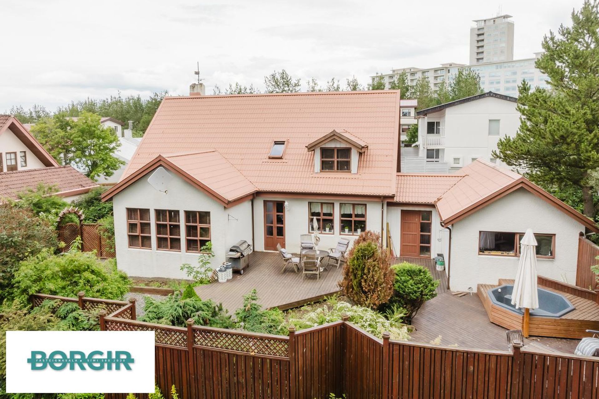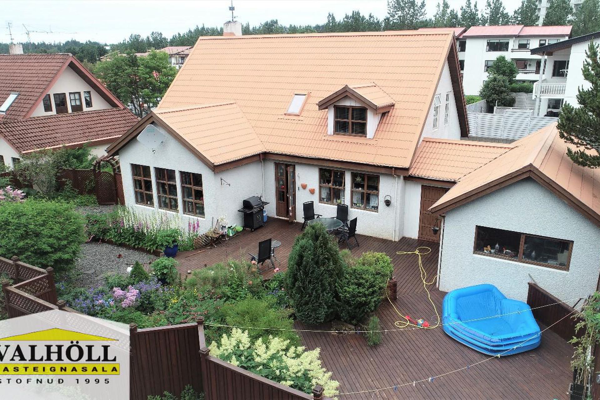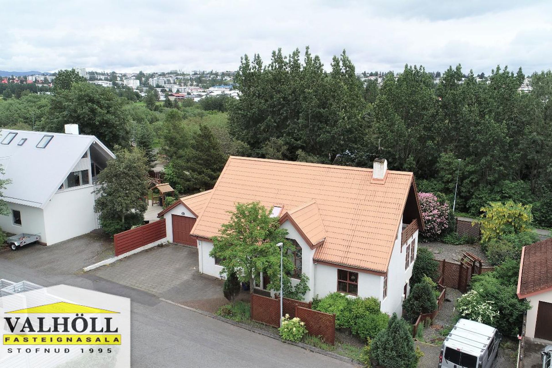 Einbýlishús, 359fm, í 108 Reykjavík. Verð: Ekki tilgreint. Með hæð, risi, kjallara/auka íbúð (ca. 115fm) og viðbyggðum bílskúr (32fm). 3 bílastæði og 1 í sameign í götunni. Staðsett við göngu- og hjólastíg að Nauthólsvík, Fossvogi og Elliðárdalnum. Stutt í verslun, þjónustu og skóla. Byggt 1982.