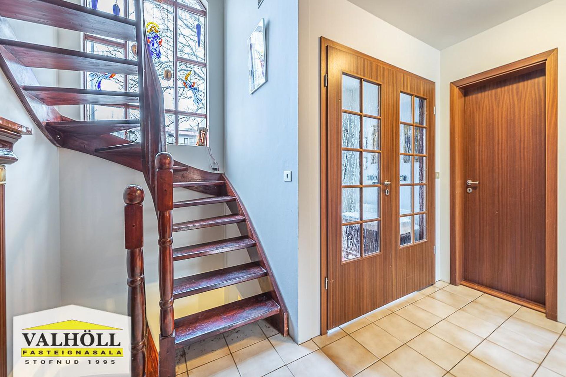 Forstofa á I hæð og í kjallara/aukaíbúð. Gangur/Hol á I hæð. Rúmgott hol á II hæð með parketi. Háaloft (geymsluloft) yfir rishæðinni. Bókahilla í kjallara. Herbergi á I hæð notuð sem ræktarherbergi og skrifstofa. Herbergi á II hæð notuð sem sjónvarpsherbergi og barnaskrifstofa.
