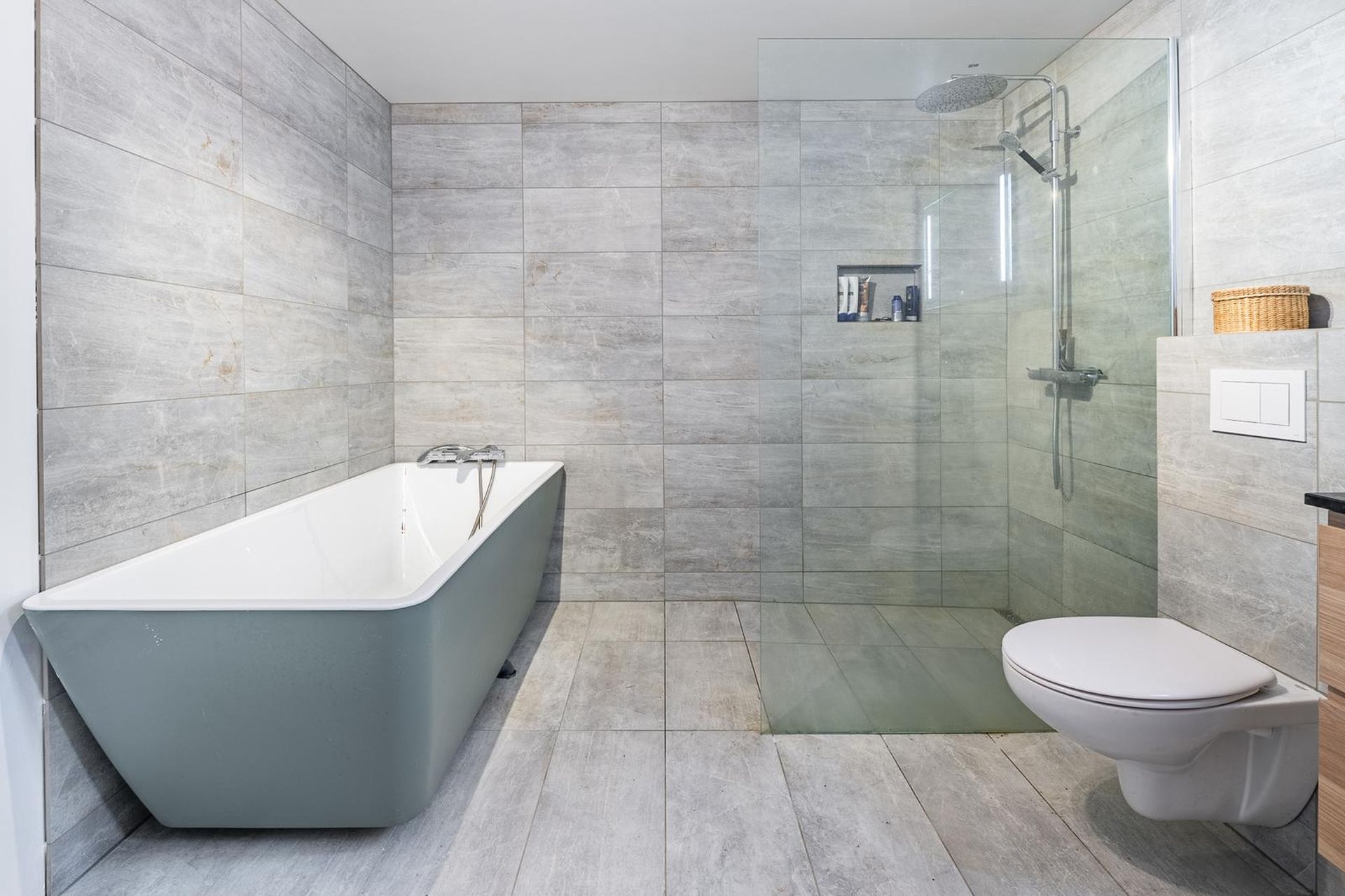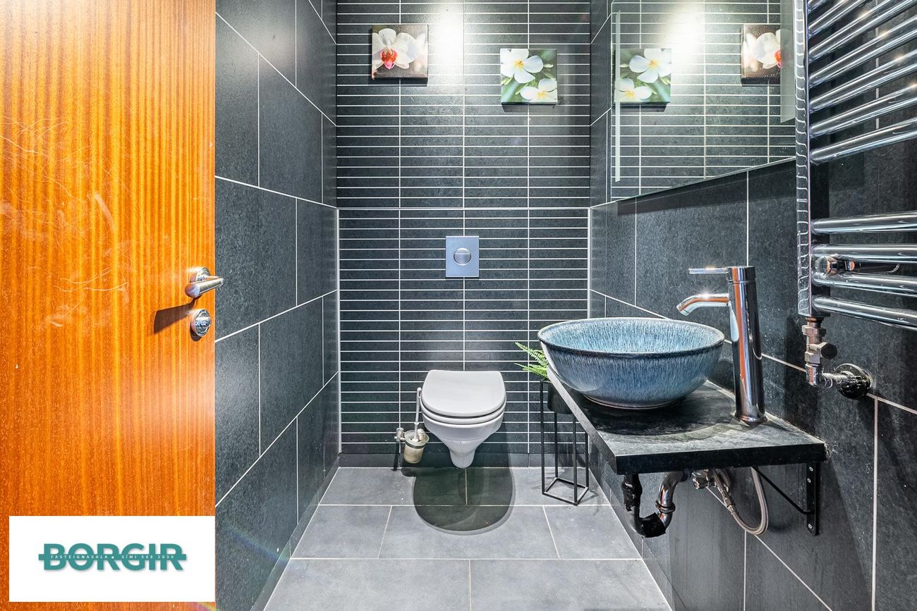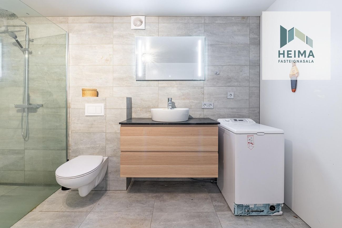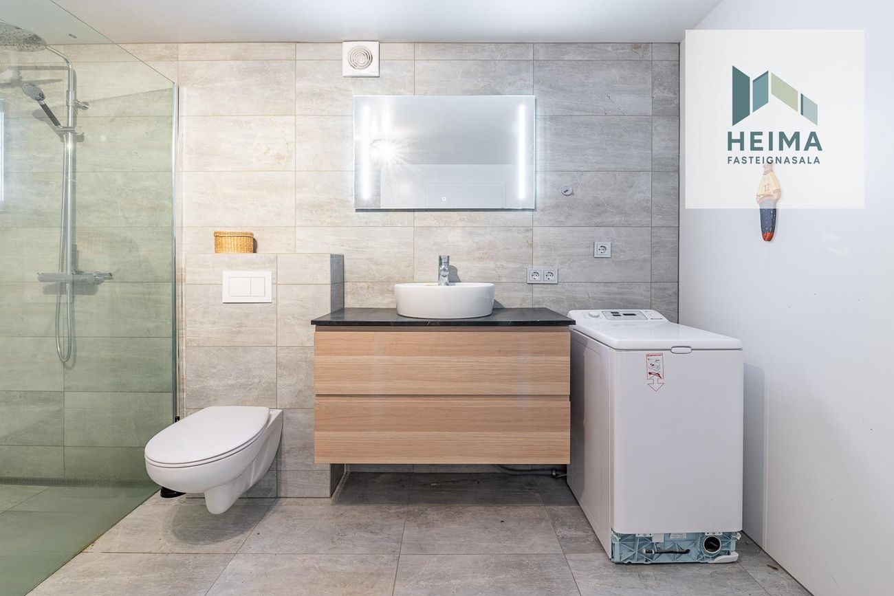 I hæð: Baðherbergi flísalagt með vegghengdu salerni og handklæðaofni. II hæð: Rúmgott baðherbergi í endurnýjun (selt í núverandi ástandi), ný loftklæðning og klósettkassi í vegg. Kjallari/aukaíbúð: Nýuppgert baðherbergi með flísum á veggjum og gólfi, walk-in sturtu með gleri, Mora blöndunartæki, IKEA innréttingum, sérlögn í þvottavél og geymslu.