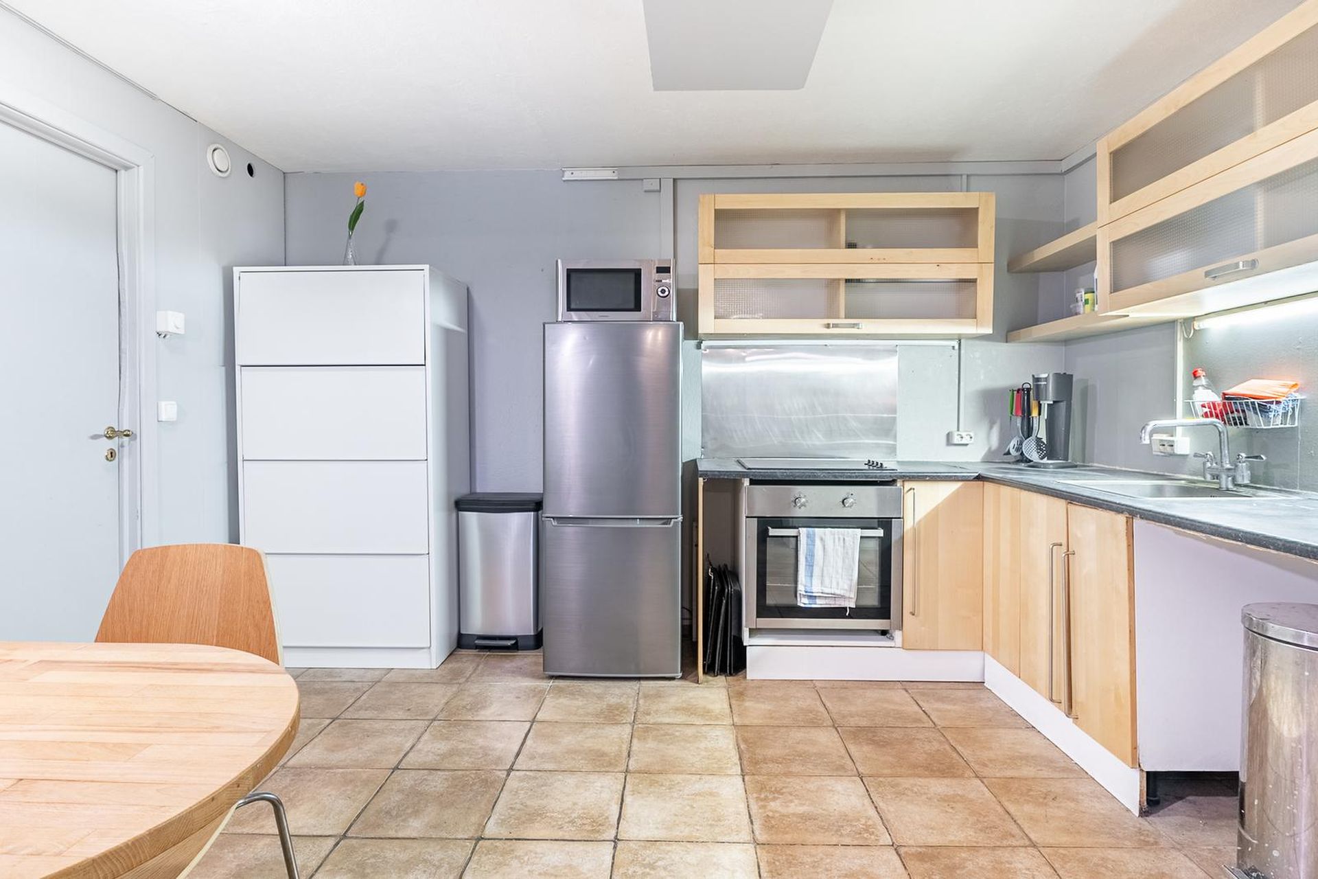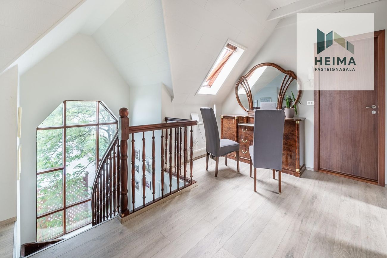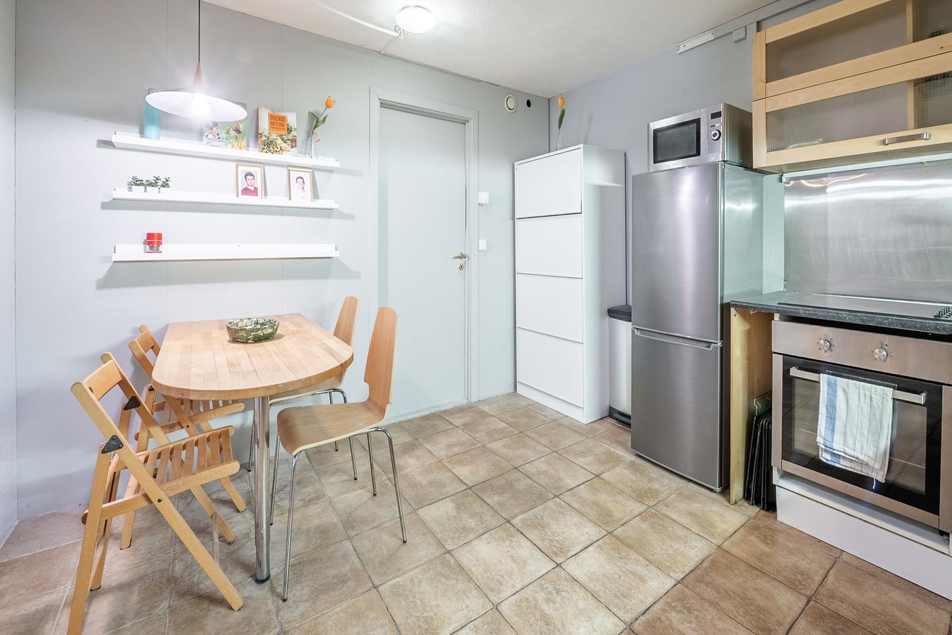 Mikið geymslupláss. Gangur/Hol á I hæð með miklum skápum. Háaloft yfir rishæðinni (geymsluloft) með niðurdraganlegum stiga og mikið geymslupláss. Stór bókahilla og geymslupláss í kjallara. Rúmgóð geymsla innaf eldhúsi í kjallara/aukaíbúð með góðu hilluplássi. Fatahengi í forstofu.