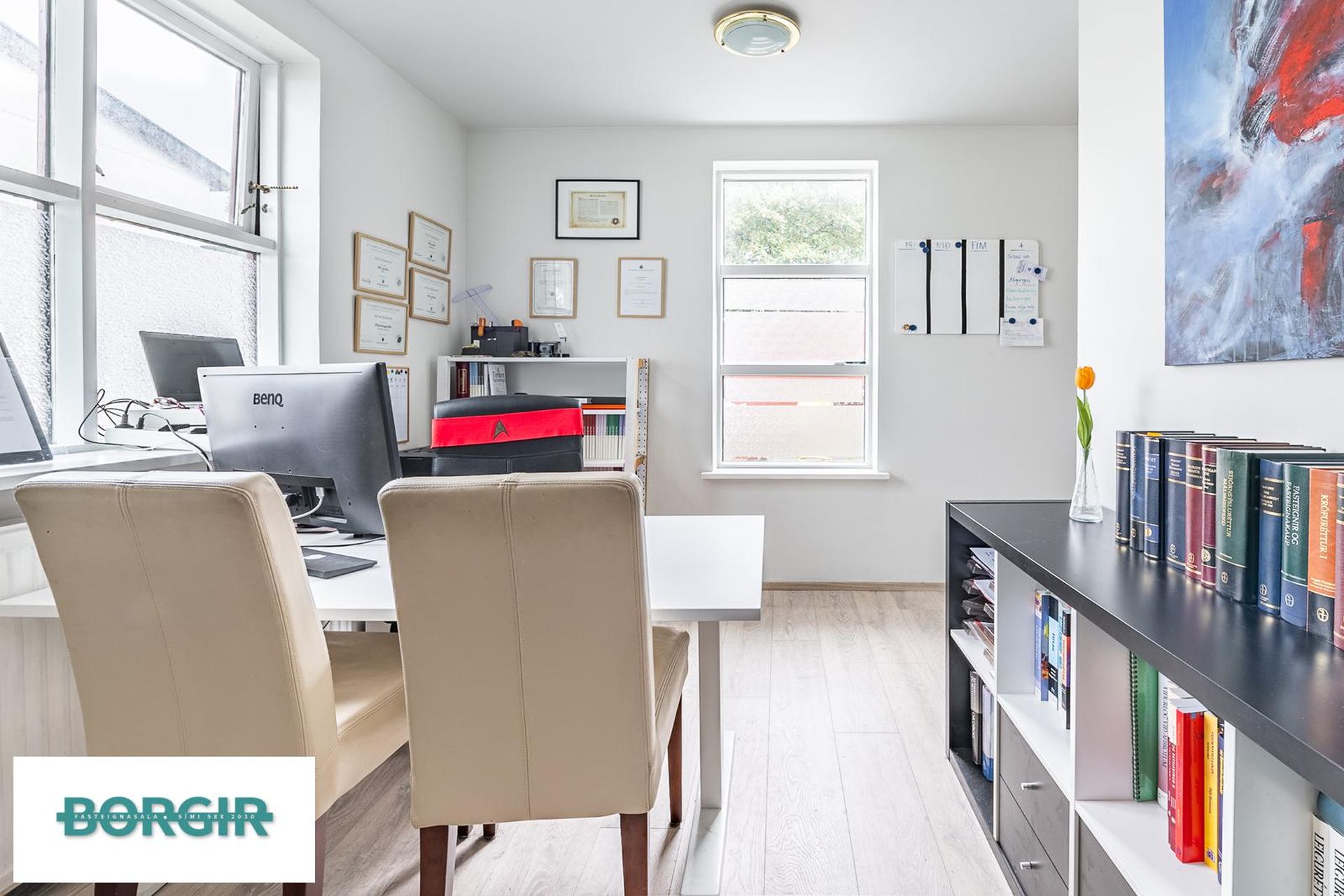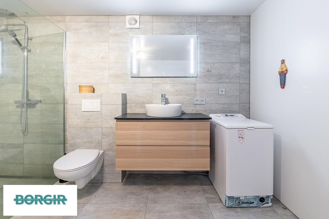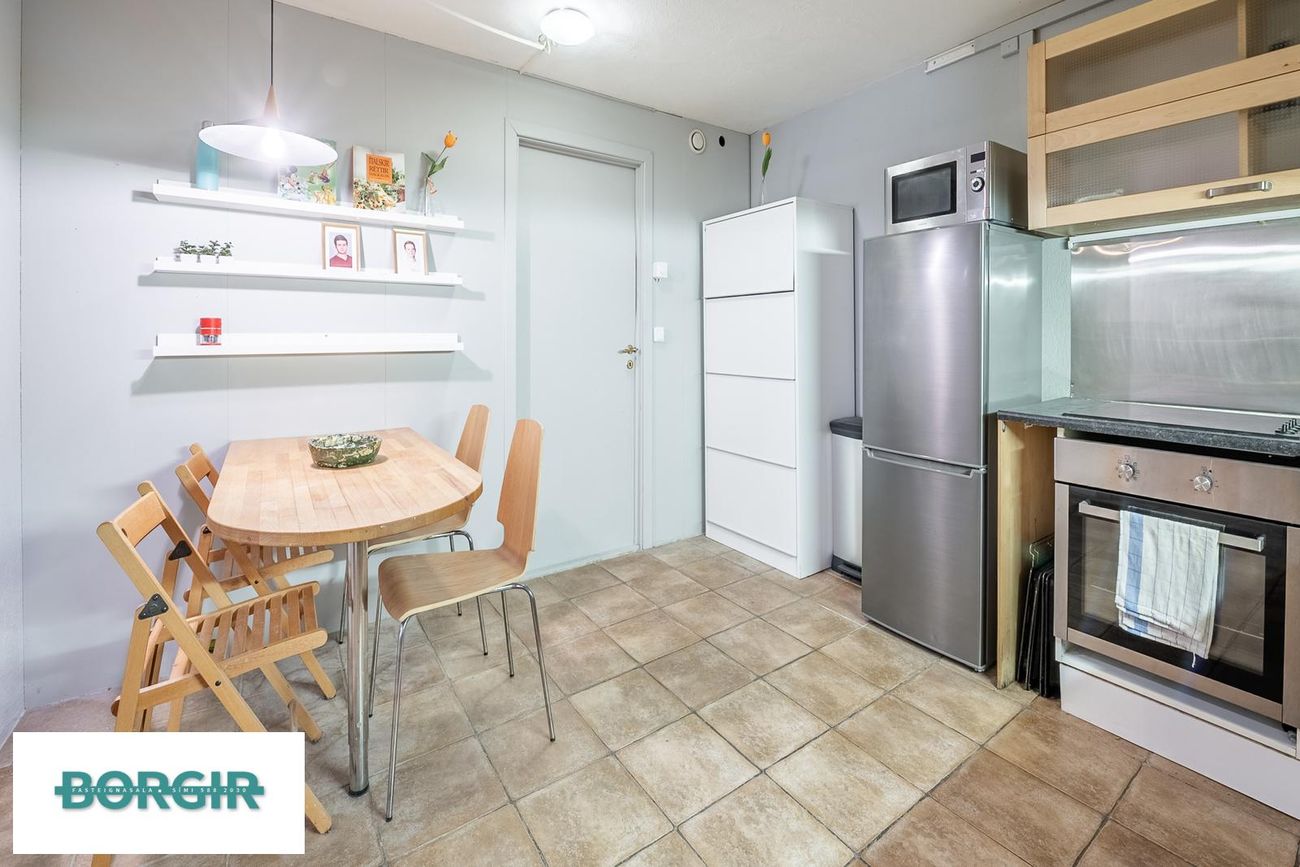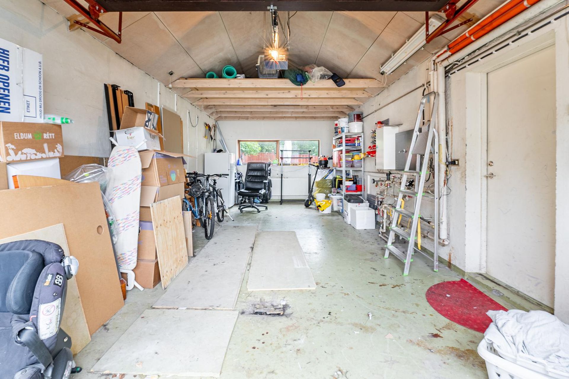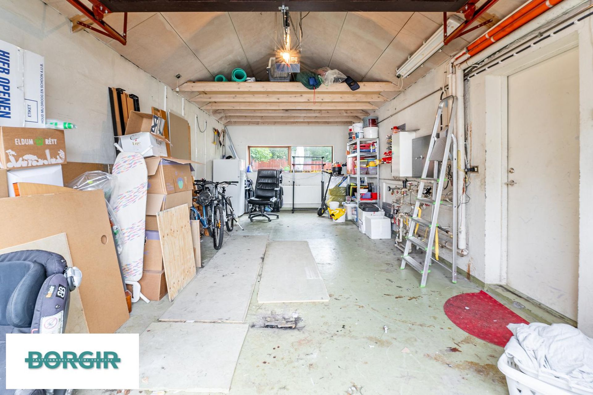 Viðbyggður bílskúr (32fm) með millilofti að hluta, sjálfvirkum opnara og 3ja fasa rafmagni. Gengið úr þvottaherbergi inn í bílskúrinn. 3 bílastæði og 1 í sameign í götunni. Sérbílastæði við sérinngang að aukaíbúð.