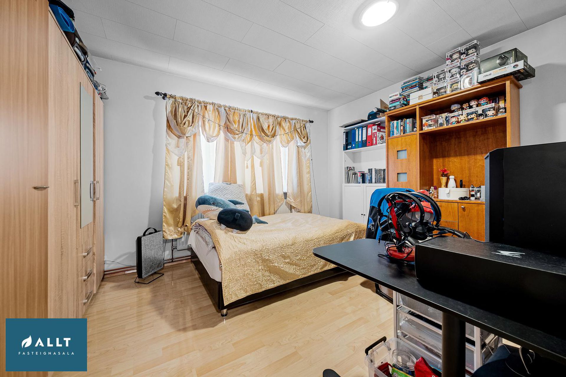 Fjögur svefnherbergi með nýjum fataskápum frá Ikea.