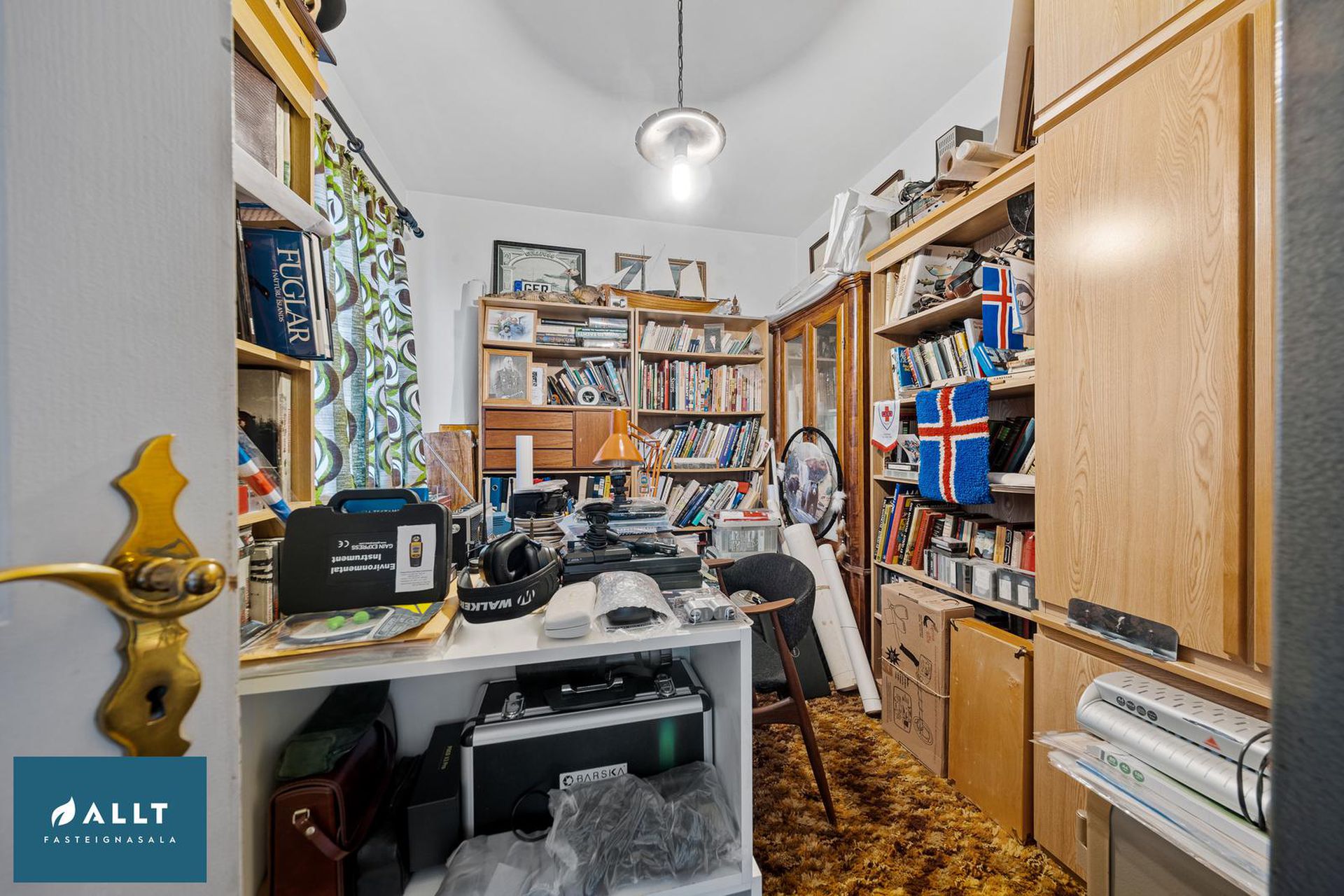 Geymsluloft yfir hæðinni með aðgengi um fellistiga.