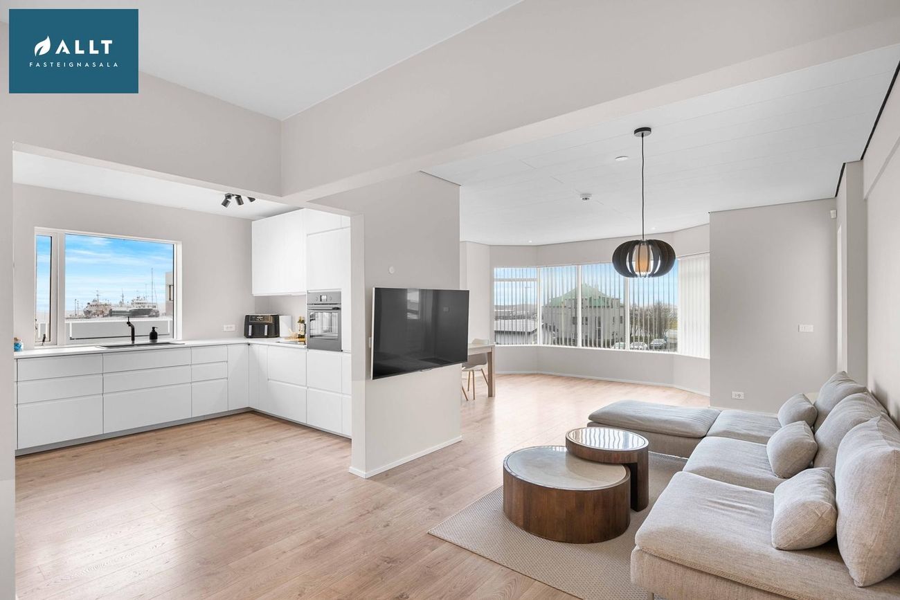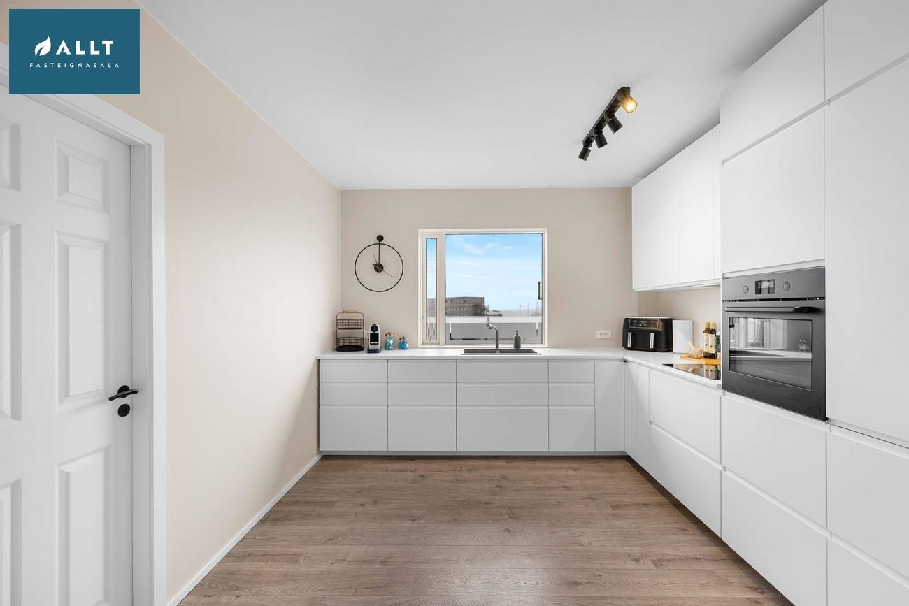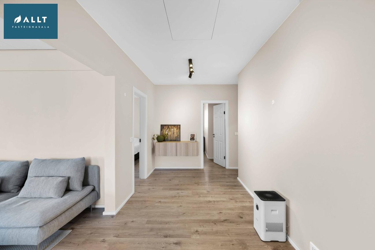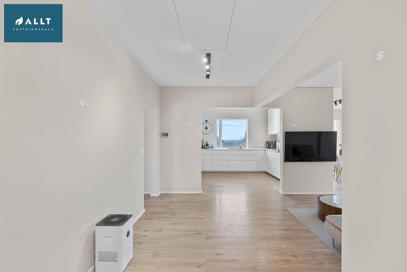 144,5 m² íbúð á eignarlóð með 4 svefnherbergjum, rúmgóðri stofu og borðstofu, eldhúsi, þvottahúsi, baðherbergi og forstofu. Nýlega endurnýjað með gólfhita, parketgólfum og nútímalegum innréttingum.