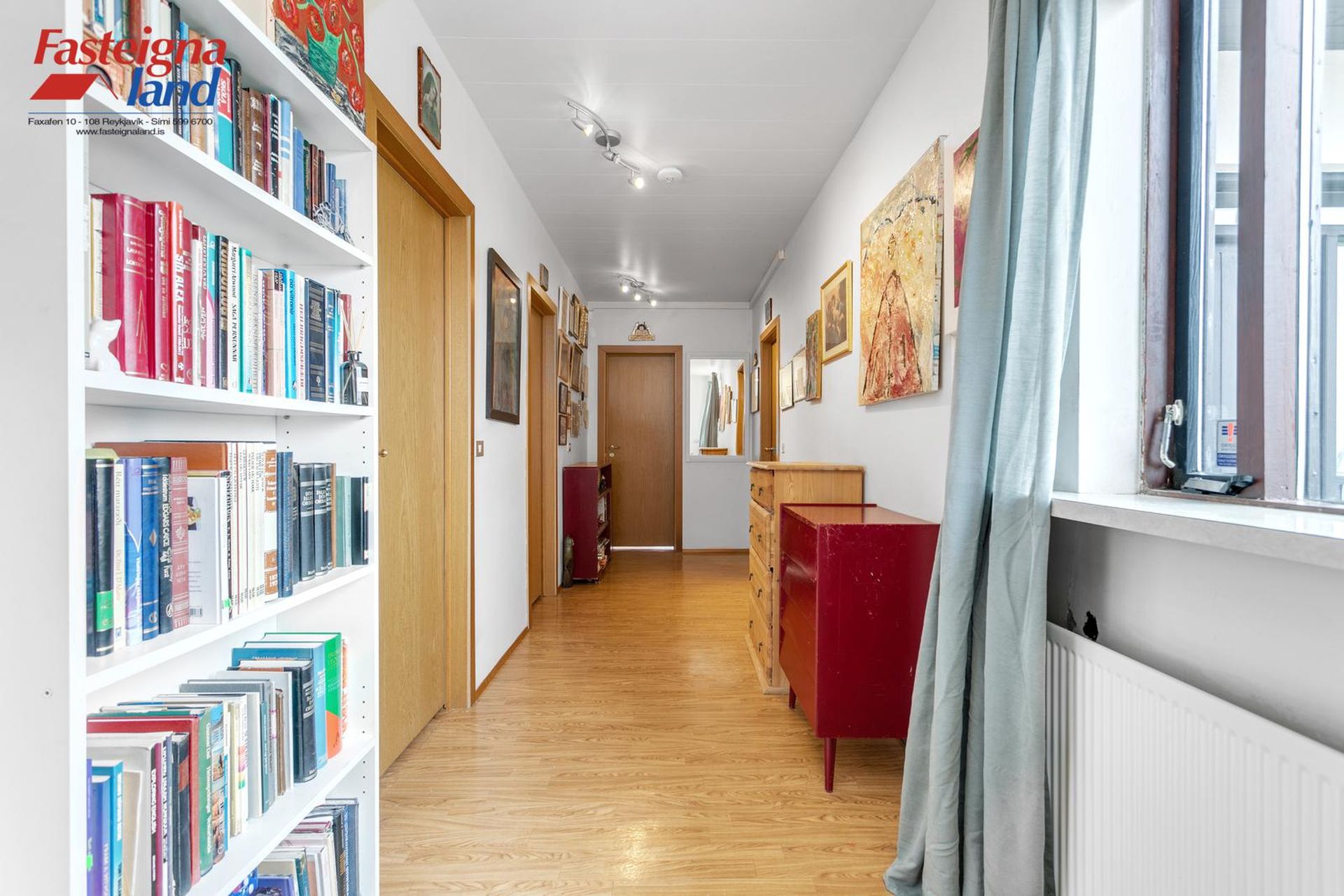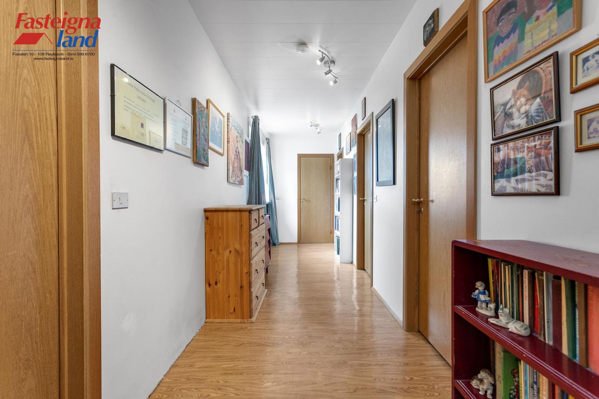 Fjögur svefnherbergi á herbergjagangi, tvö sameinanleg. Nýlegt harðparket á öllum rýmum.